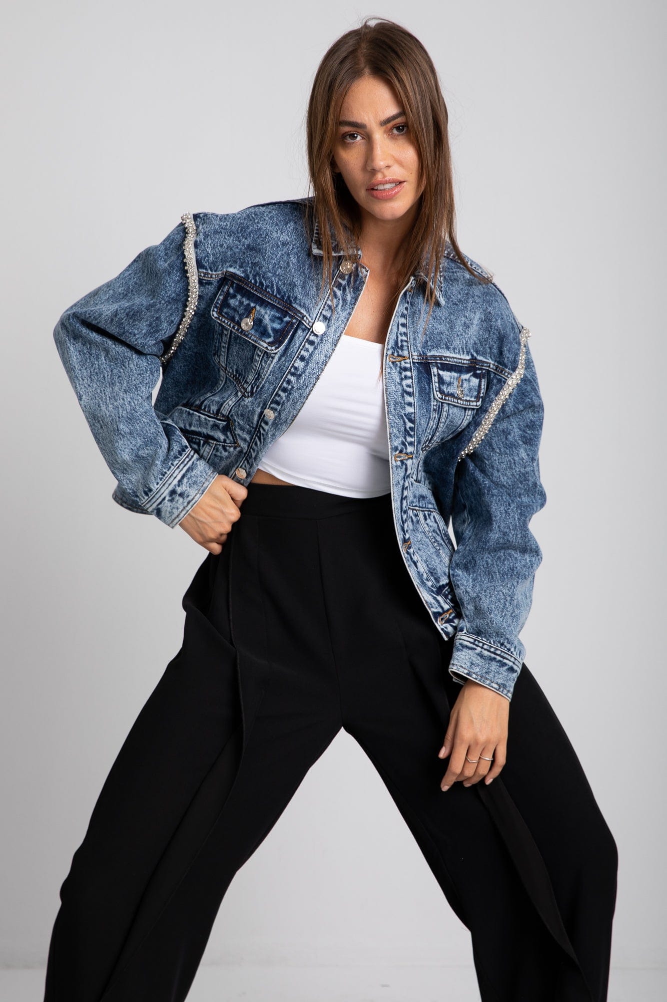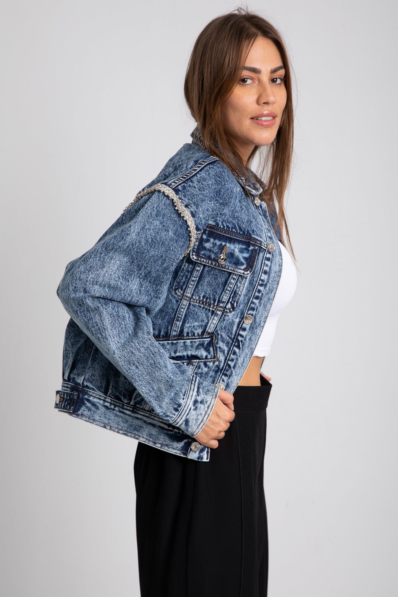 The perfect blend of comfort and style awaits you with the DalyDress Women's Oversized Short Denim Jacket. This chic jacket features a relaxed fit that effortlessly layers over any outfit, making it a versatile staple for your wardrobe. Crafted from premium denim, its soft texture and classic design provide a timeless look that never goes out of fashion. With its roomy cut and trendy short length, you'll enjoy both freedom of movement and a stylish silhouette. Don't miss out on this essential piece; order yours today through Fashion Saudi and redefine your casual style! Product Number: 26025091027