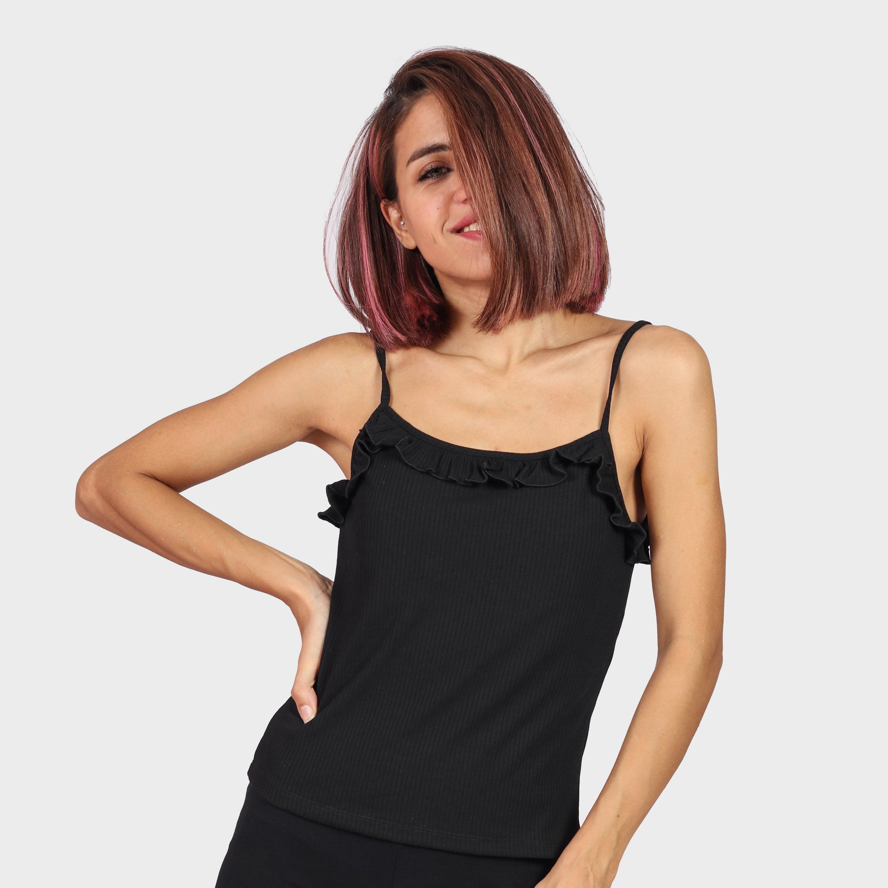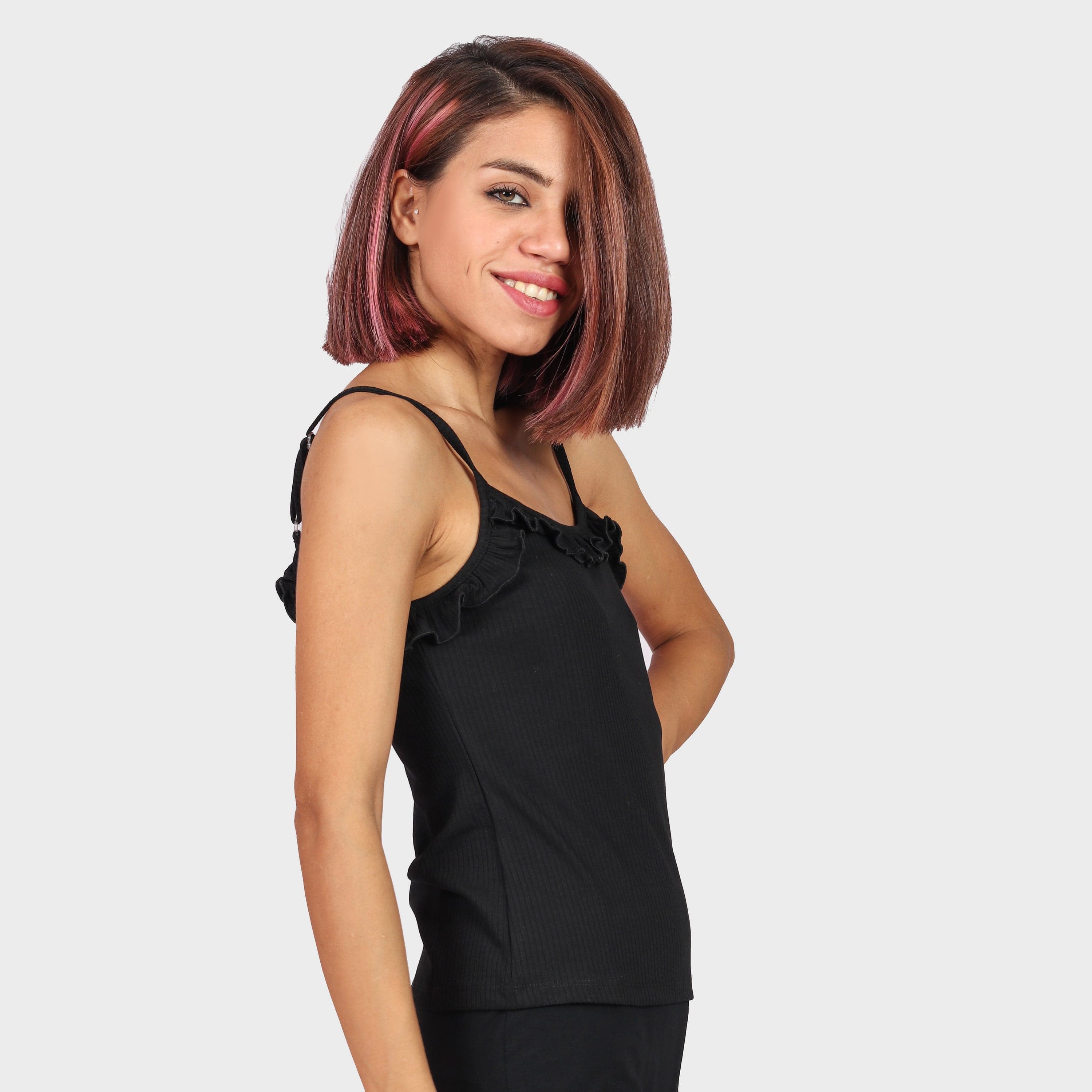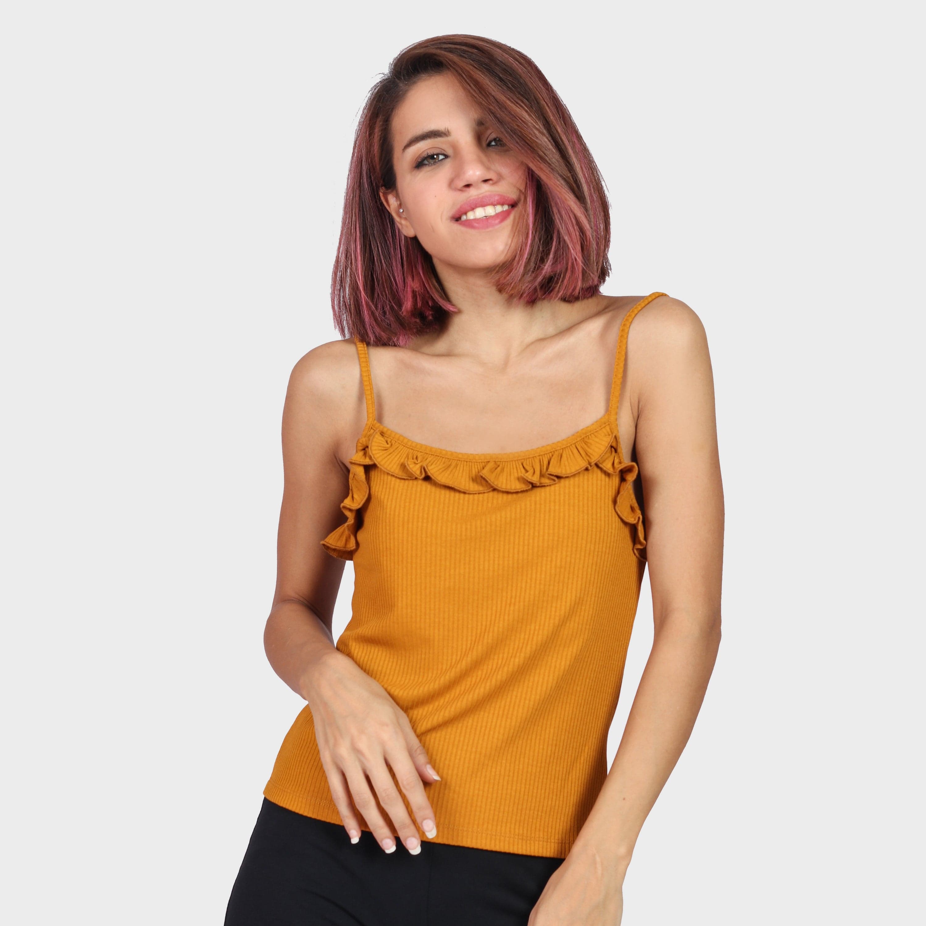 Get ready to shine with a thin strap blouse with ruffles on the chest from Kitschen. This blouse is available in four beautiful colors: black, light pink, mustard yellow and white. This blouse is designed with great elegance and its meticulous details make it perfect for feminine looks. They feature slim straps and ruffles on the bust to add a feminine touch to your look. Wear it with jeans or a skirt for a chic look. Get now a blouse with thin straps with ruffles on the chest from Kitschen Get ready for an eye-catching look. Order it now at Fashion KSA and enjoy modern style. Product Number: 03-0350