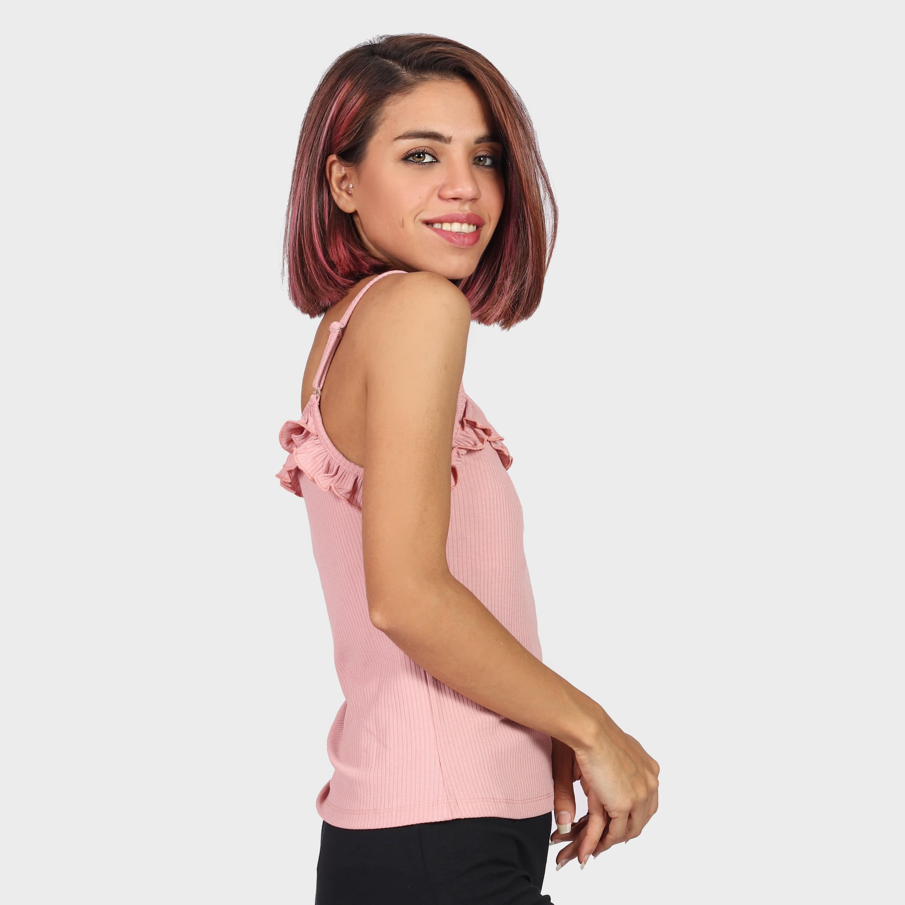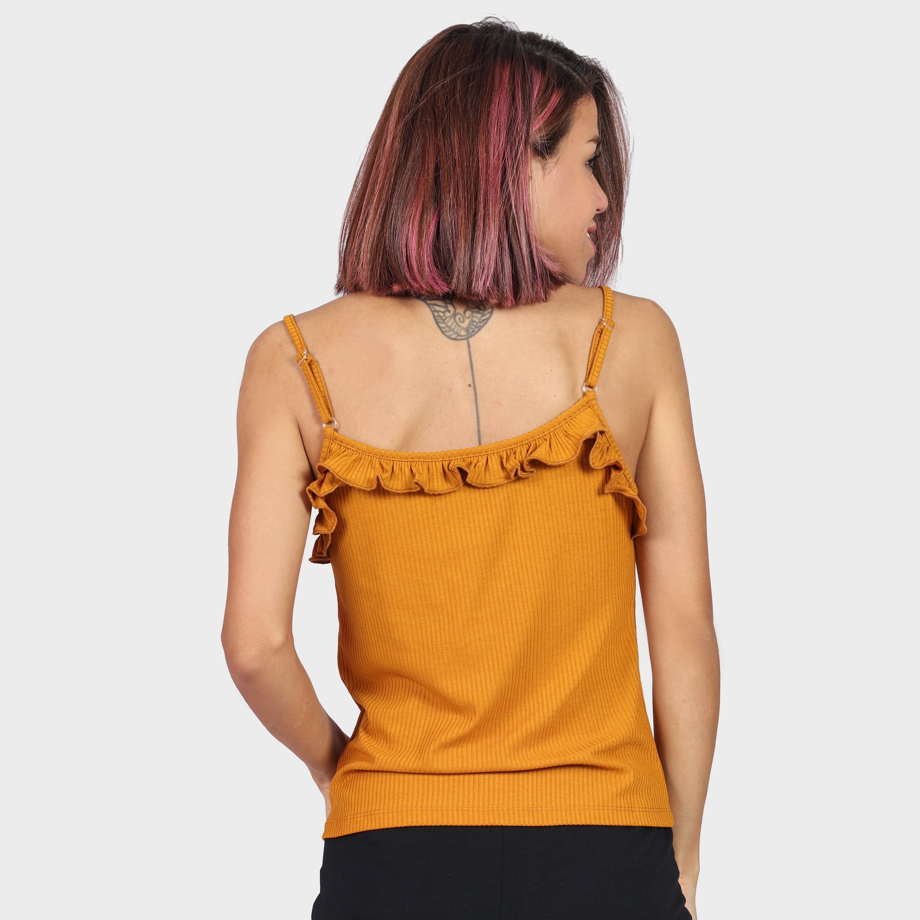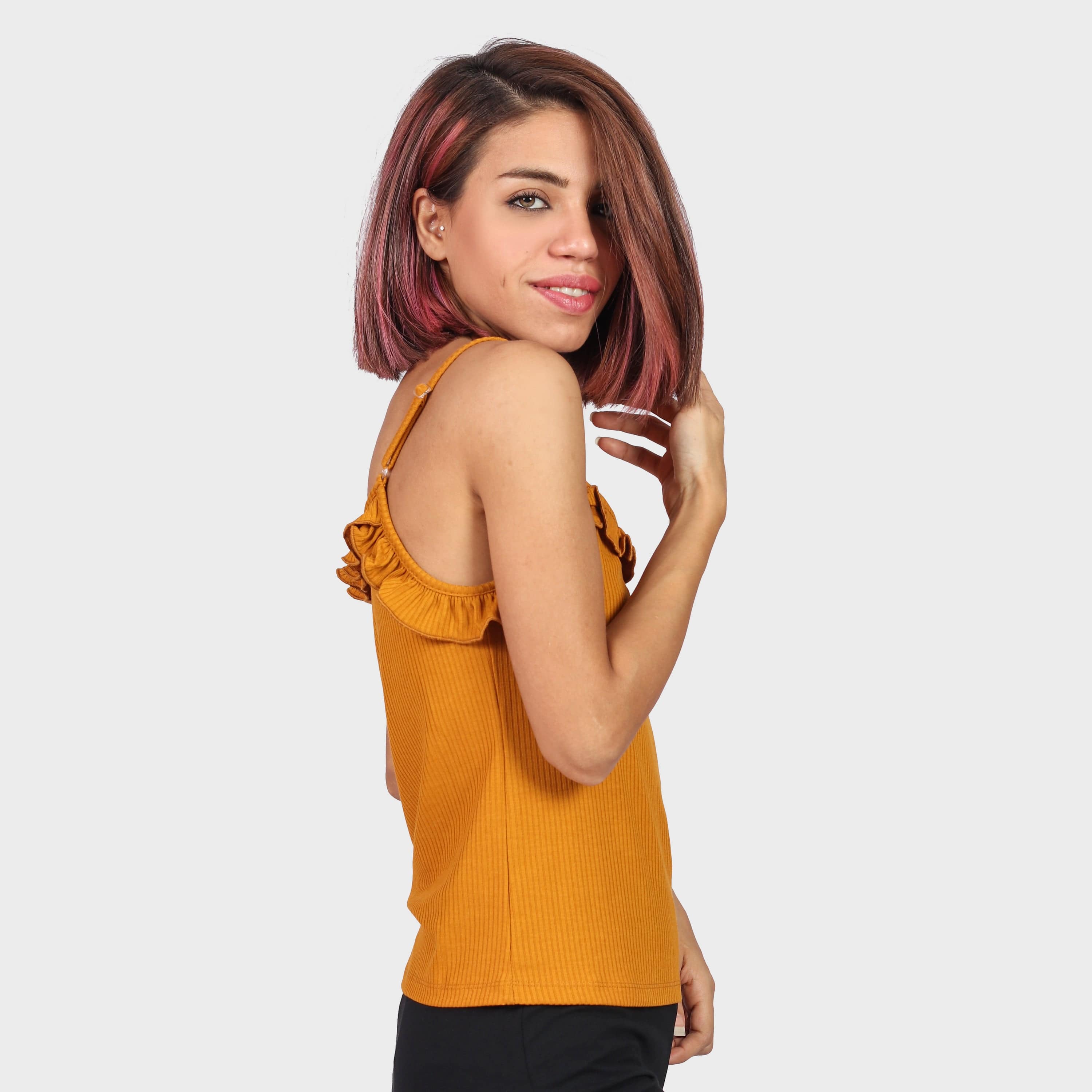 Get ready to shine with a thin strap blouse with ruffles on the chest from Kitschen. This blouse is available in four beautiful colors: black, light pink, mustard yellow and white. This blouse is designed with great elegance and its meticulous details make it perfect for feminine looks. They feature slim straps and ruffles on the bust to add a feminine touch to your look. Wear it with jeans or a skirt for a chic look. Get now a blouse with thin straps with ruffles on the chest from Kitschen Get ready for an eye-catching look. Order it now at Fashion KSA and enjoy modern style. Product Number: 03-0350