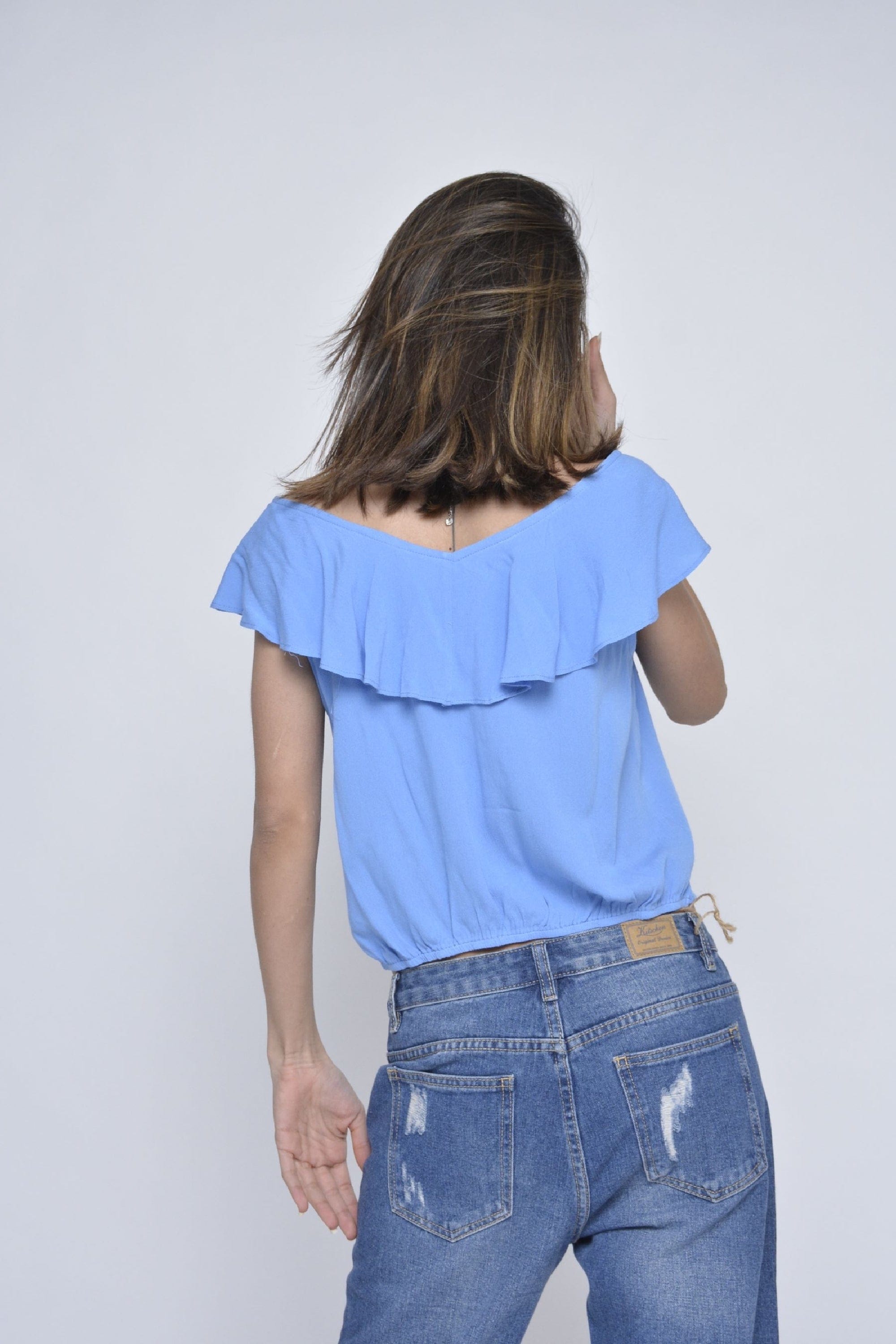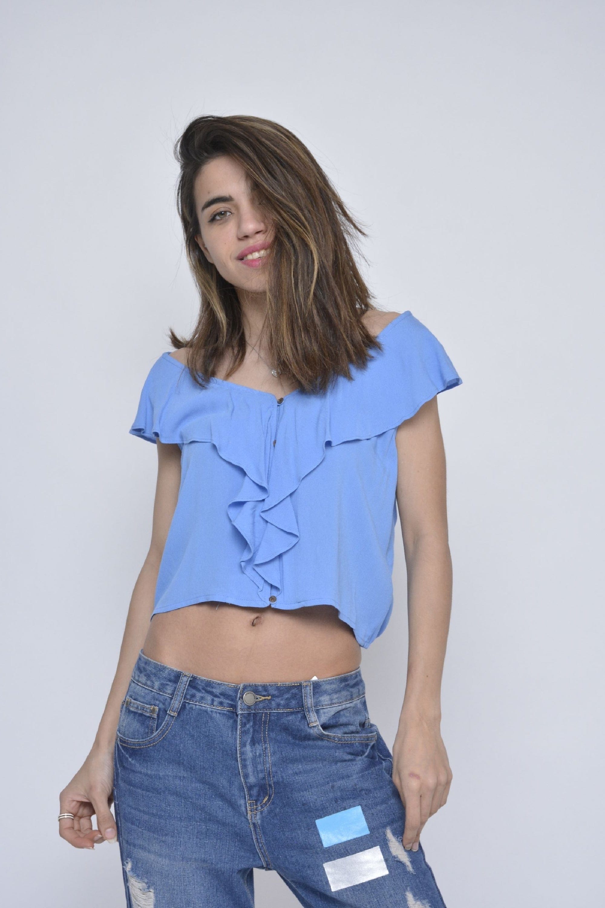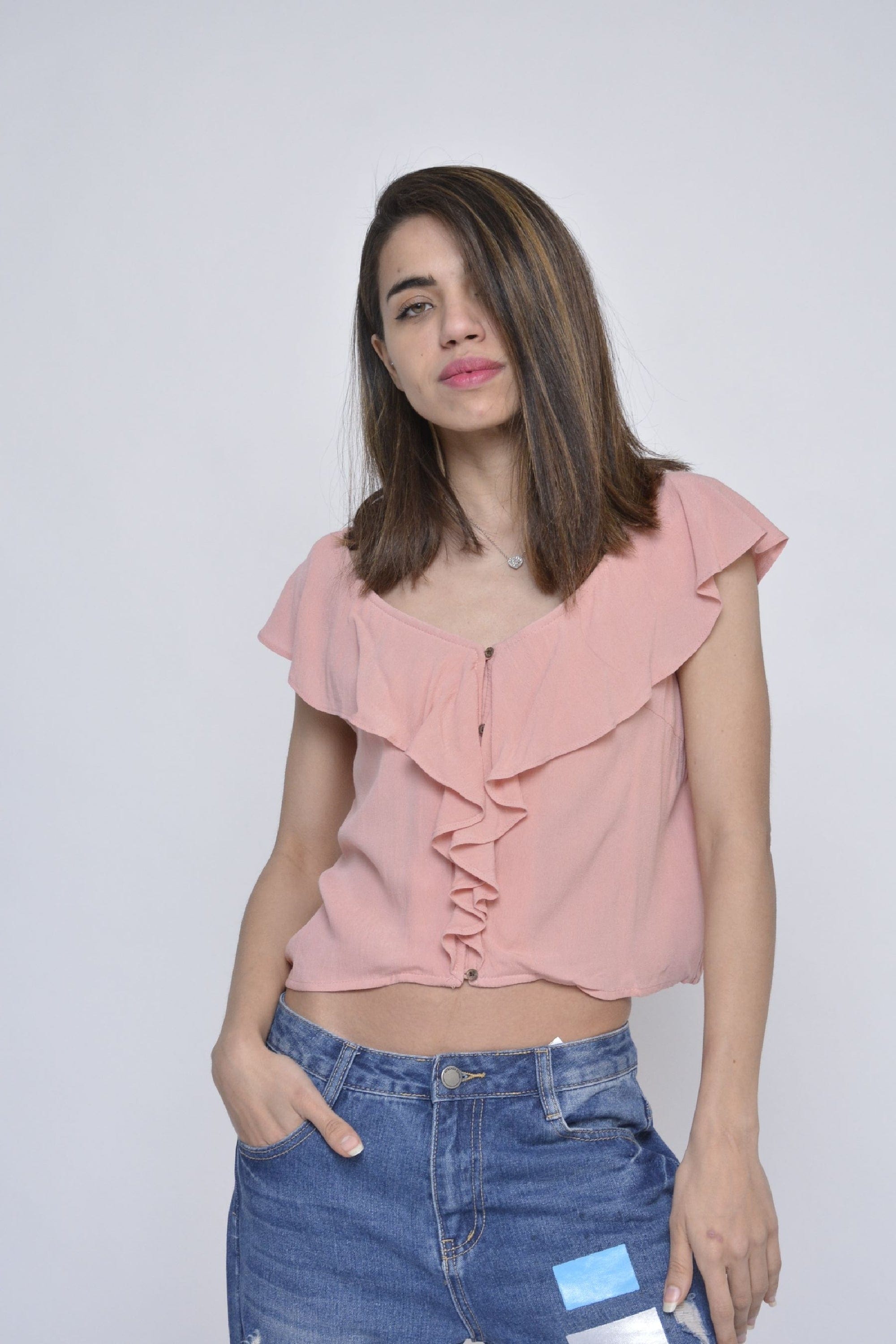 Turn heads with this cotton frilled bust blouse for women. It comes in light blue and pink colors, to meet all your tastes. The ruffled silhouette adds a feminine touch to your look. Crafted from soft and comfortable cotton fabric, this blouse is perfect for everyday wear. Easily style it with jeans or skirt for a chic yet conservative look. Order a cotton ruffled blouse from the chest for women from Kitschen Now I am the most elegant and attractive. Order now through Fashion Saudi! Product Number: 04-1166