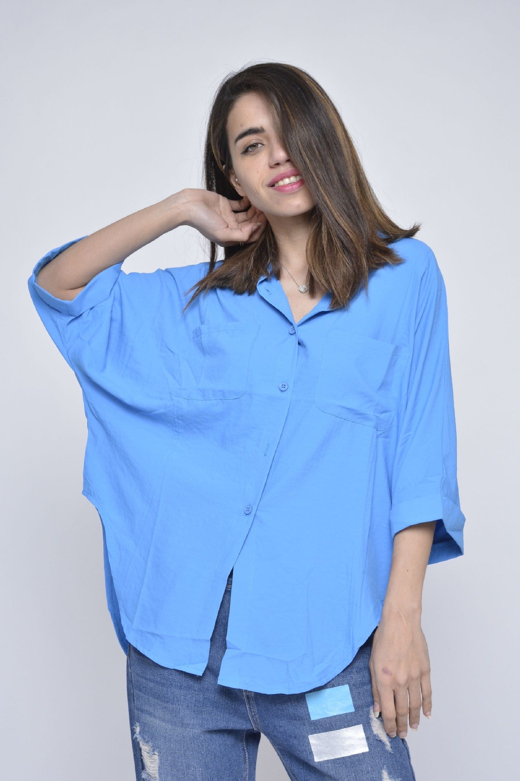 Get ready for a stylish and relaxed look with an oversize buttoned front shirt and long sleeve from women Kitschen. This shirt is available in three cool colors: blue, coral and grey. It's elegantly styled to add a touch of glamour to your look. It features an oversize silhouette and buttons at the front that add a feminine touch, and long sleeves add a chic and modern touch. Style it with jeans or skirts for the perfect look for every occasion. Get now an oversize shirt with front buttons and long sleeves for women from Kitschen And get ready to shine with your own elegance. Order it now through Fashion KSA and get the best outfits! Product Number: 05-1813