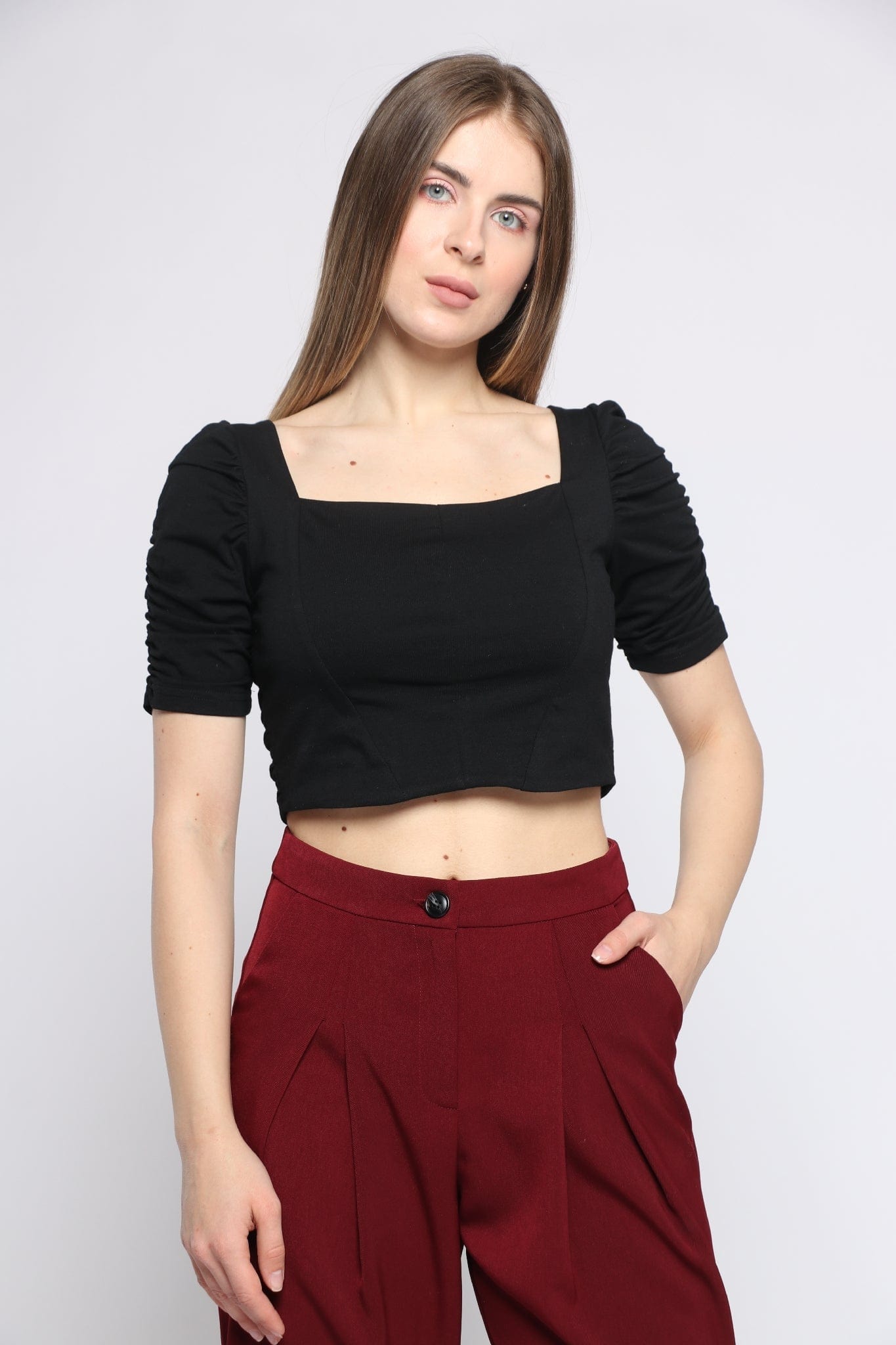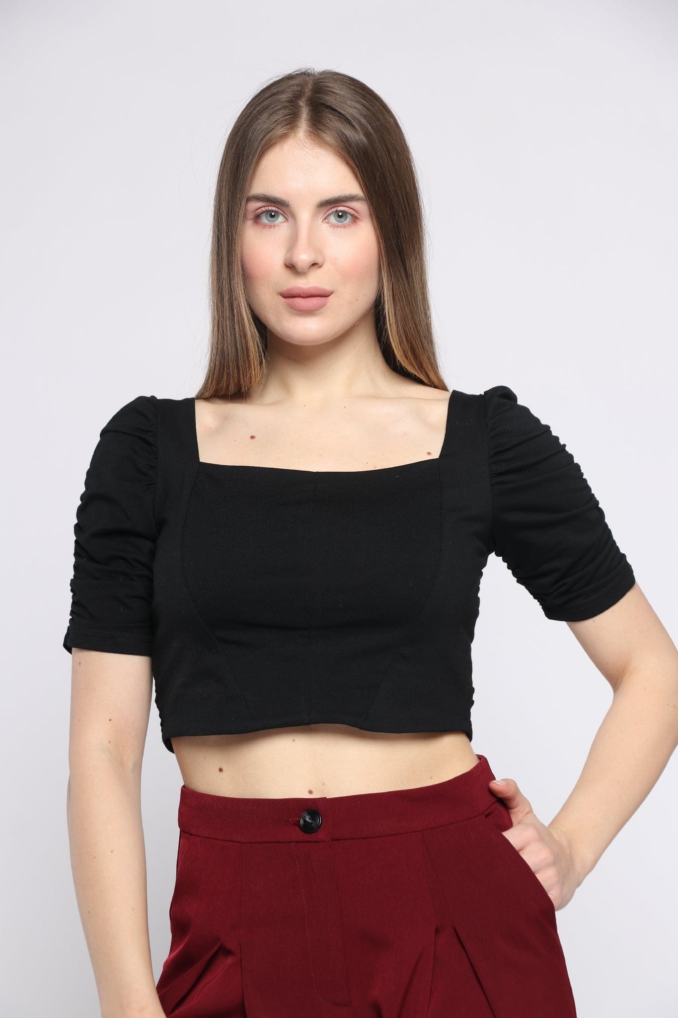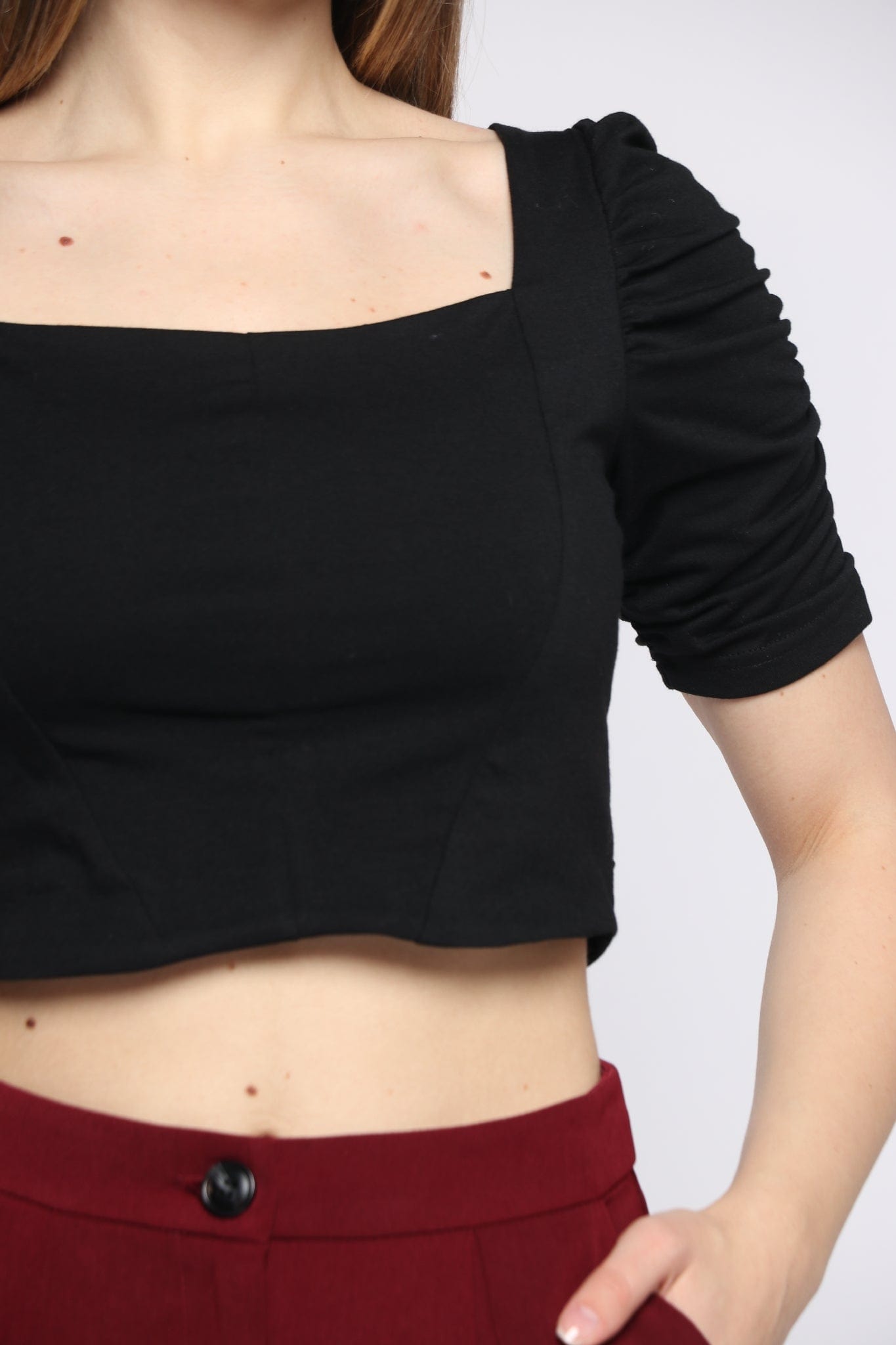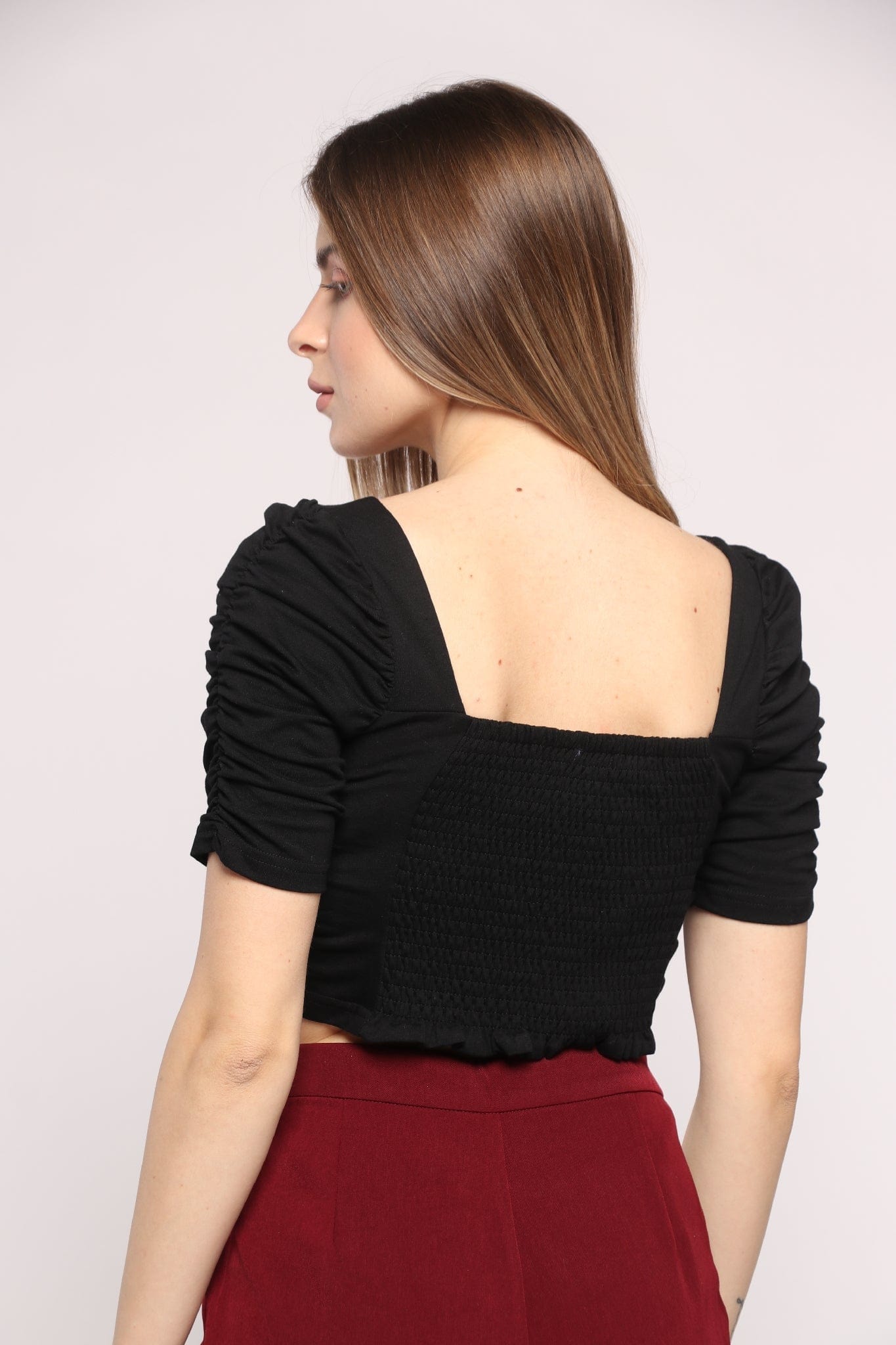 Get ready to shine with a short-sleeved half-bellyed blouse with a square neckline from Kitschen. This blouse is available in a variety of colours including black and off-white. This blouse is designed with great elegance and meticulous details make it perfect for modern looks. It's cut to a short cut with a belly and a square neckline to showcase your femininity in style. Wear it with a skirt or pants for a flattering look for every occasion. Get now a short-sleeved half-bellyed blouse with a square neckline from Kitschen And I am the most beautiful and elegant. Order it now through Fashion KSA! Product Number: 05-1917