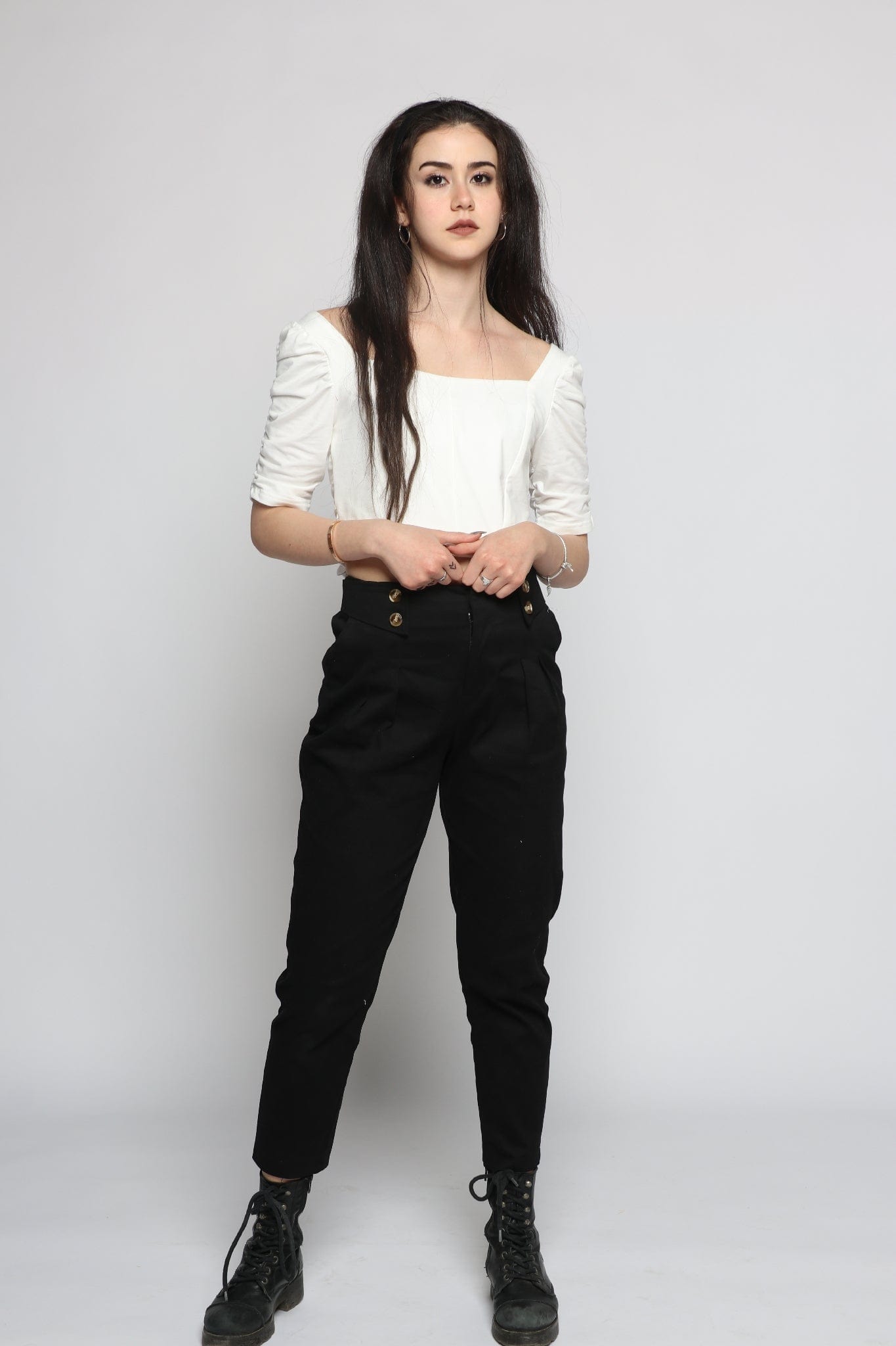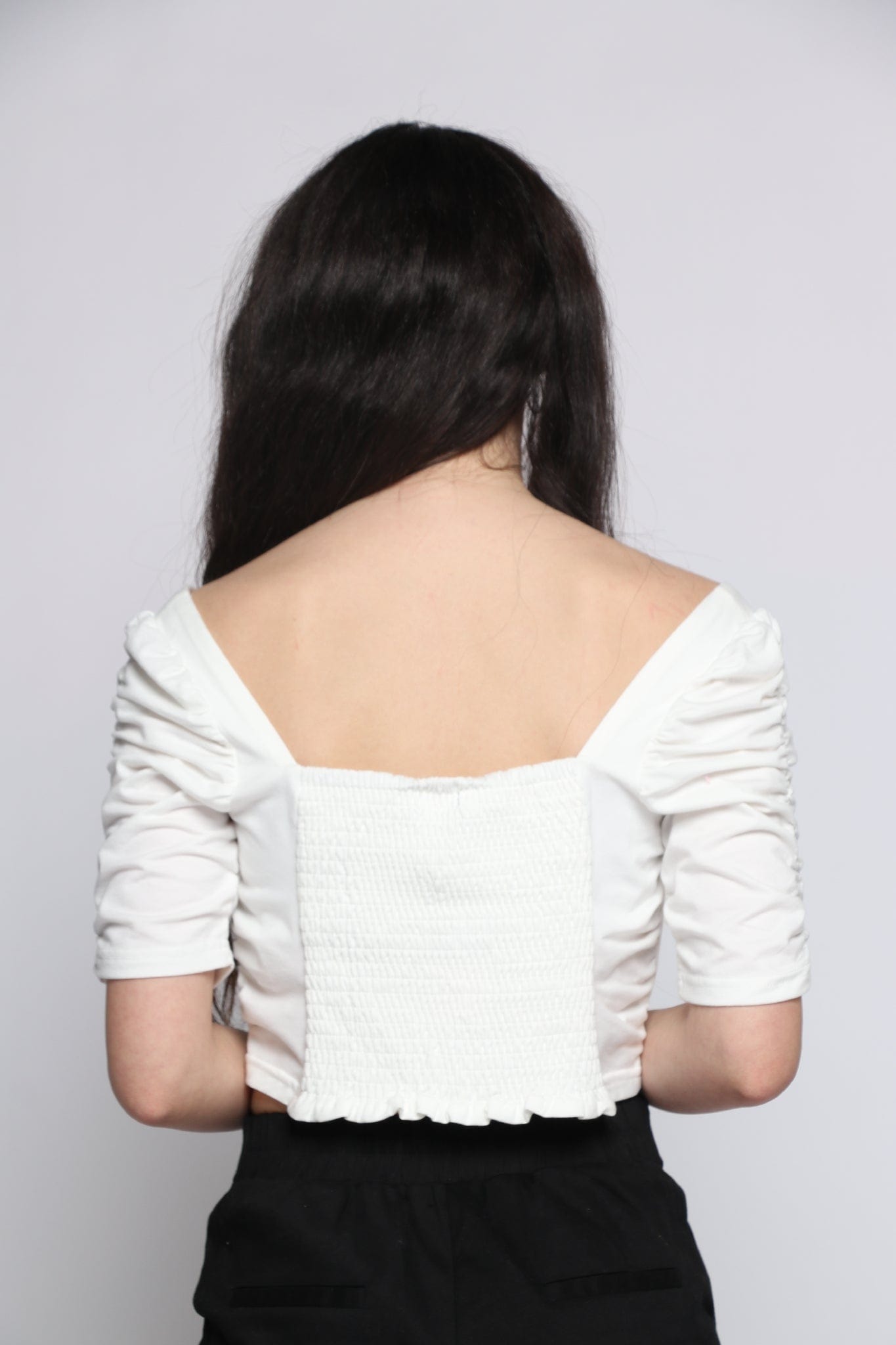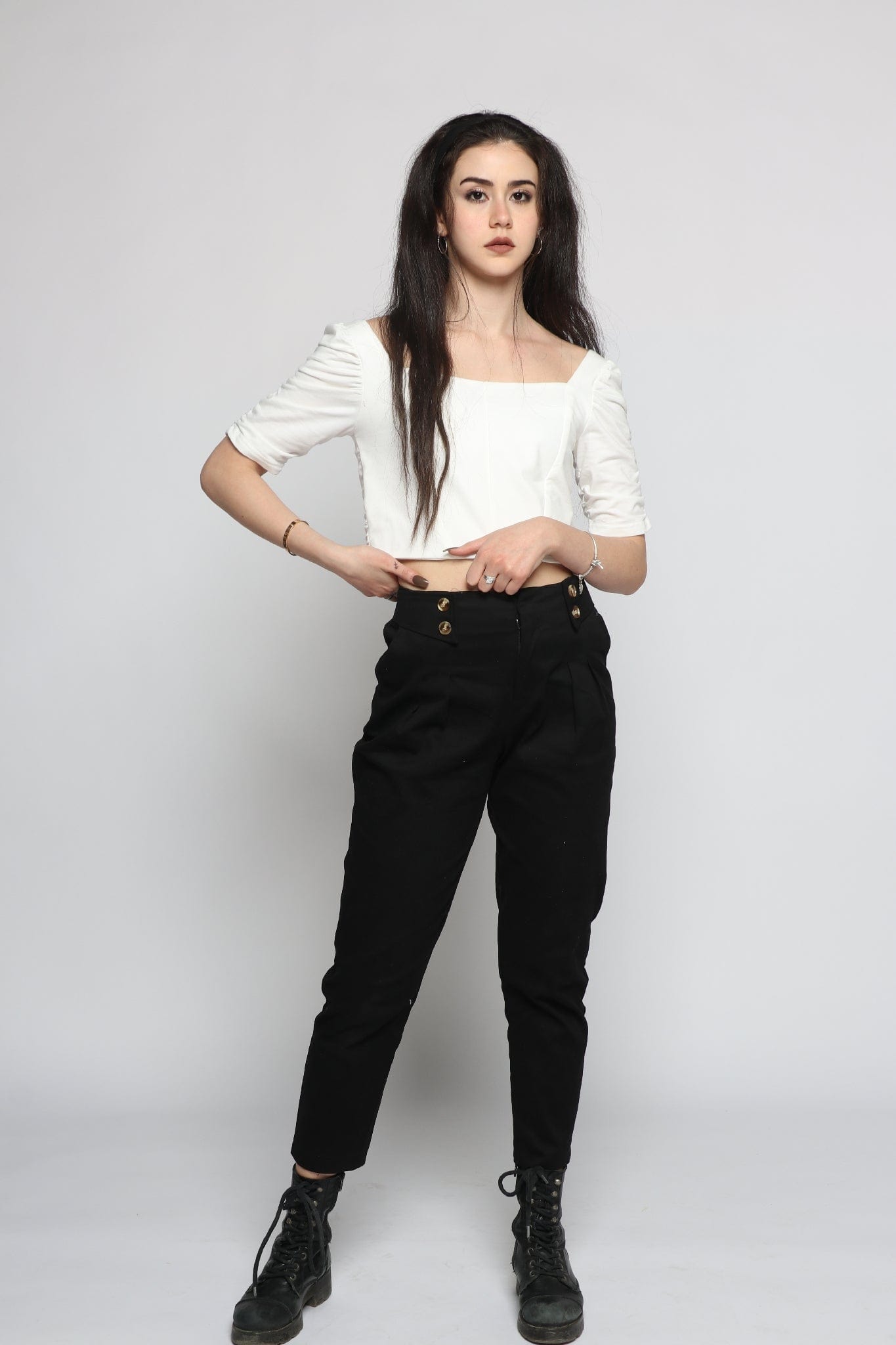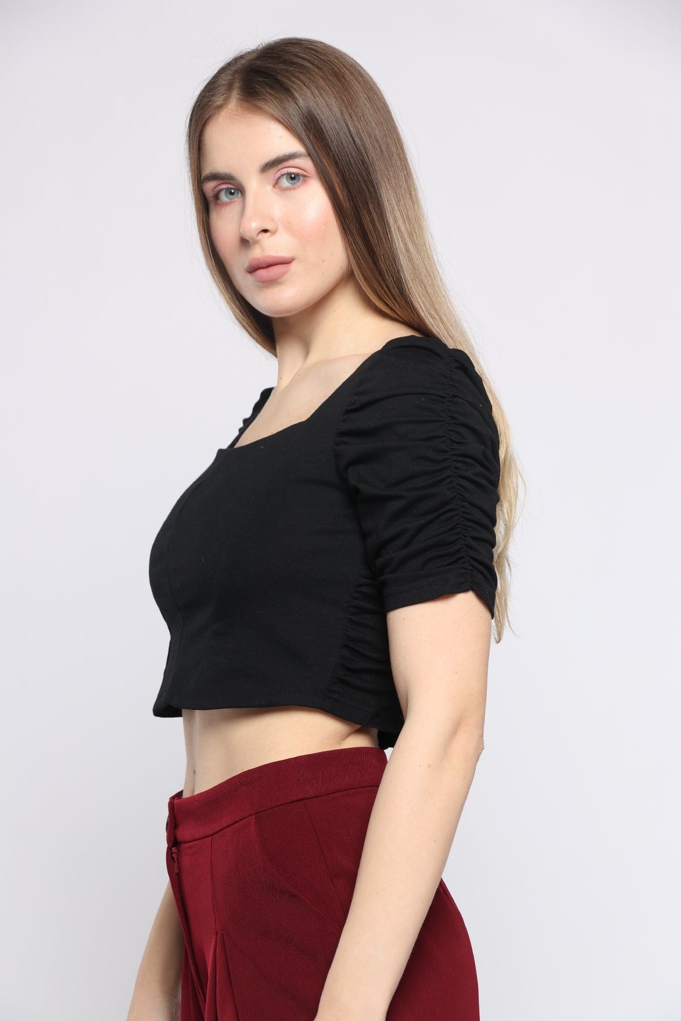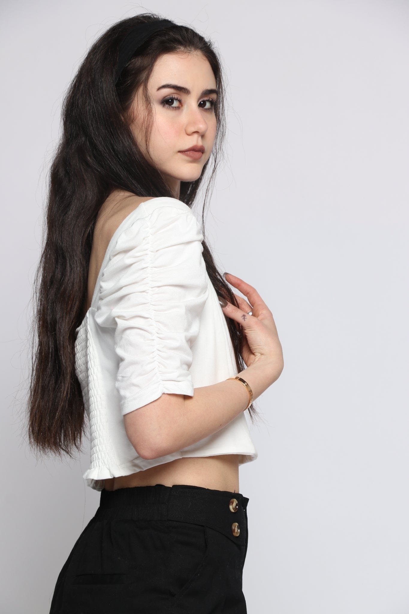 Get ready to shine with a short-sleeved half-bellyed blouse with a square neckline from Kitschen. This blouse is available in a variety of colours including black and off-white. This blouse is designed with great elegance and meticulous details make it perfect for modern looks. It's cut to a short cut with a belly and a square neckline to showcase your femininity in style. Wear it with a skirt or pants for a flattering look for every occasion. Get now a short-sleeved half-bellyed blouse with a square neckline from Kitschen And I am the most beautiful and elegant. Order it now through Fashion KSA! Product Number: 05-1917