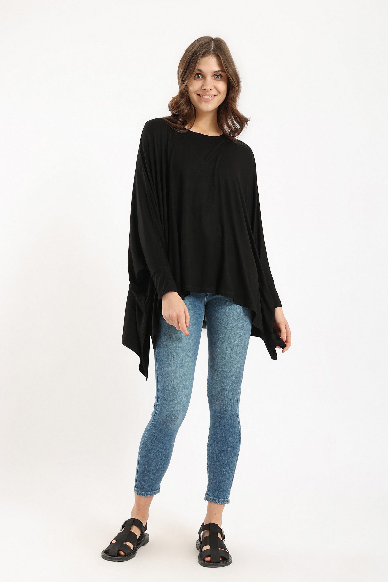 Get ready to shine with an asymmetrical oversize plain blouse from the long sleeve underneath. This blouse is available in three gorgeous colors: black, purple and royal blue. This blouse is designed with great elegance and its meticulous details make it perfect for your everyday looks. The oversize cut is asymmetrical under long sleeves, adding a unique and modern touch to your look. Now get a plain oversize asymmetrical blouse from under the long sleeve from Carina and get ready to shine with your own elegance. Order it now through Fashion KSA and enjoy style for every occasion. Introducing the Carina Plain Oversized Uneven Hem Long Sleeve Blouse, a must-have addition to your wardrobe. Available in three stunning colors - black, purple, and royal blue - this blouse combines comfort and style effortlessly. The oversized fit and unique uneven hem make it a statement piece that will elevate your fashion game. Whether you're dressing up for a special occasion or keeping it casual, this blouse is perfect for any occasion. Don't miss out on this fashionable piece from Carina. رقم المنتج: 54334