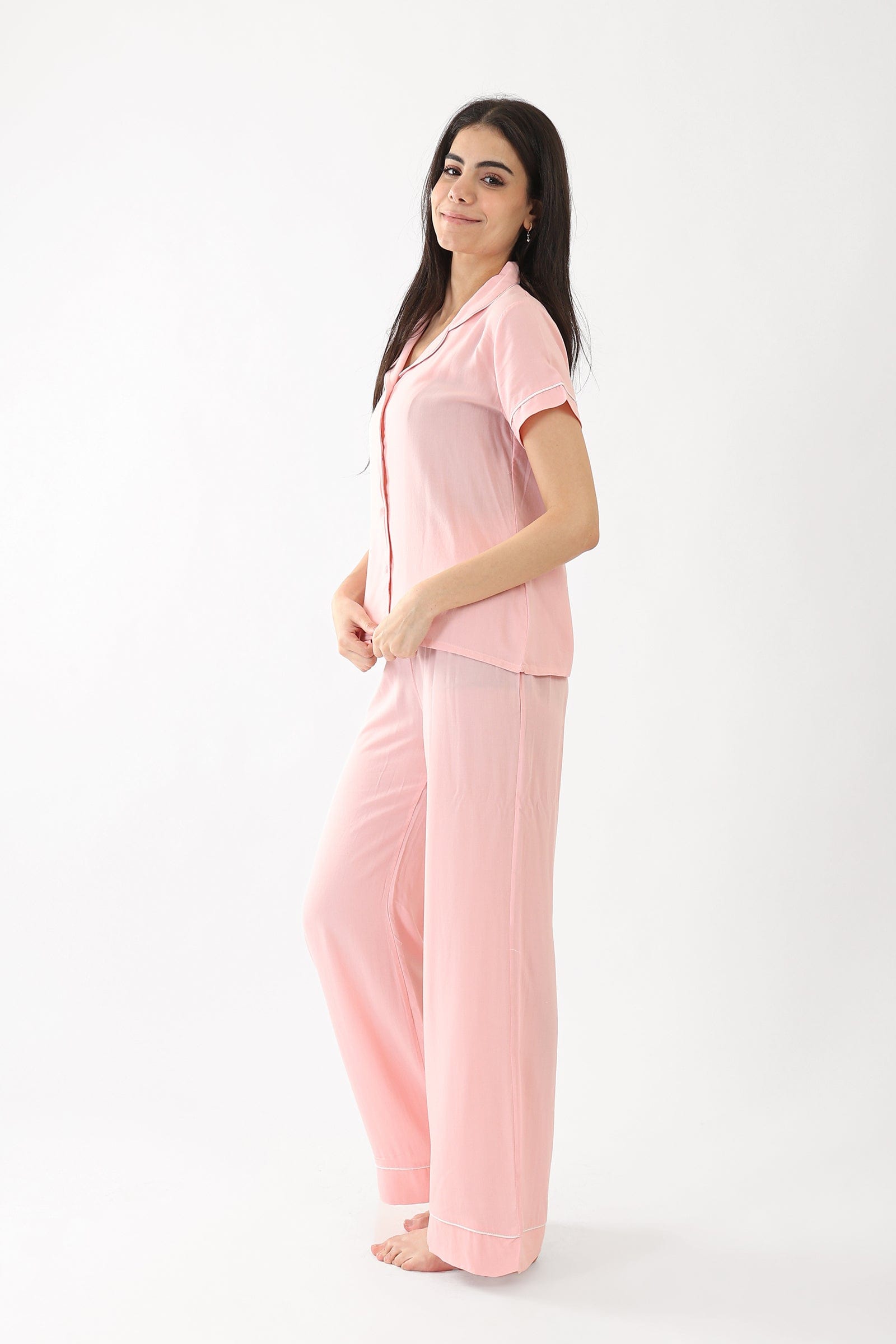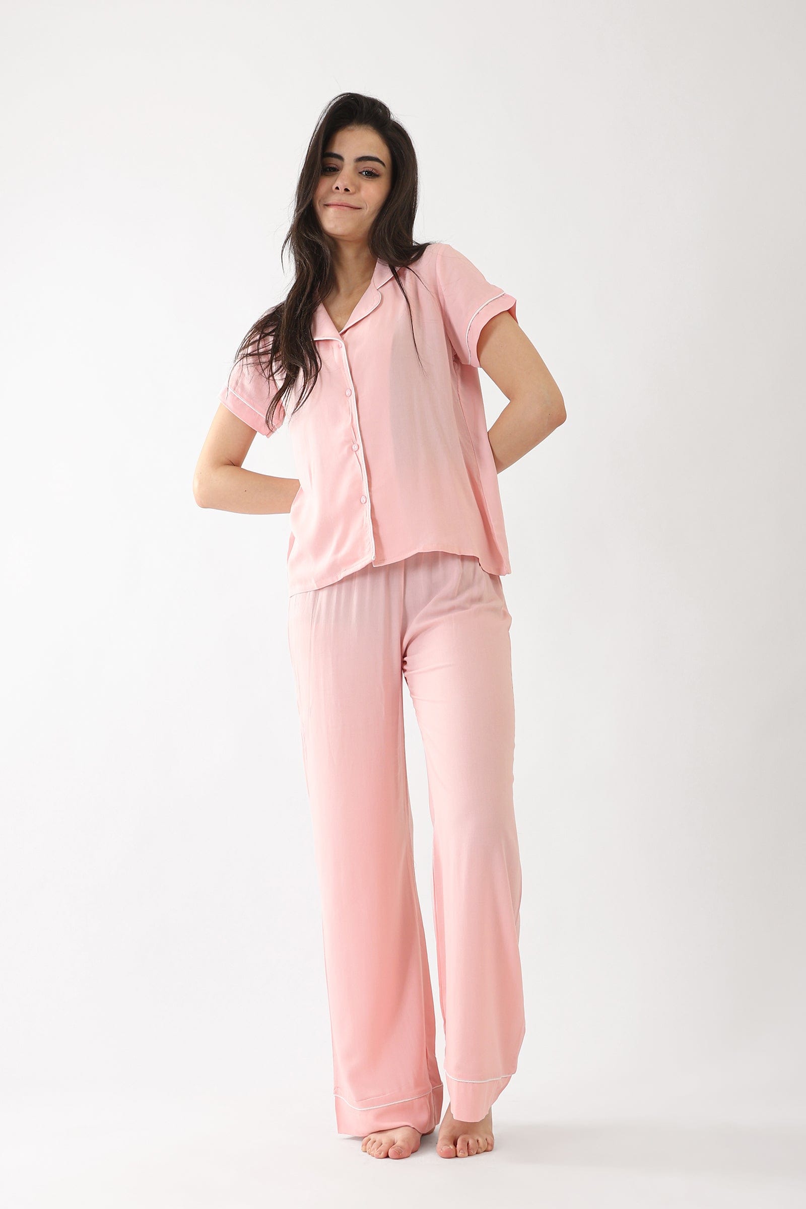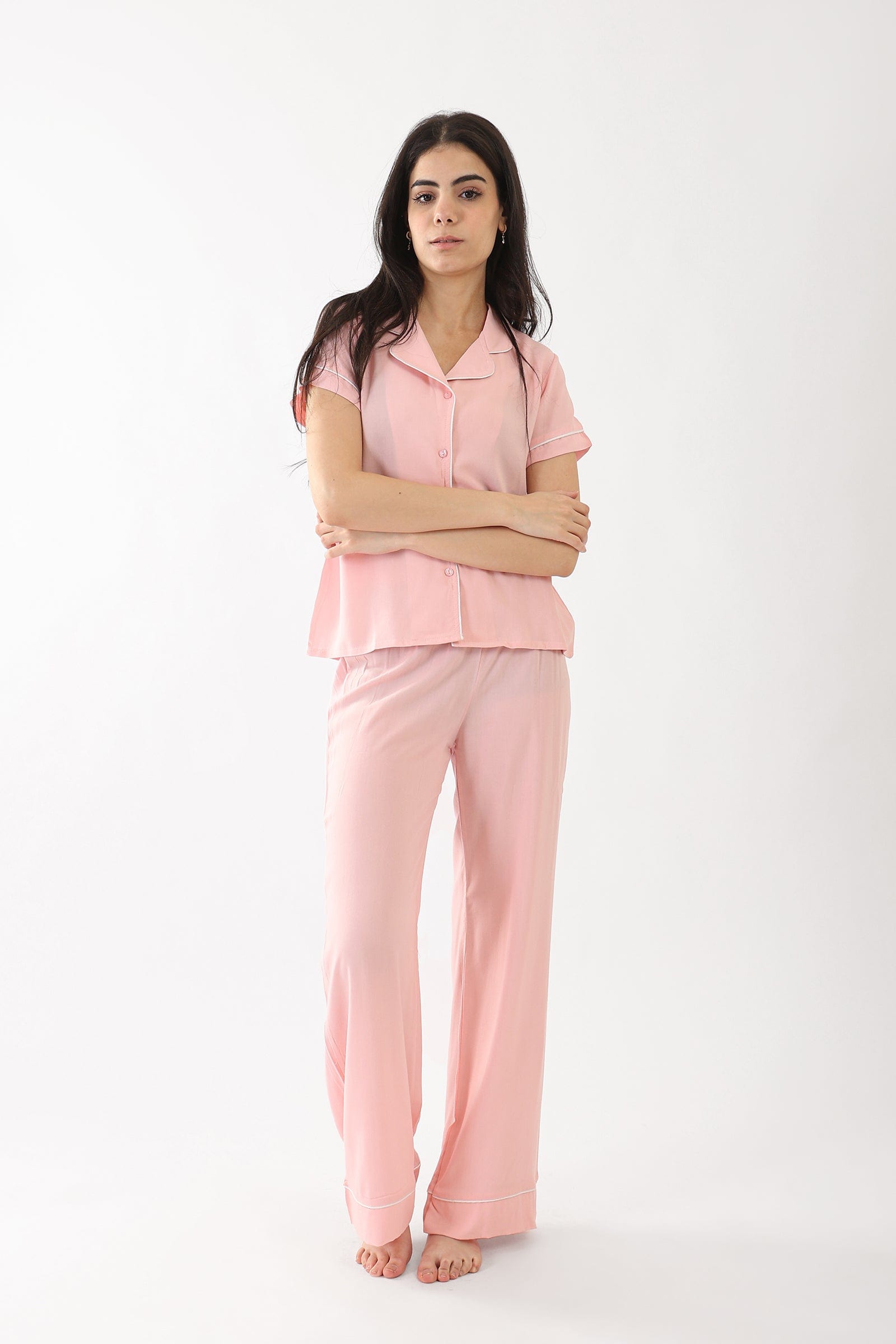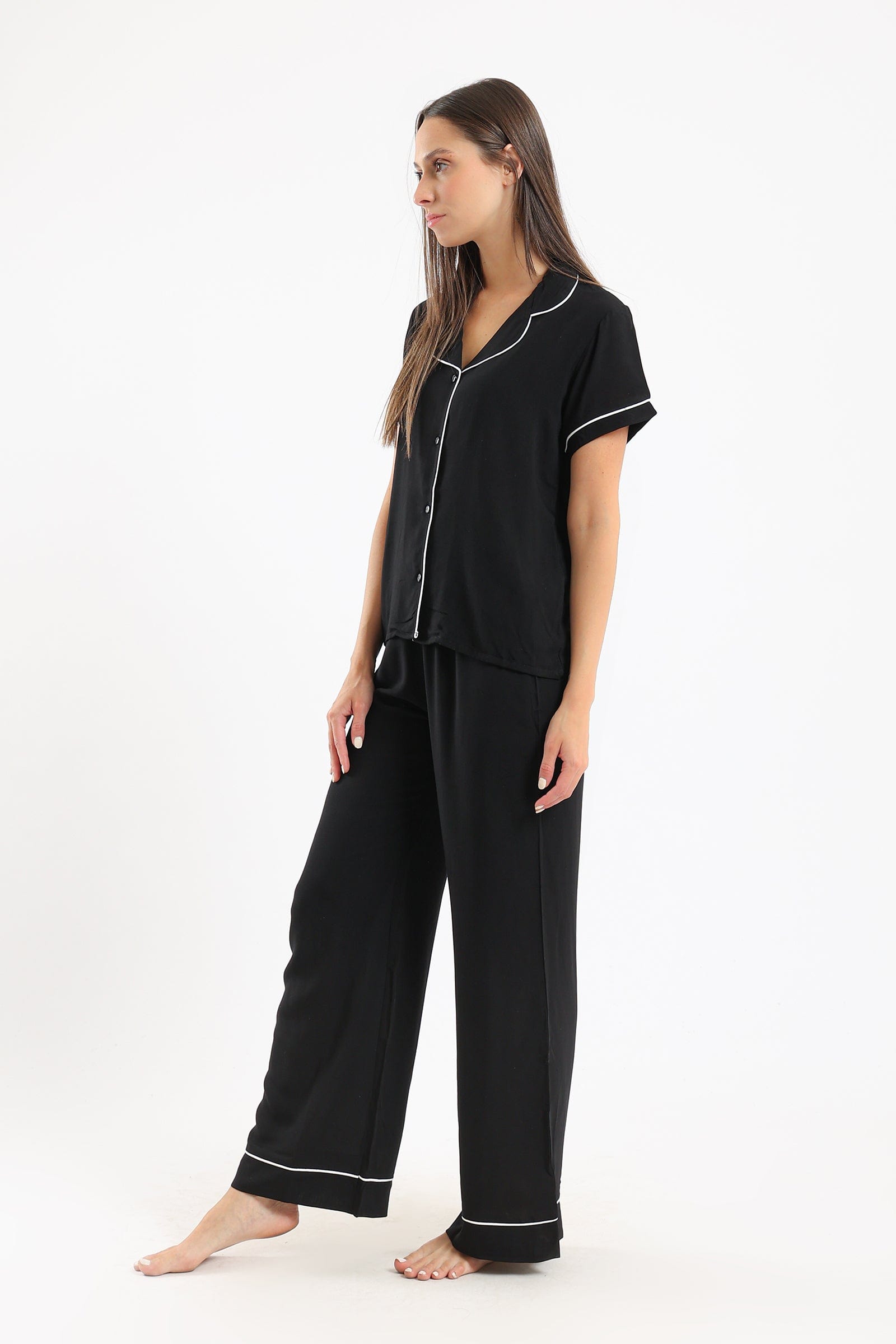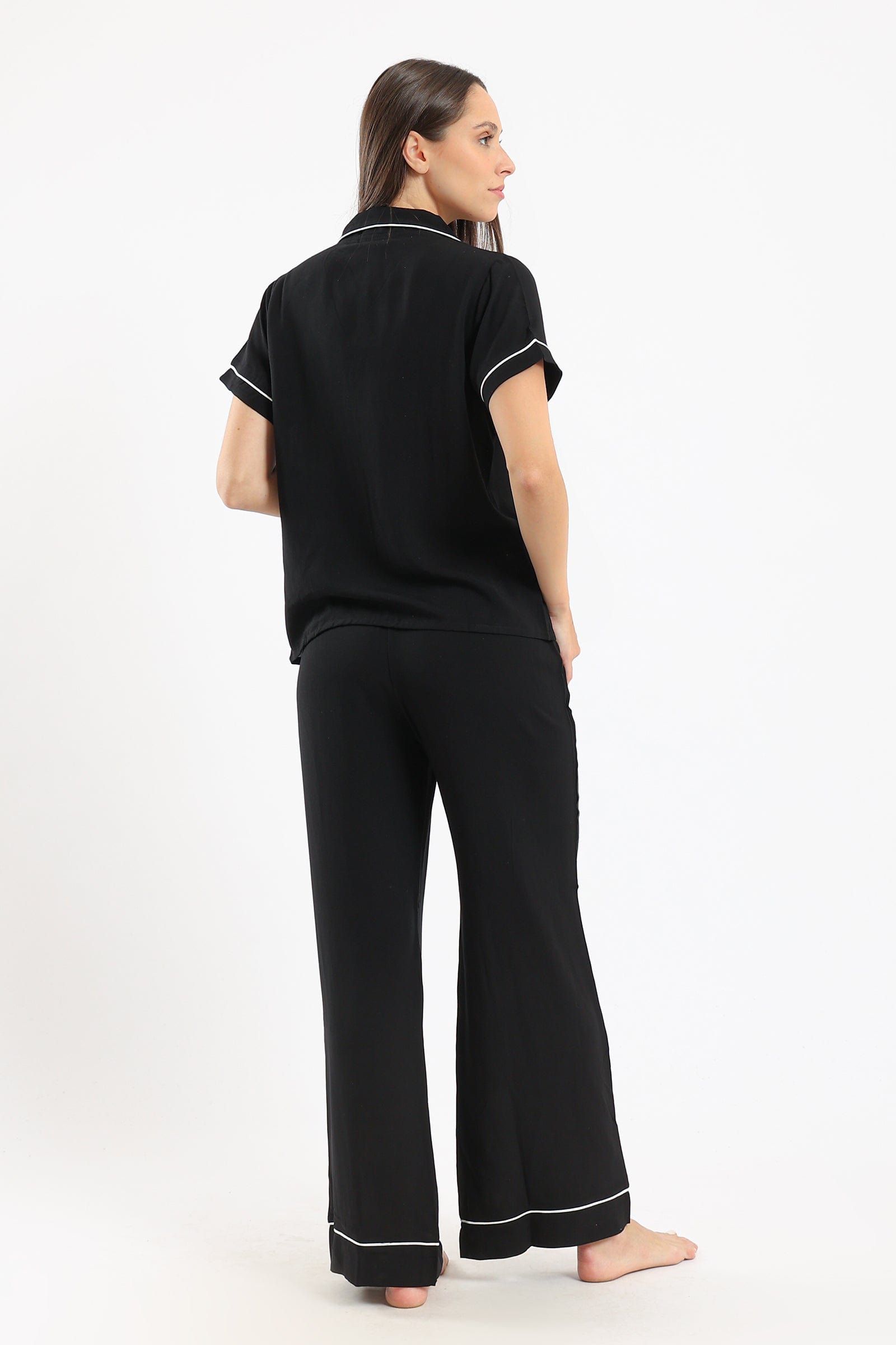 Get ready for comfort and style with this Carina Collar Shirt and Pants Pajama Set. This set comes with a modern and attractive design, made of high-quality material to ensure comfort all night long. The short sleeve collar and delicate details add a feminine touch, while the trousers offer comfort and free movement. The set is available in beautiful colors such as black and pink for you to choose what suits your unique taste. Get ready to sleep in style and get this Carina Collar Shirt and Pants Pajama Set now through Fashion KSA! Update your nightwear collection with the stylish and comfortable set of a short-sleeved shirt and pants from Carina. Available in black and pink, these pajamas are perfect for adding a touch of elegance to your bedtime routine. The shirt features a classic collar and short sleeves, while the pants have a relaxed fit for ultimate comfort. Whether you're lounging at home or getting ready for bed, this set is a must-have. Place your order now through Fashion and experience the luxury of Carina nightwear. SKU: 54382