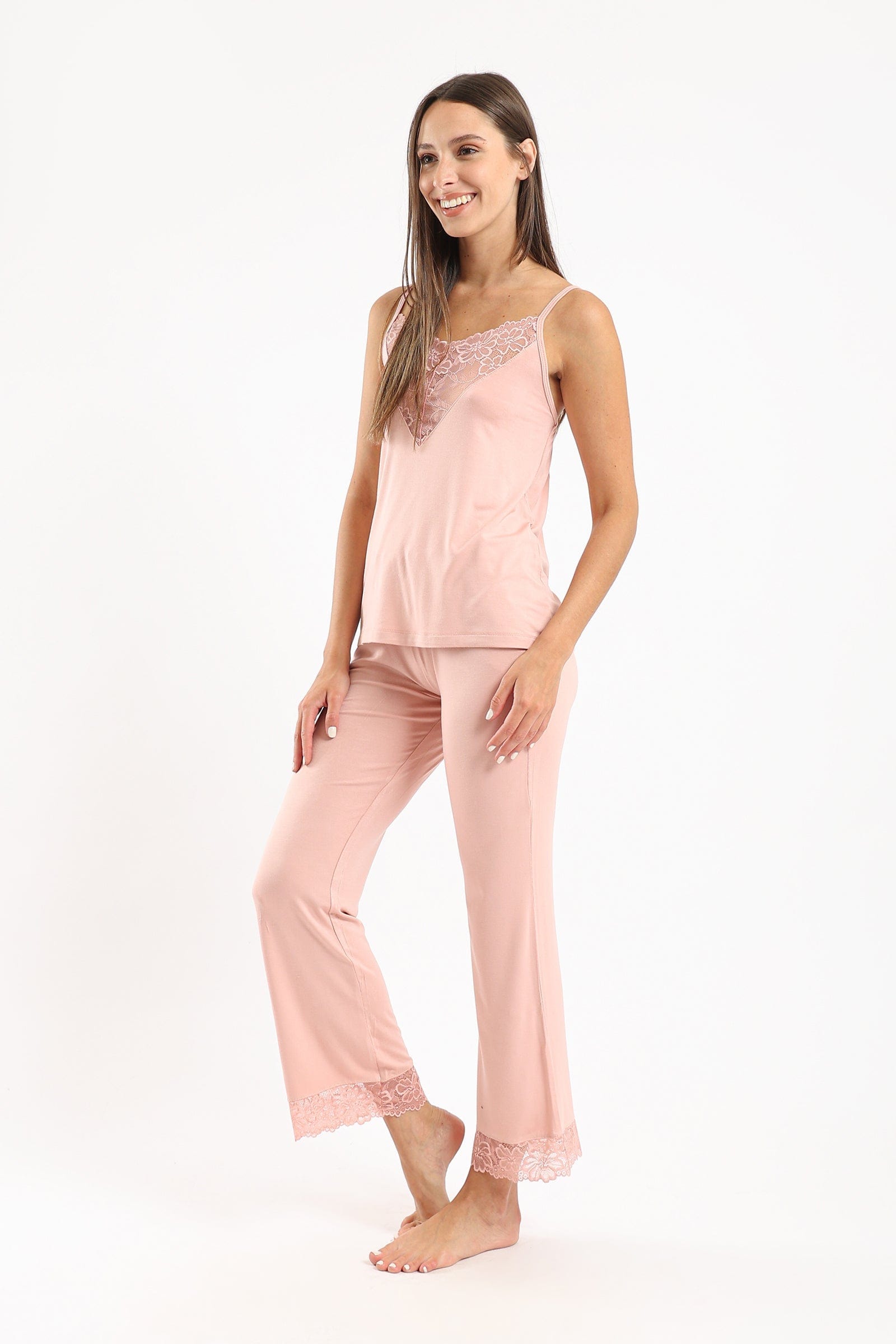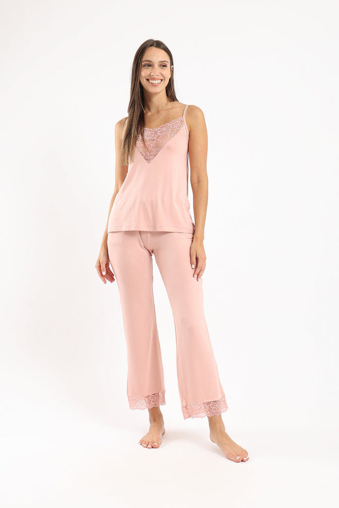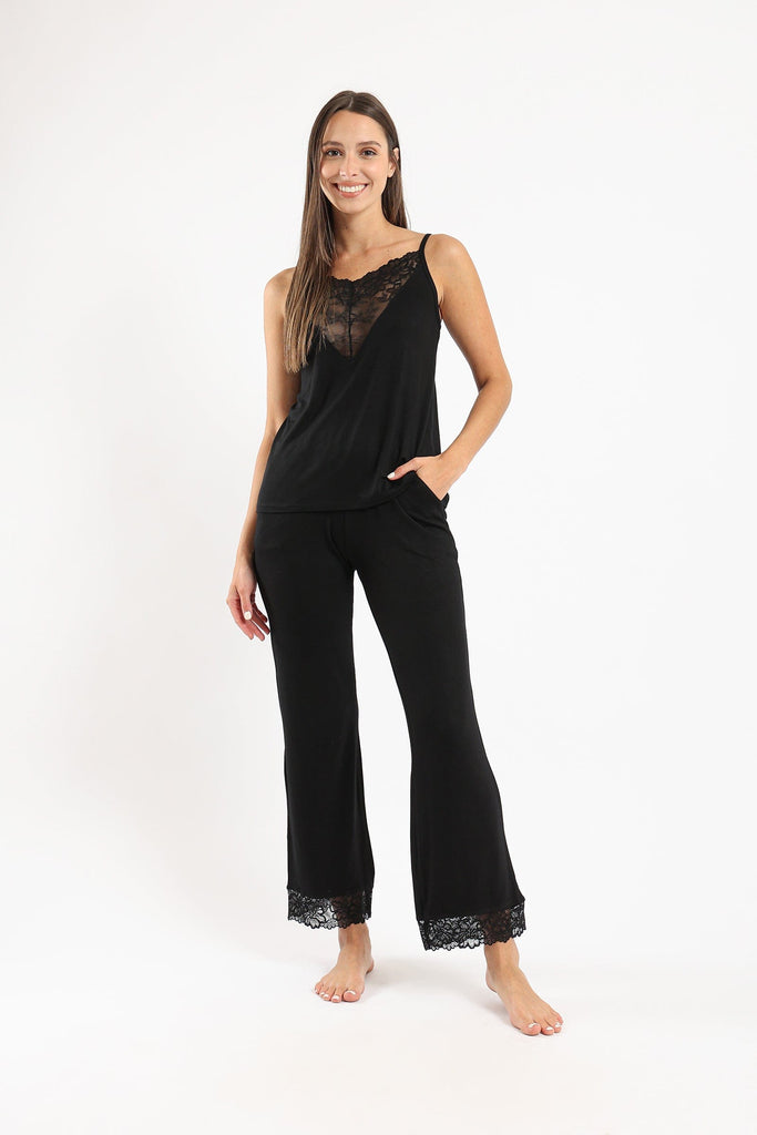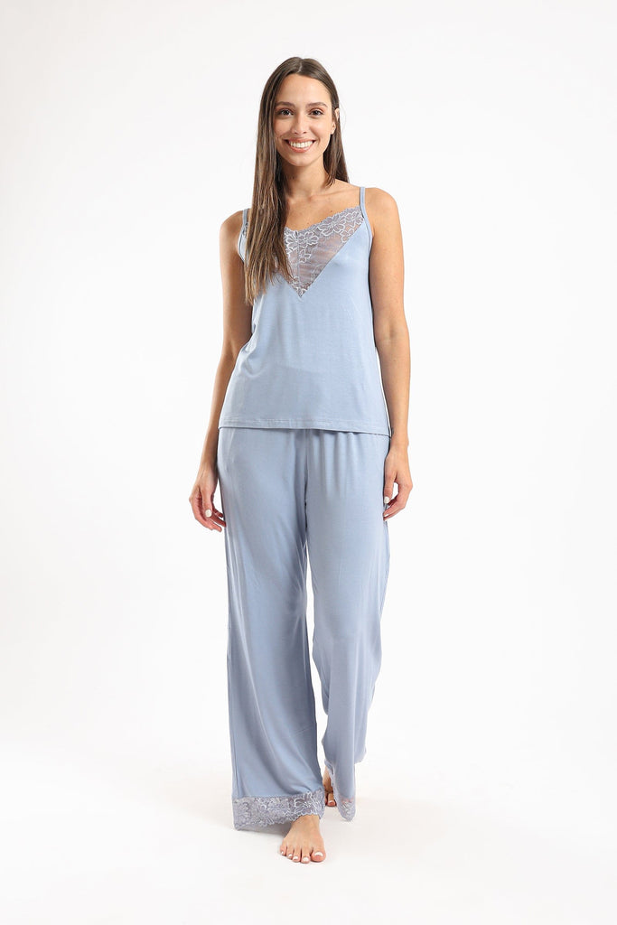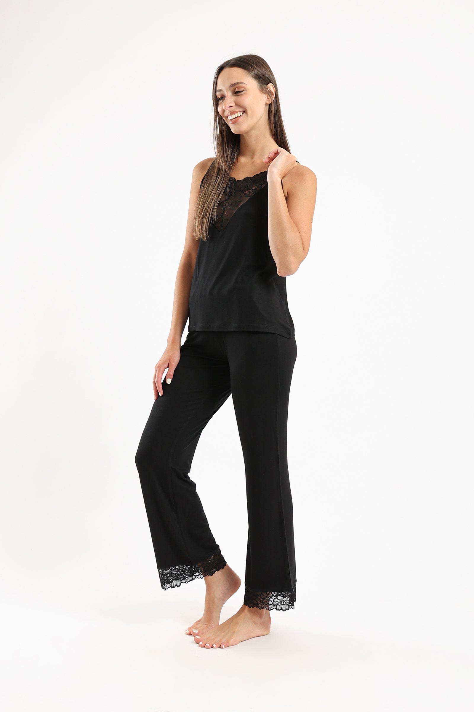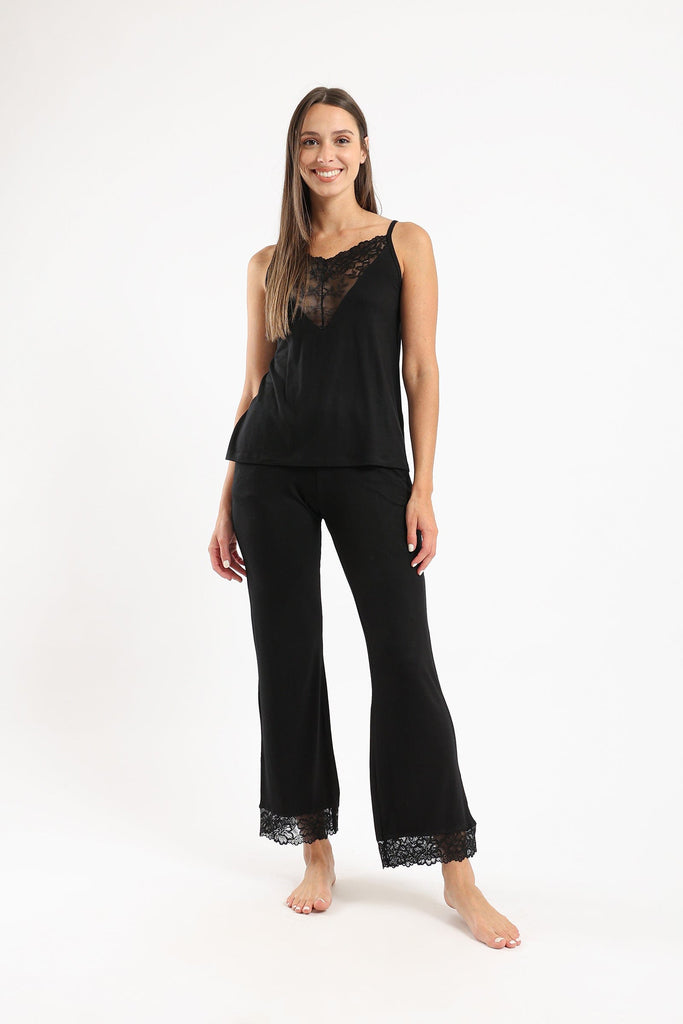 Get ready for comfort and style with this lace pajama set with trousers from Carina. This set comes in three gorgeous colors: black, light indigo and light simon. The pajamas feature a luxurious lace silhouette that adds a feminine and flattering touch to your look. Slim straps have a sleek and modern touch, while trousers offer comfort and freedom of movement. You can wear this set to sleep or relax at home. Order now this lace strap pajama set with trousers from Carina and enjoy comfort and style at the same time. Book your order now through Fashion KSA and be in style. Get ready to elevate your nighttime style with the elegant lace lingerie set with straps and pants from Carina. This set is available in three stunning colors: black, light blue, and light gray. Crafted with delicate lace, this lingerie set exudes sophistication and allure. The set includes a comfortable and stylish pair of pants, making it perfect for both lounging and special occasions. Embrace your femininity and feel confident in this exquisite lace lingerie set from Carina. رقم المنتج: 54422