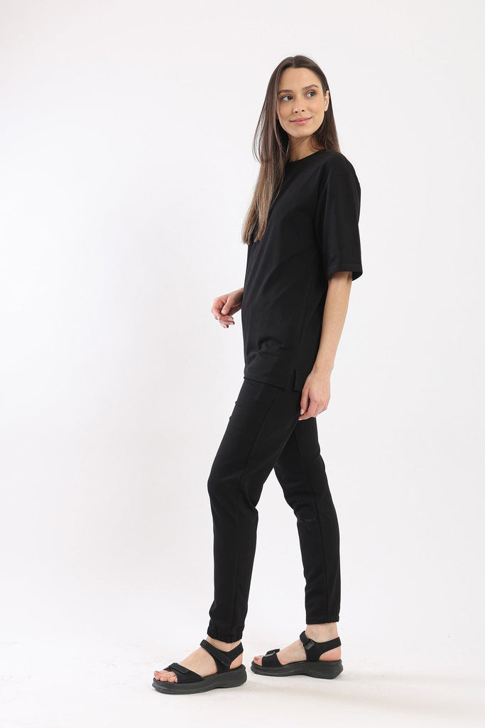 Enjoy comfort and style with a flexible home pajama set consisting of plain half sleeved T-shirt and pants from the brand Carina. Available in attractive black and fuchsia colors, this set is available to choose what suits your unique taste. The design of the product is flexible and comfortable, making it ideal for home and relaxation. You'll feel comfortable all day with high-quality fabric and a fitting fit. Get now a flexible home pajama set, plain half sleeve t-shirt and trousers from Carina and get ready to enjoy your time at home. Order it now through Fashion KSA and enjoy comfort and style at the same time! Introducing the comfortable and versatile Carina Home Lounge Set in a solid color t-shirt with half sleeves and matching pants. Available in two stunning shades, black and fuchsia, this lounge set is perfect for relaxing at home or running errands in style. The loose fit and flexible fabric ensure all-day comfort, while the simple yet chic design adds a touch of sophistication to your loungewear collection. Experience the ultimate combination of comfort and fashion with this Carina Home Lounge Set. رقم المنتج: 54439