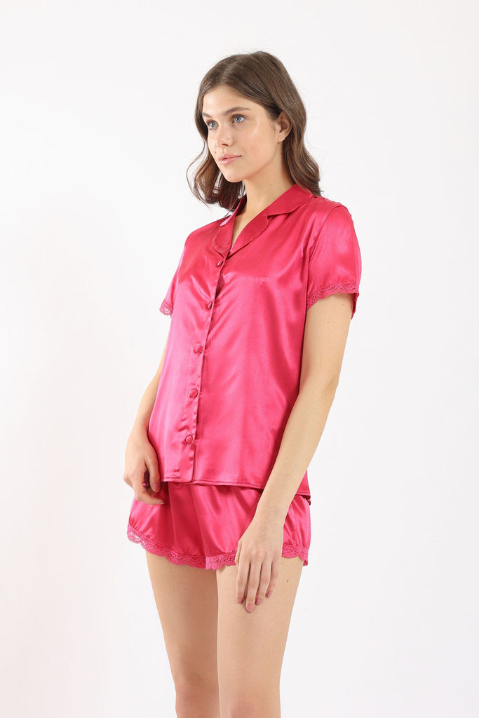 Get ready for comfort and style with a satin pajama shorts and blouse set from Carina. This set comes in a sleek and comfortable design, made of satin fabric that is soft and comfortable on the skin. The set includes short shorts and a short-sleeved blouse, giving you a modern yet comfortable look. Available in a flattering fuchsia color, these pajamas add a touch of vitality and femininity to your look. Get now a satin pajama set and blouse from Carina and enjoy comfort and style in every moment. Order it now through Fashion KSA and be ahead of the curve with the latest fashion. Introducing the luxurious satin shorts and blouse pajama set from Carina. Experience ultimate comfort and style with this elegant set. Made from high-quality satin fabric, it feels incredibly soft against your skin. The shorts have a relaxed fit, providing freedom of movement, while the blouse features a flattering silhouette that accentuates your figure. The set comes in a stunning fuchsia color, adding a touch of glamour to your bedtime routine. Elevate your sleepwear collection and feel confident and beautiful every night. رقم المنتج: 54503