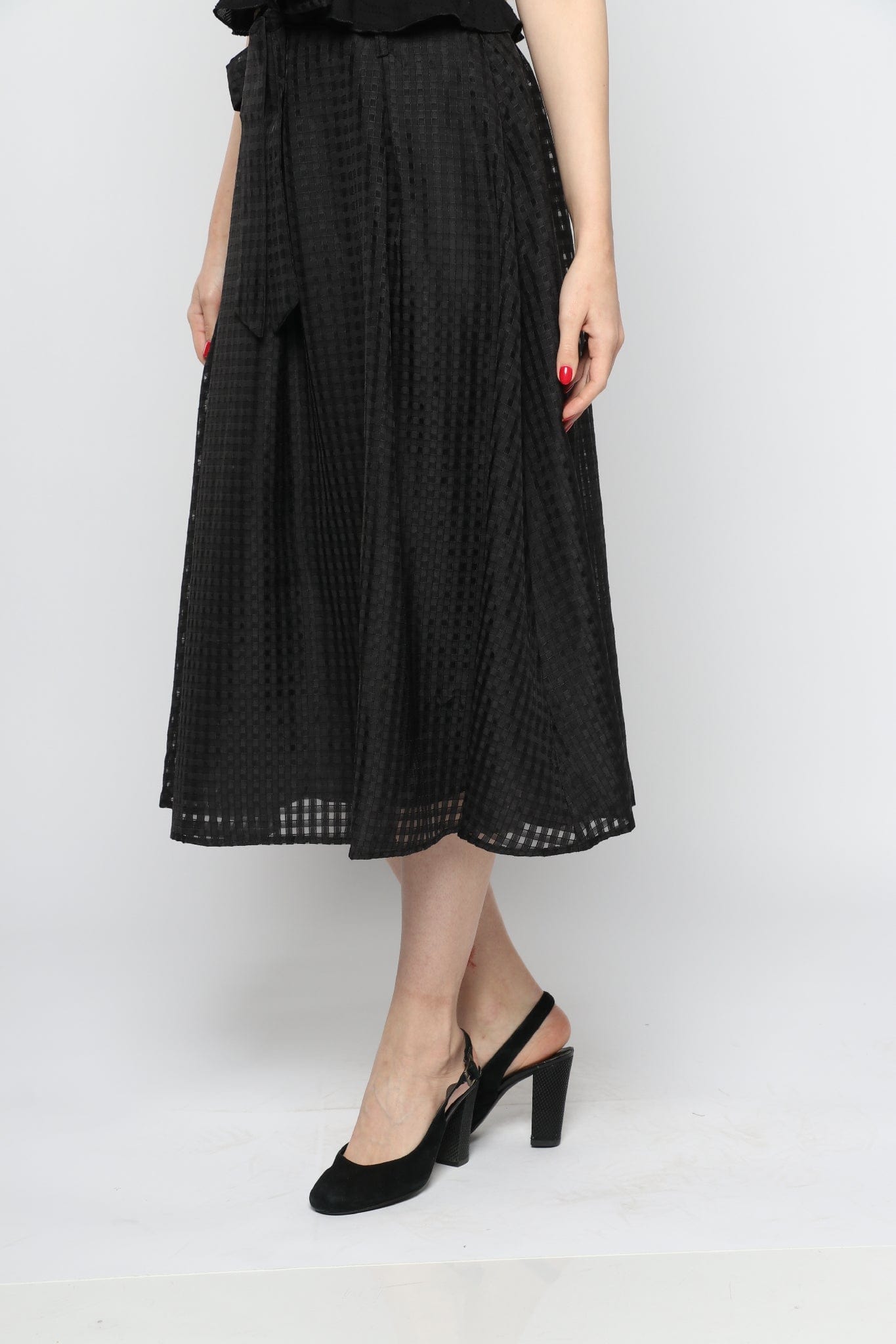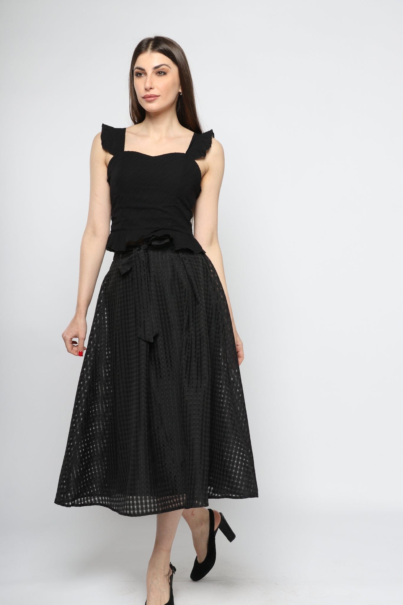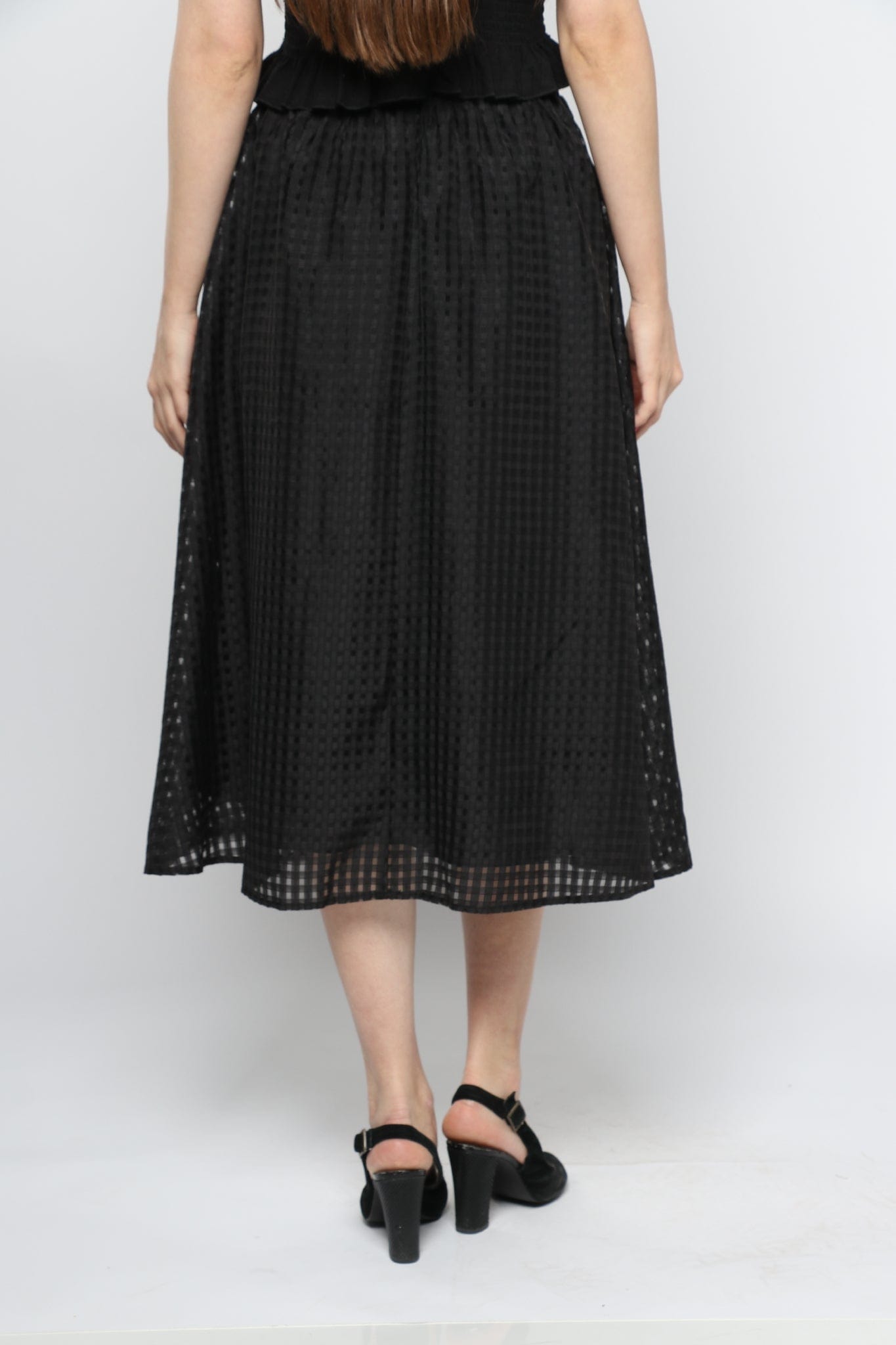 Get ready to shine in a flowy openwork midi skirt from Kitschen. This skirt is available in three gorgeous colors: black, light blue and white. Its distinctive design makes it ideal for formal occasions and casual days alike. It has a spacious fit that provides comfort and enhances elegance at the same time. Distinctive perforated details add an aesthetic touch to the look. Wear with a chic blouse and heels for a feminine look. Get now a padded openwork midi skirt from Kitschen Get ready to shine in your own style. Order it now through Fashion KSA and guarantee a charming and elegant look for every occasion. Product Number: 66-0023
