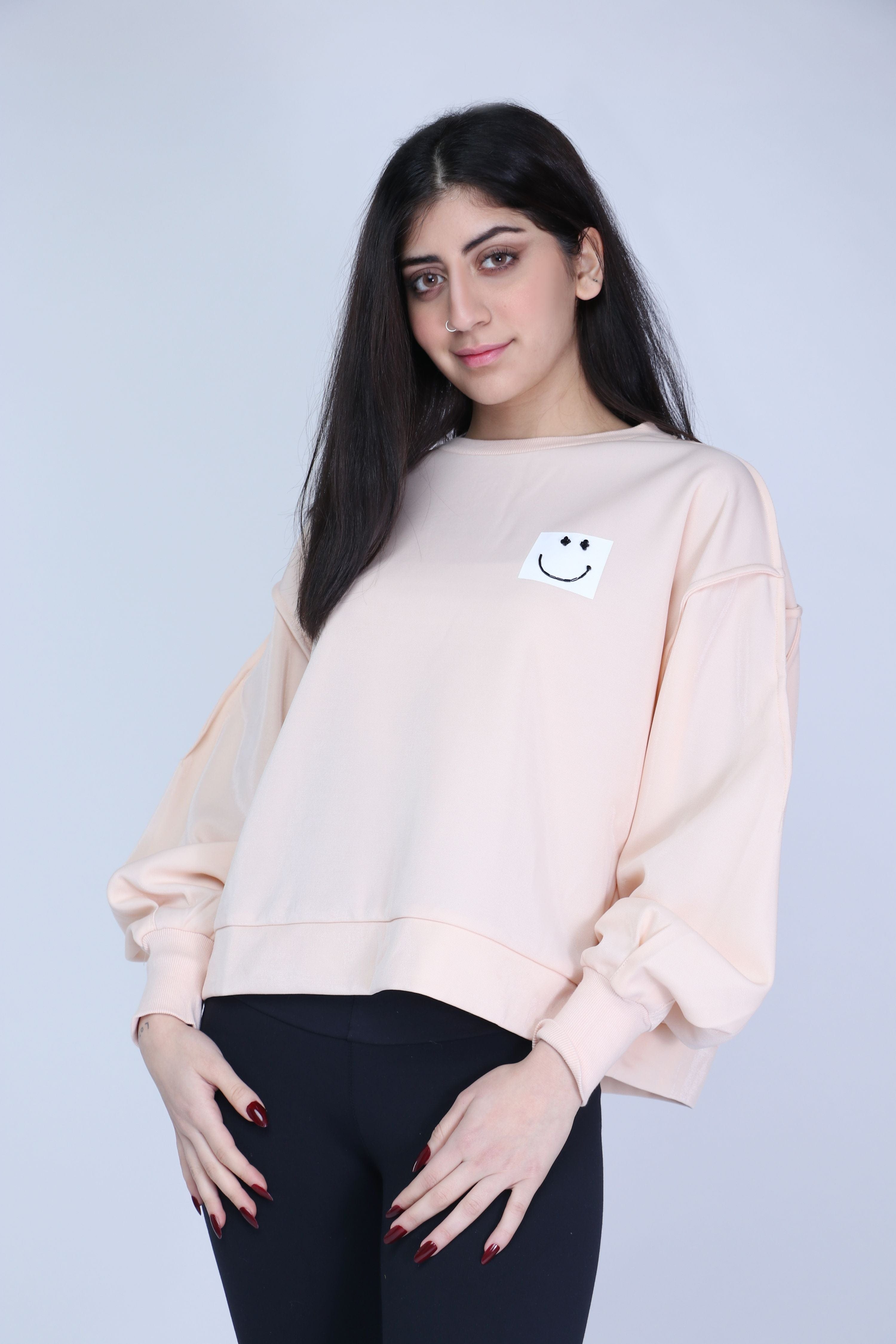 Turn heads with a long sleeve puffy blouse with women's bracelets Kitschen. This elegant blouse is available in a variety of colors: beige and purple. This blouse is designed with long sleeves and puff cuffs to add a feminine touch to your look. Its spacious and relaxed cut guarantees you all-day comfort. Style it with jeans for a contemporary look, or with a skirt for a chic occasion look. Get now a long sleeve oversize blouse with women's bracelets from Kitschen And get ready to shine with your own elegance. Order it now and enjoy fashion from Fashion Saudi Arabia. Product Number: 07-0742
