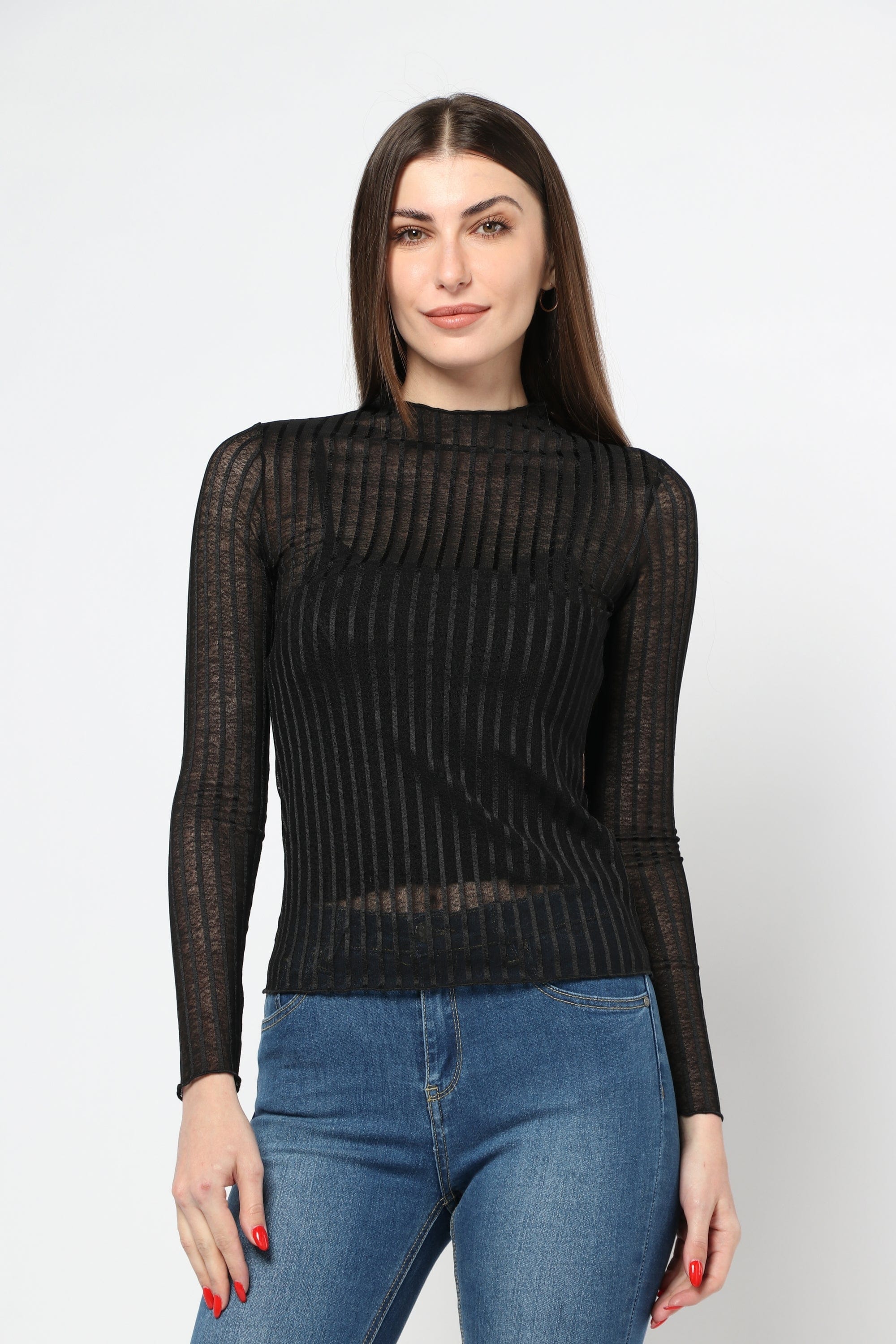 Get ready to shine in a sheer striped tight blouse for women with long sleeves Kitschen. This blouse is available in a flattering striped silhouette and is made from sheer fabric to add a glamorous touch to your look. Available in black and white colors to suit your unique taste. It's cut for a slim fit that accentuates your figure and long sleeves to add a touch of elegance to the look. Wear it with jeans or a skirt for a contemporary look. Get now a sheer striped tight blouse for women long sleeves Kitschen And get ready to shine with your gorgeous elegance. Order it now through Fashion KSA and enjoy the unique shopping experience. Product Number: 07-0782