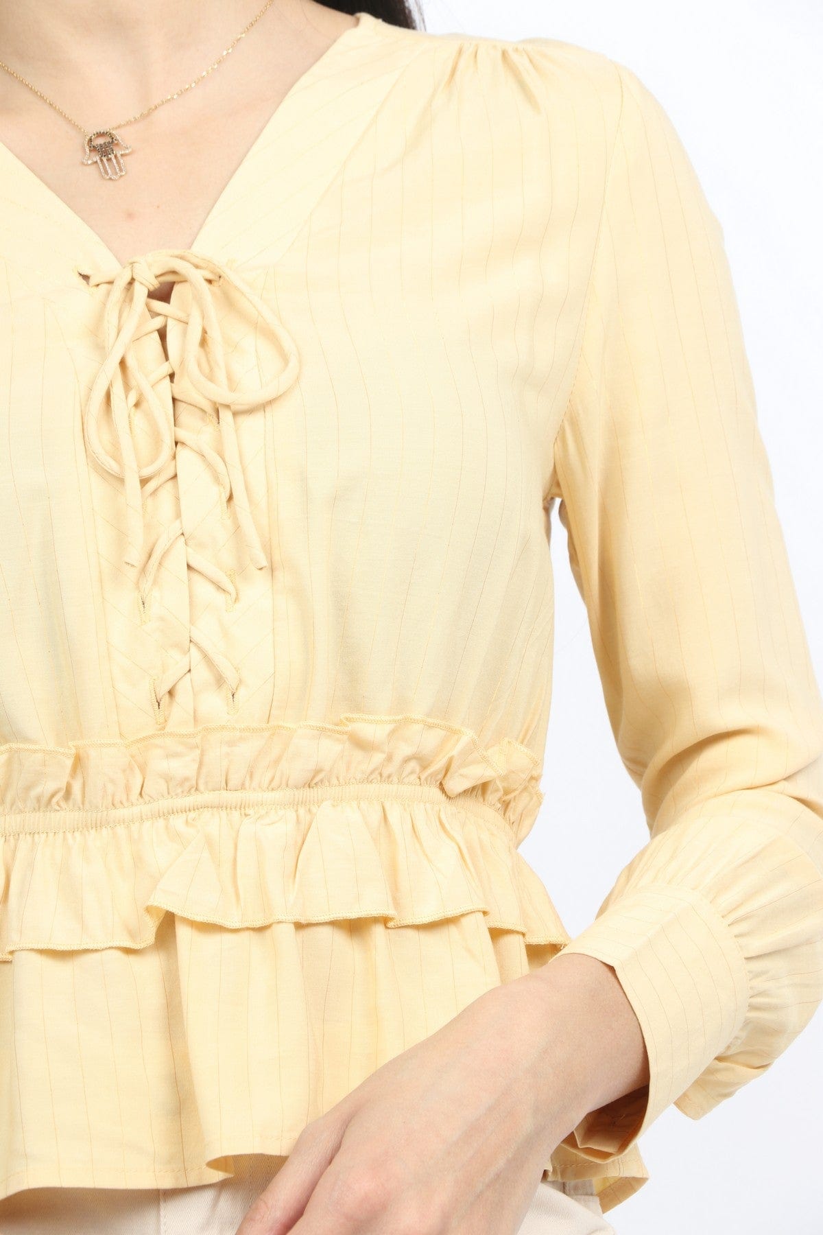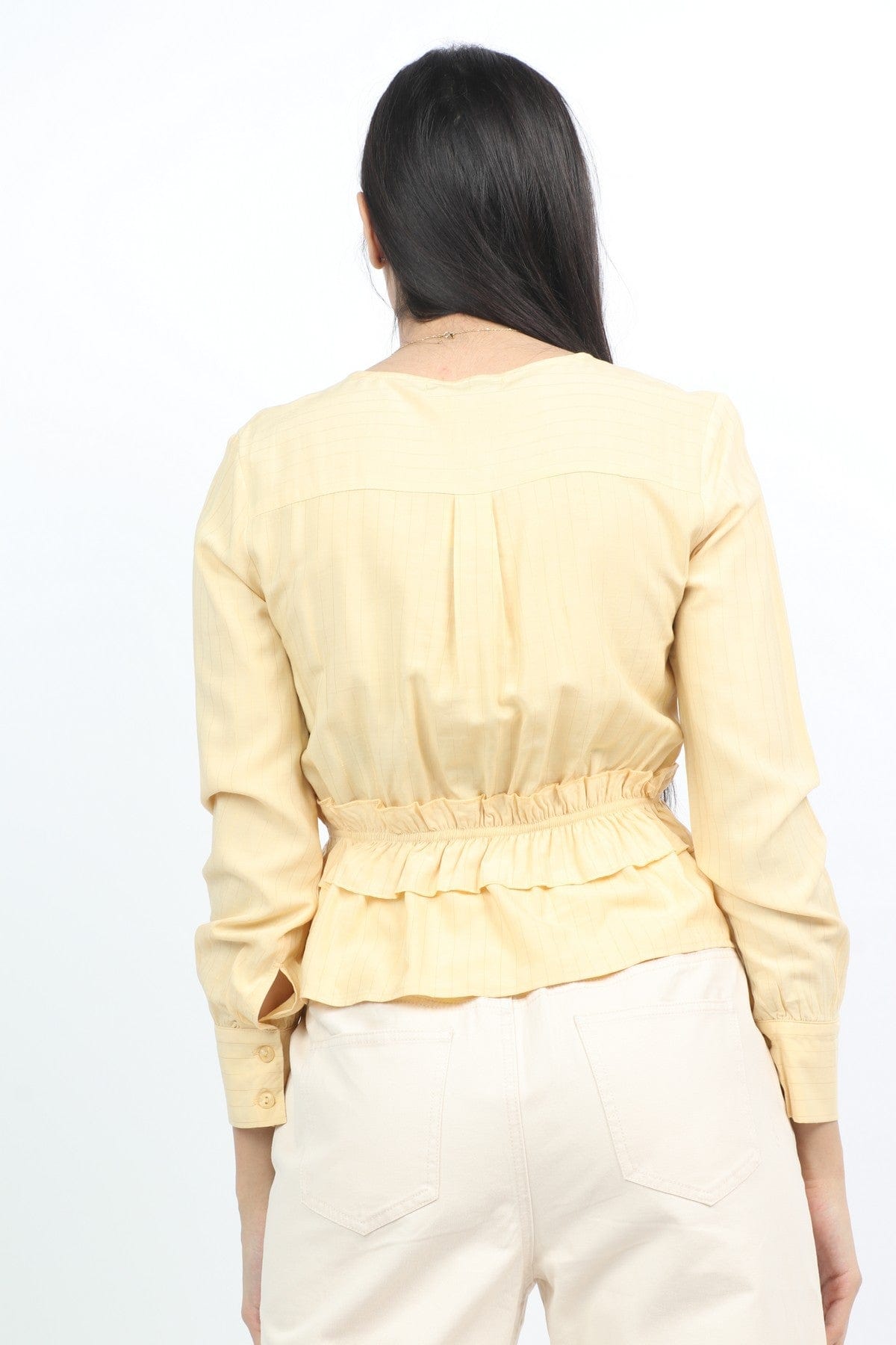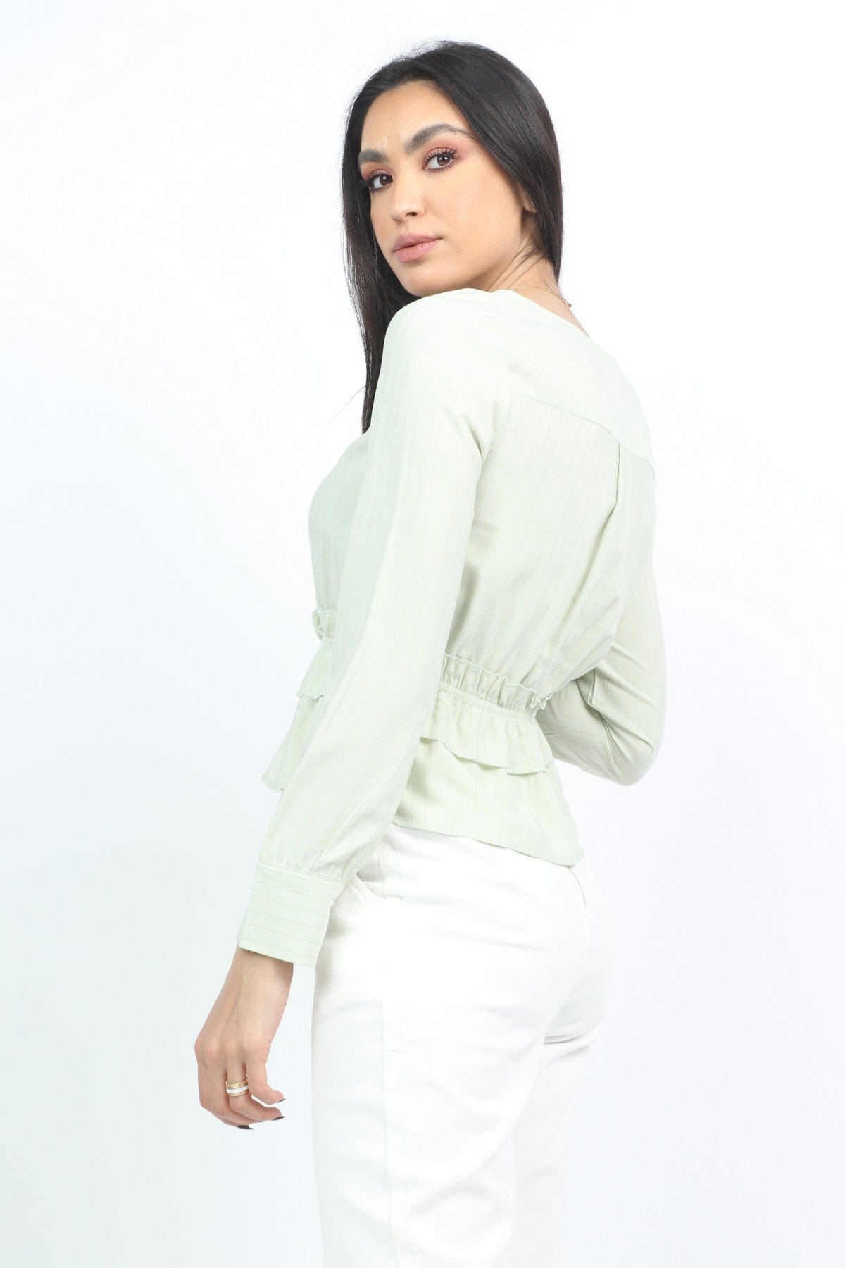 Get a stylish and modern look with a plain long-sleeved blouse with a long drawstring on the chest from Kitschen. This blouse is available in two gorgeous colors: light green and yellow. The long-sleeved blouse and a long tie strap at the chest add a feminine touch to the look. Style it with jeans or a skirt for a casual look. Get now a plain long-sleeved blouse with a long tie on the chest from Fashion Saudi Arabia and get ready to shine with your own elegance. Order now and enjoy the most beautiful fashion from Fashion Saudi Arabia. Product Number: 07-0804