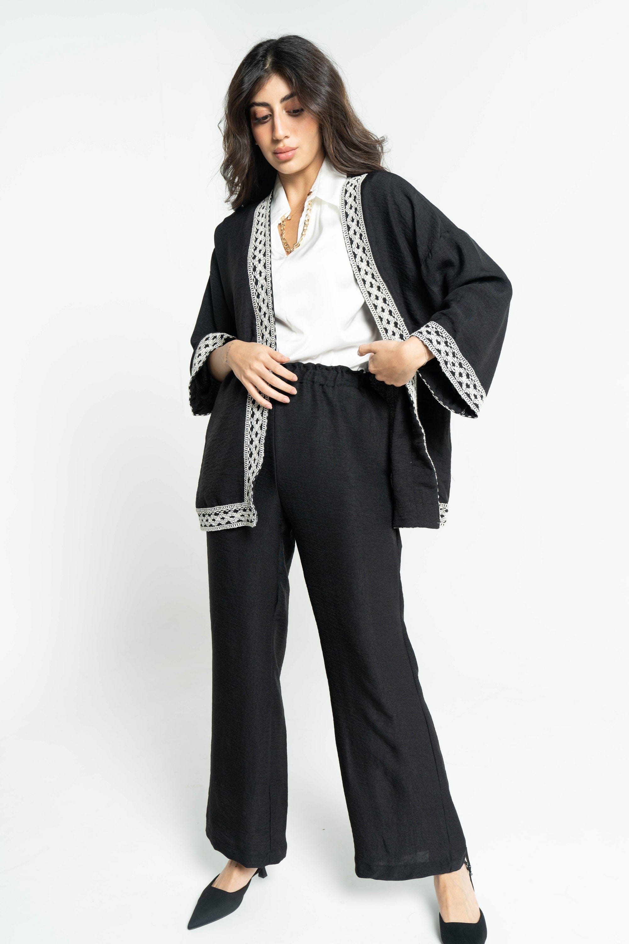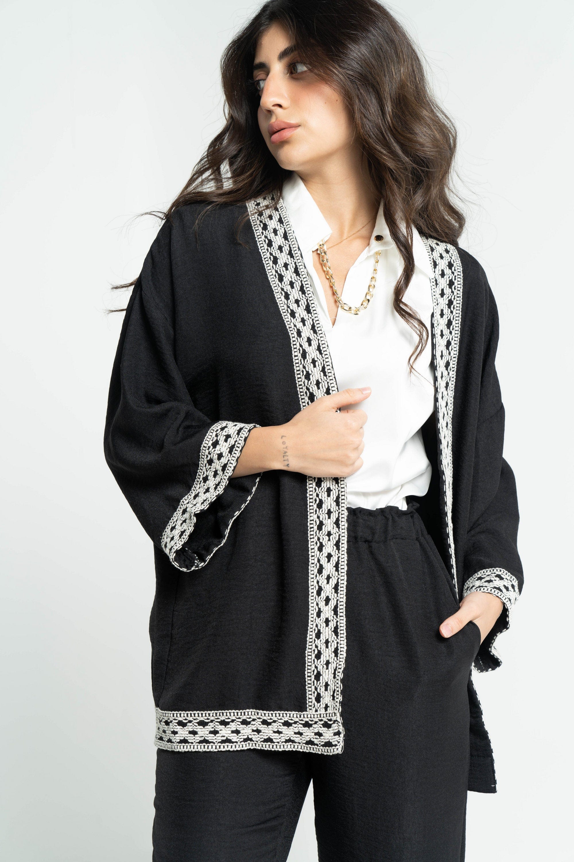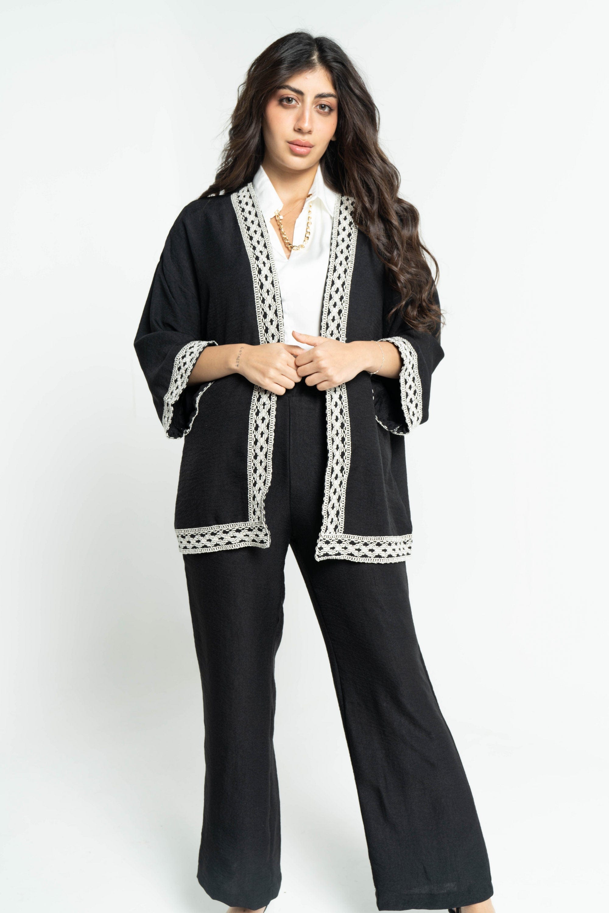 Wrap yourself in elegance with the Embroidered Women's Long Sleeve Kimono by DalyDress. This stunning piece combines comfort and style, featuring beautiful embroidery that adds a touch of artistry to your outfit. Crafted from soft, breathable fabric, it drapes beautifully over any ensemble, making it perfect for both casual outings and special occasions. The long sleeves offer a chic silhouette, while the intricate designs reflect your unique style. Don't miss out on this versatile wardrobe essential. Order now through Fashion Saudi and redefine your fashion statement! Product Number: 9083