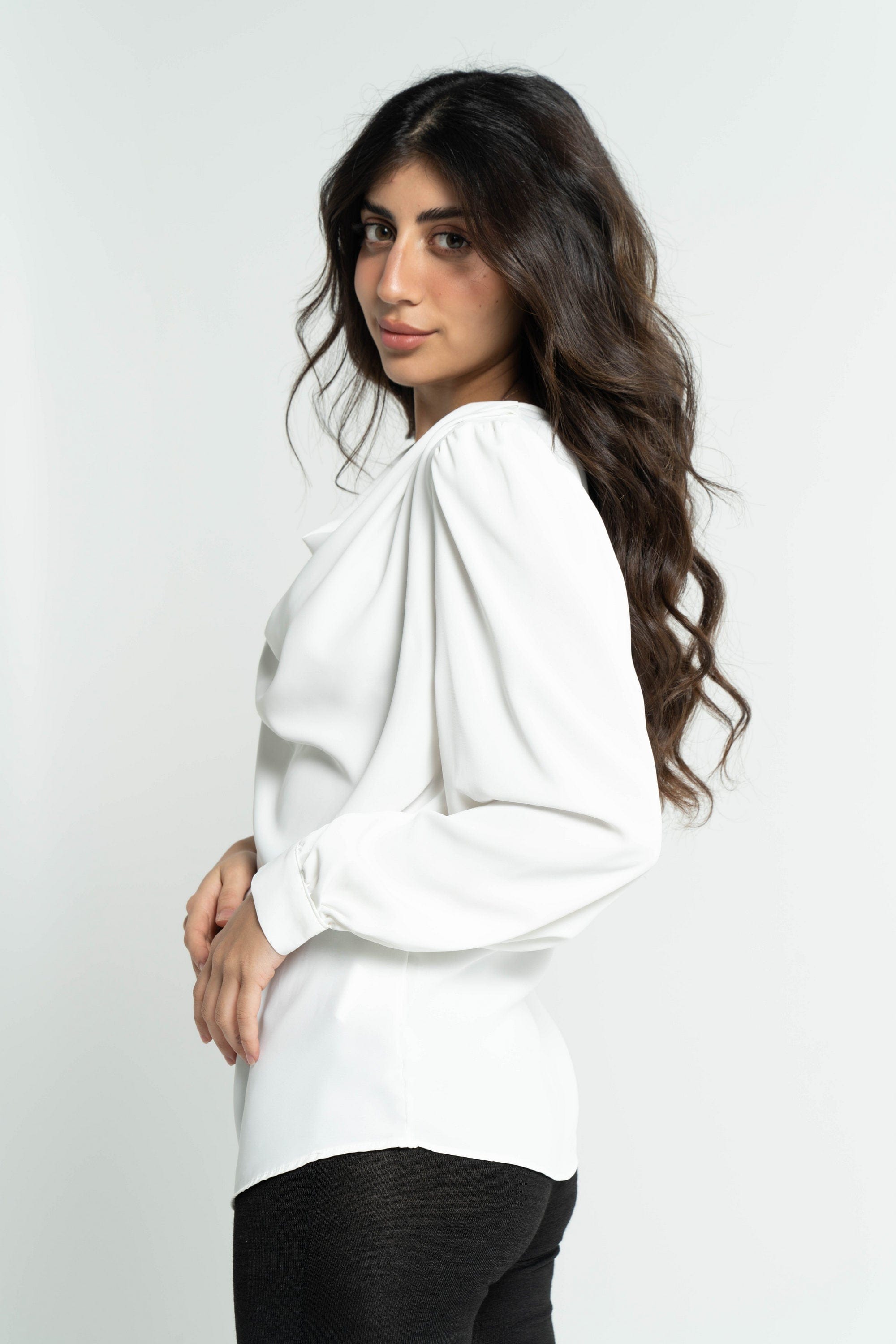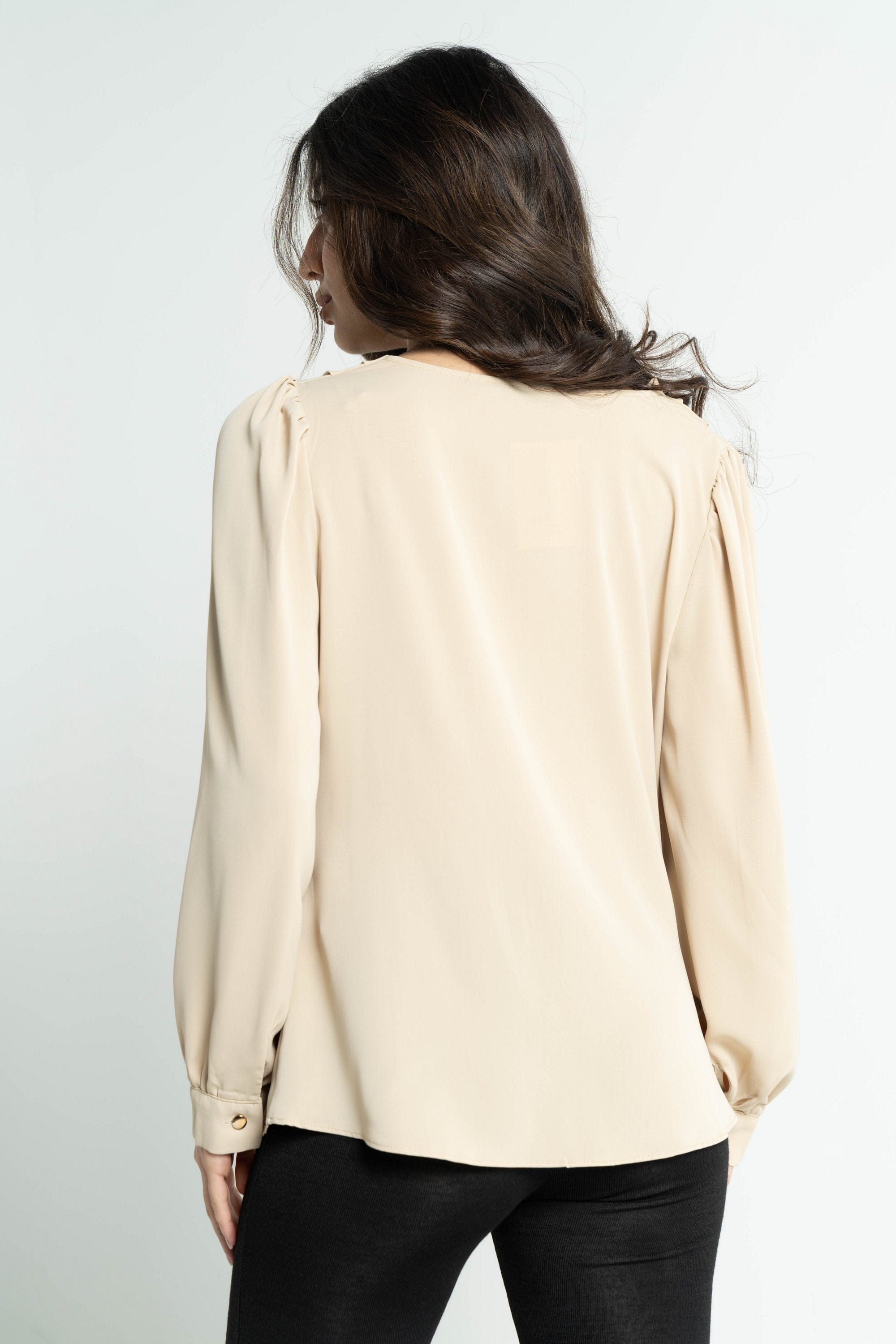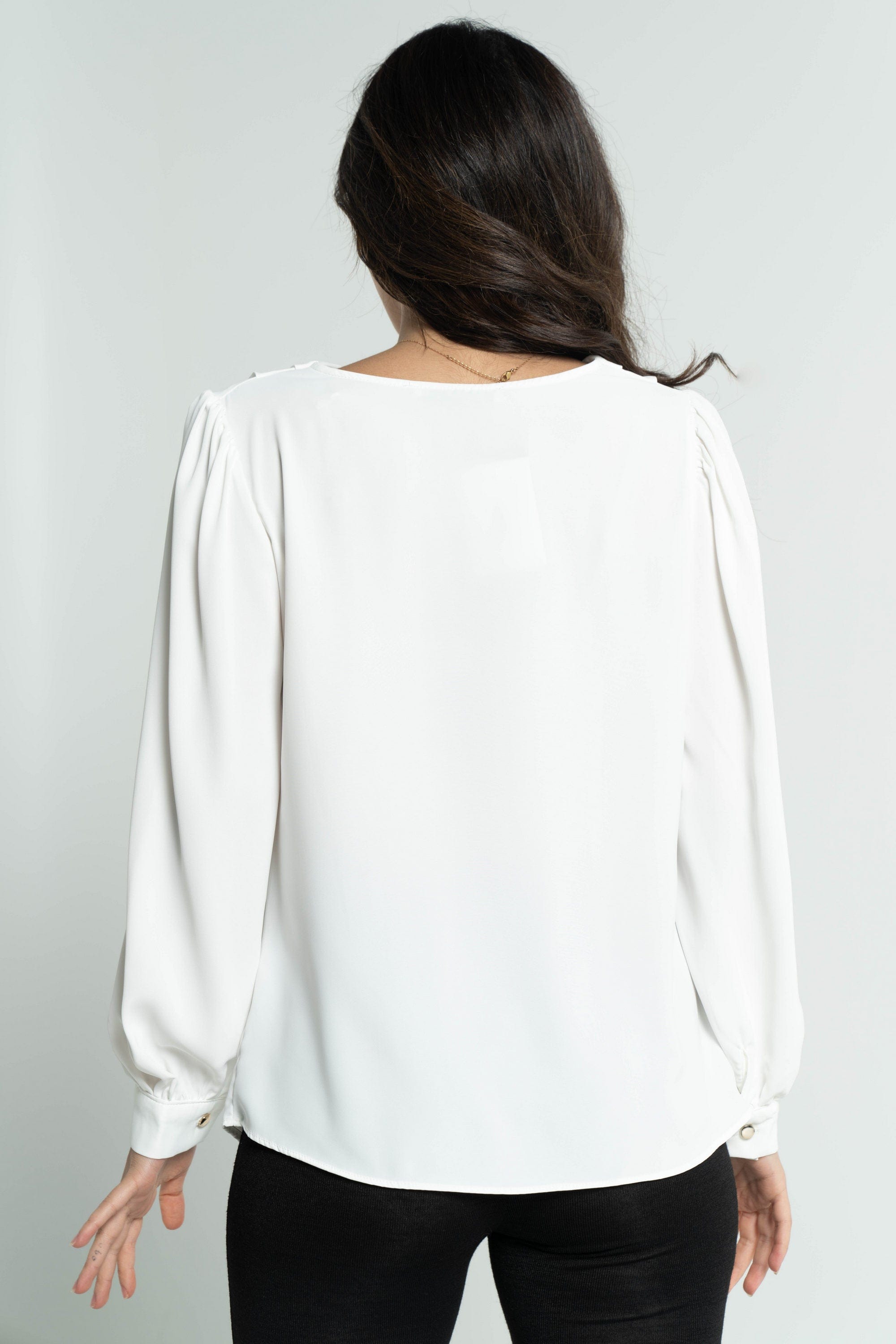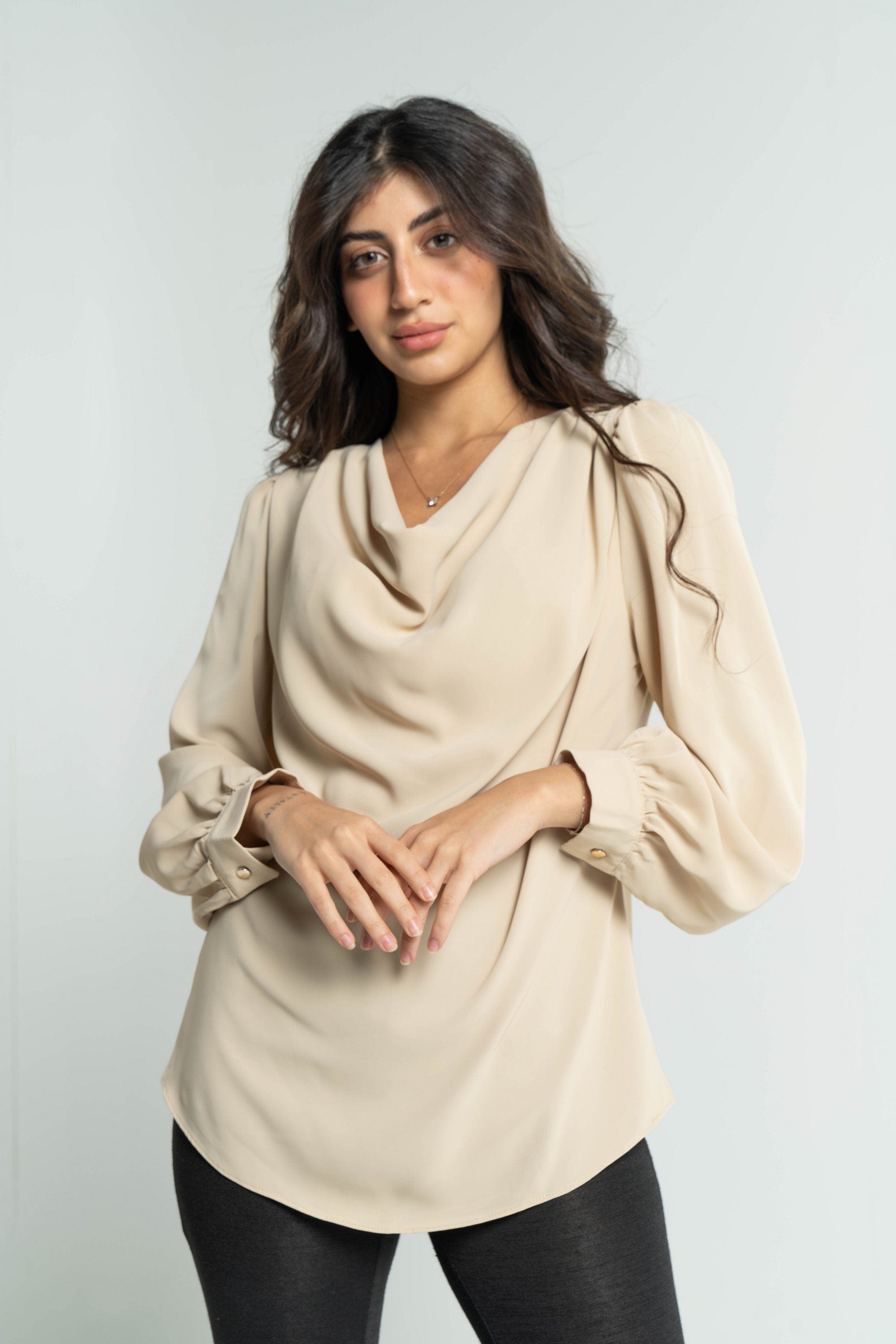 Get ready to shine with a plain women's blouse with long sleeves from DalyDress. This blouse is available in three gorgeous colors: black, beige and white. The design of the blouse is simple and elegant at the same time, making it the perfect choice for your everyday look. The long sleeves add a touch of elegance and femininity. Pair it with pants or skirts for a complete and stylish look for all occasions. Get now a plain women's blouse with long sleeves of DalyDress Add a touch of elegance to your look. Order it now via Fashion KSA and get ready to shine in your own style. Product ID: 9122