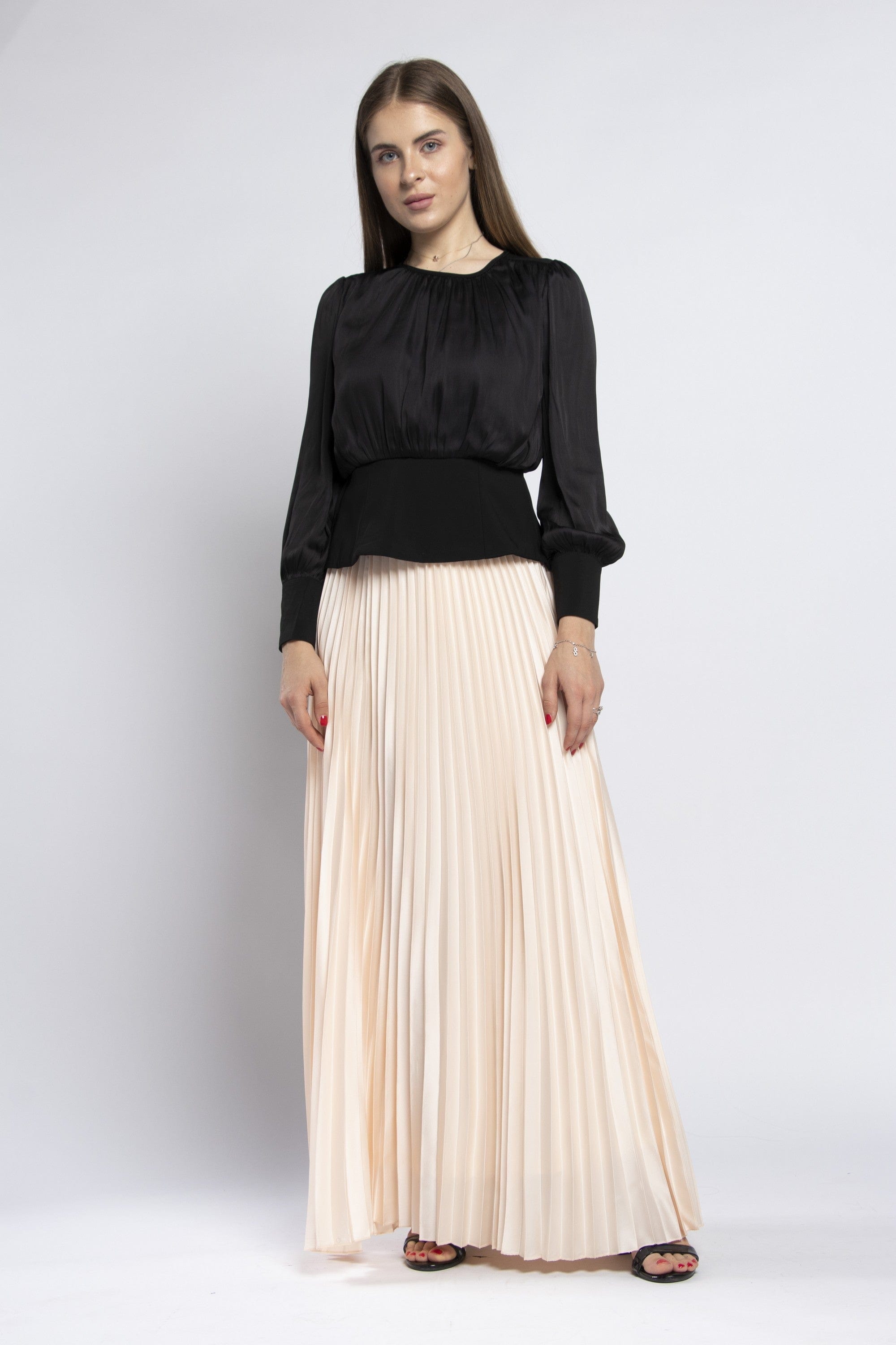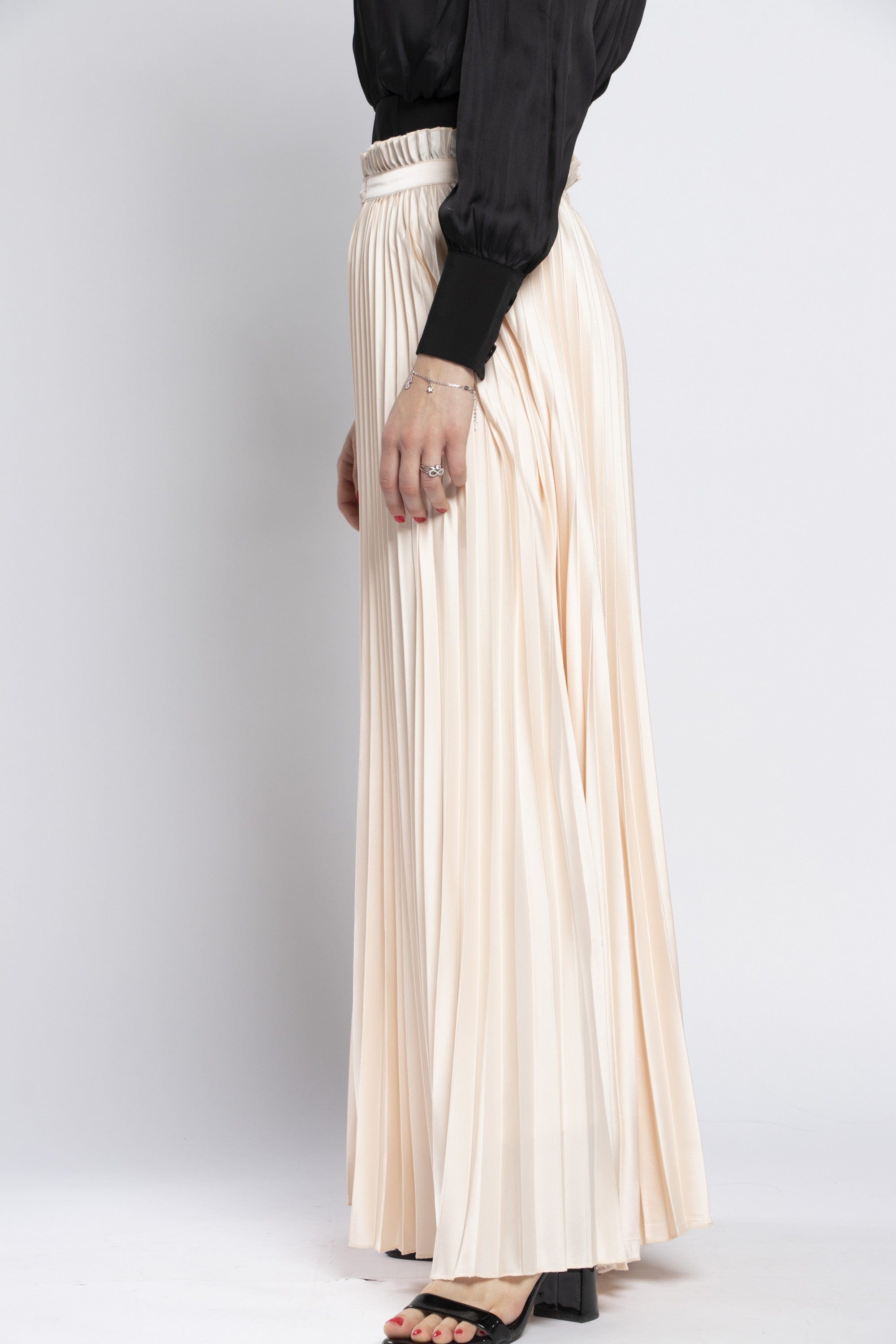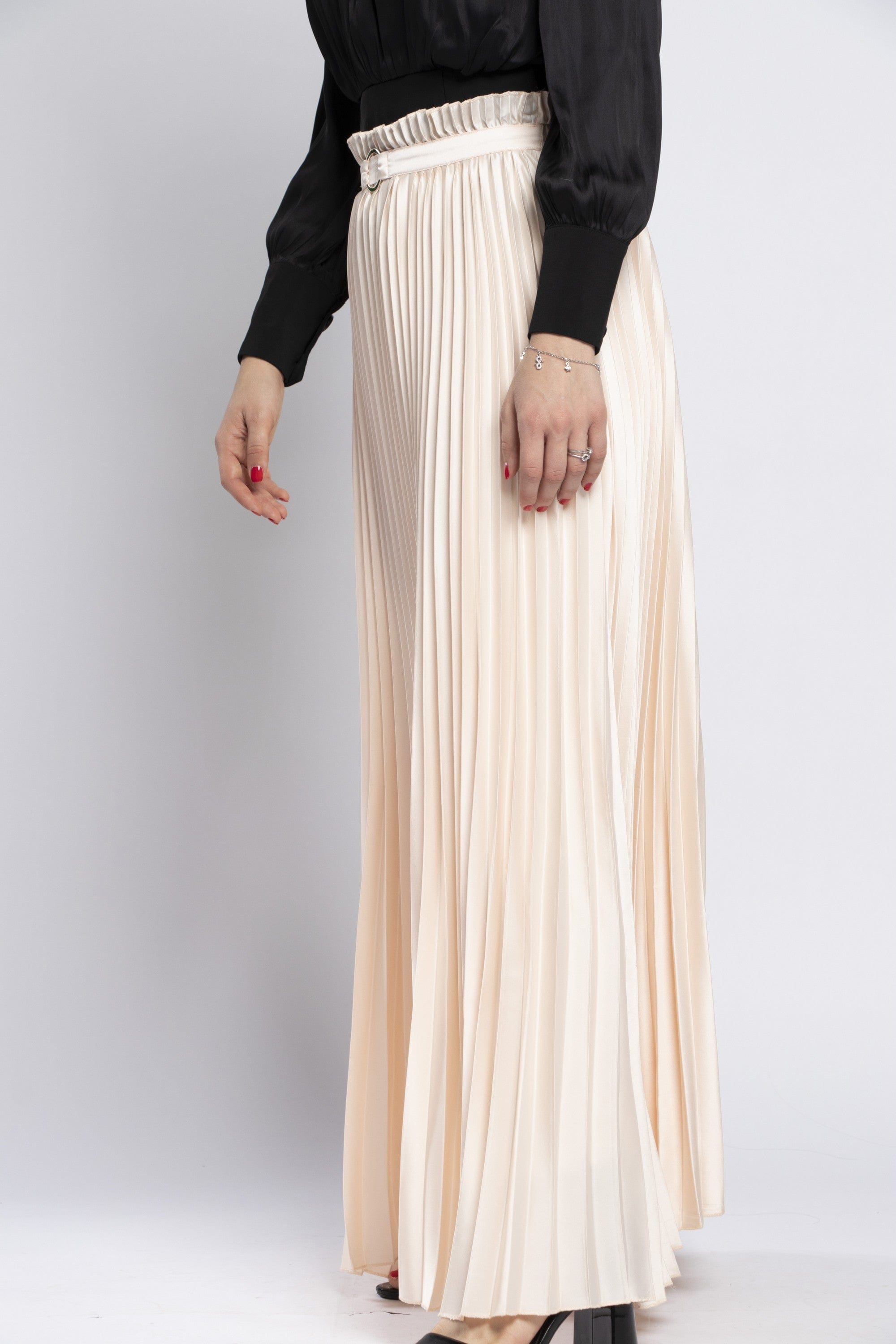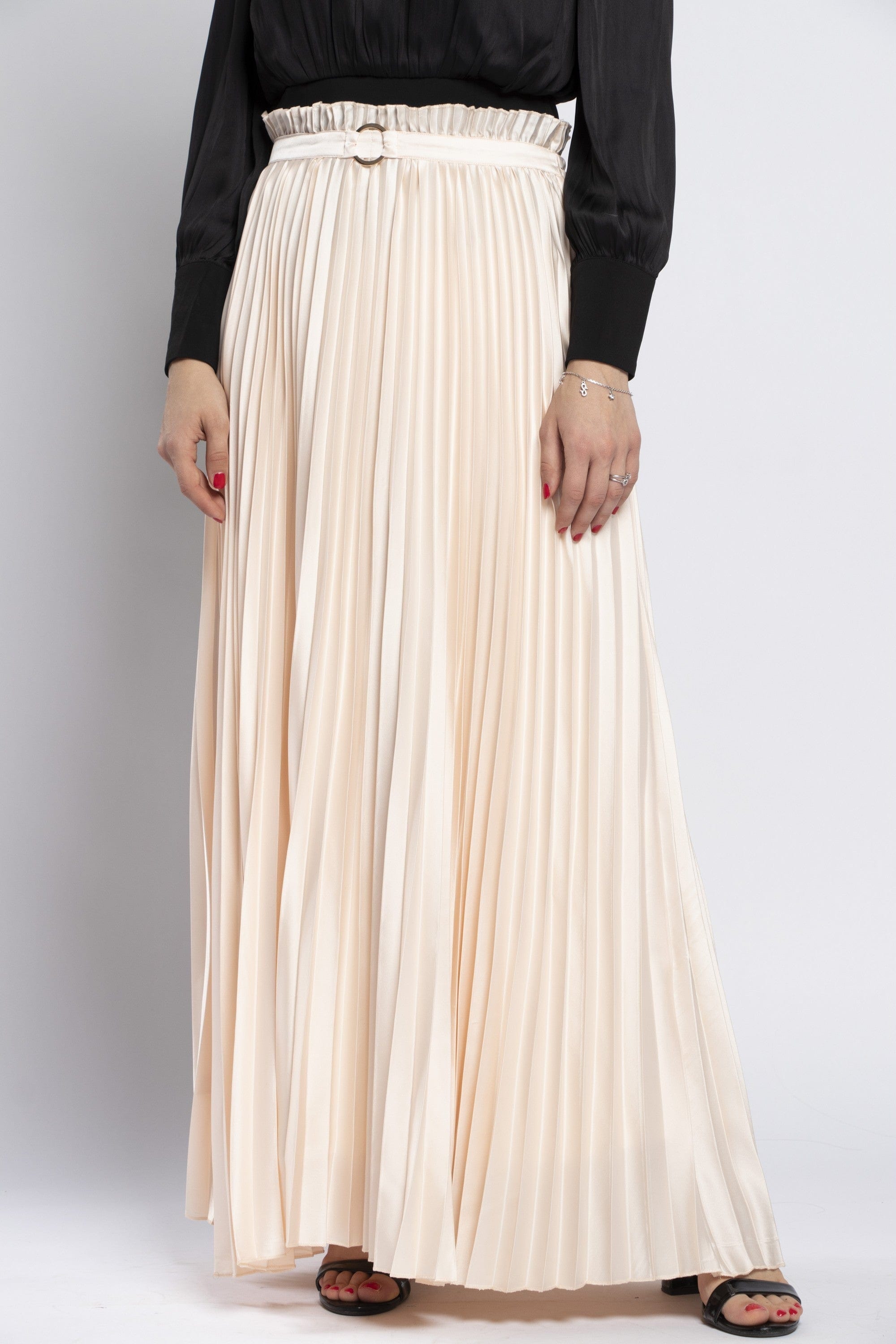 Solid Pleated Maxi Skirt
