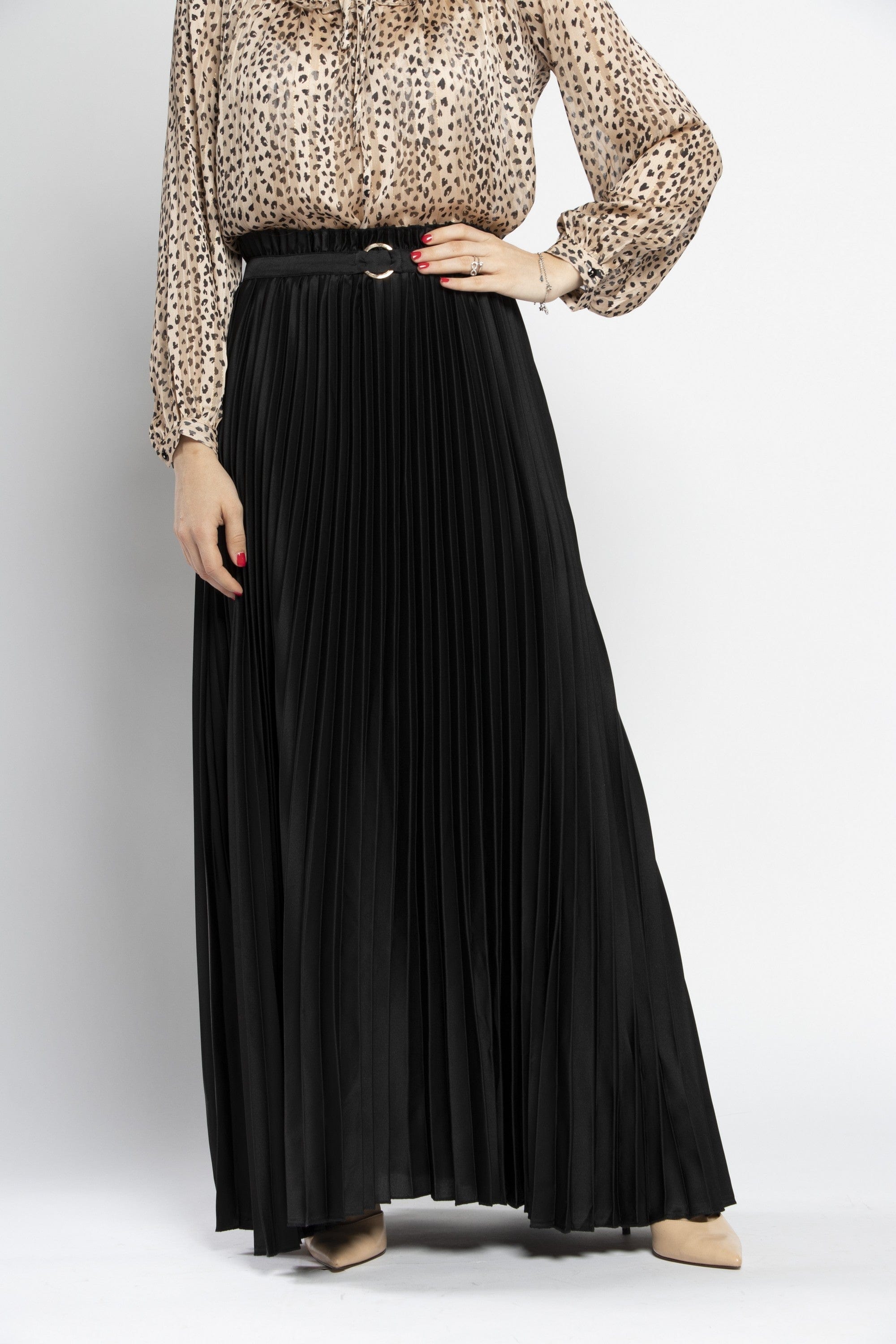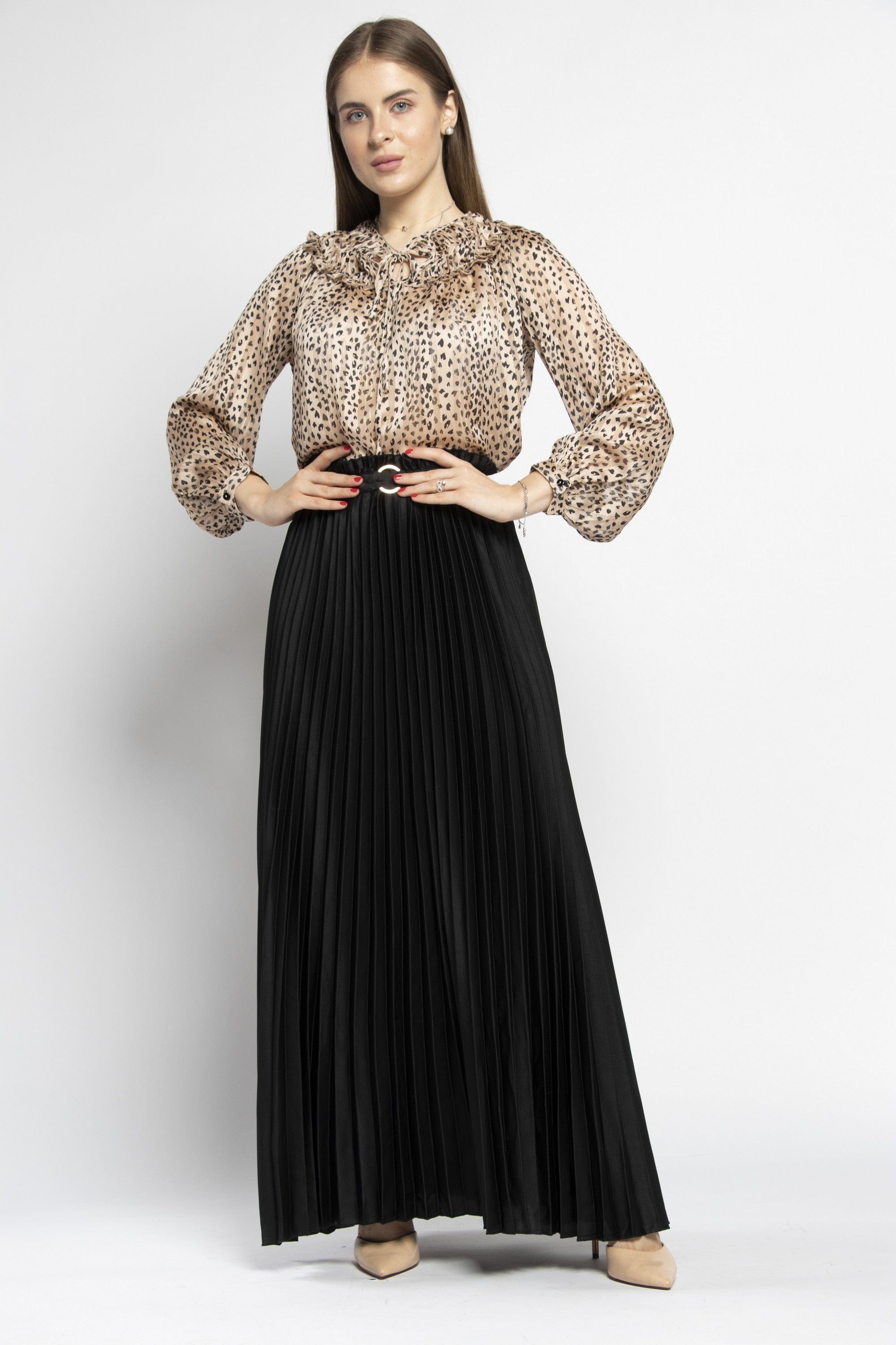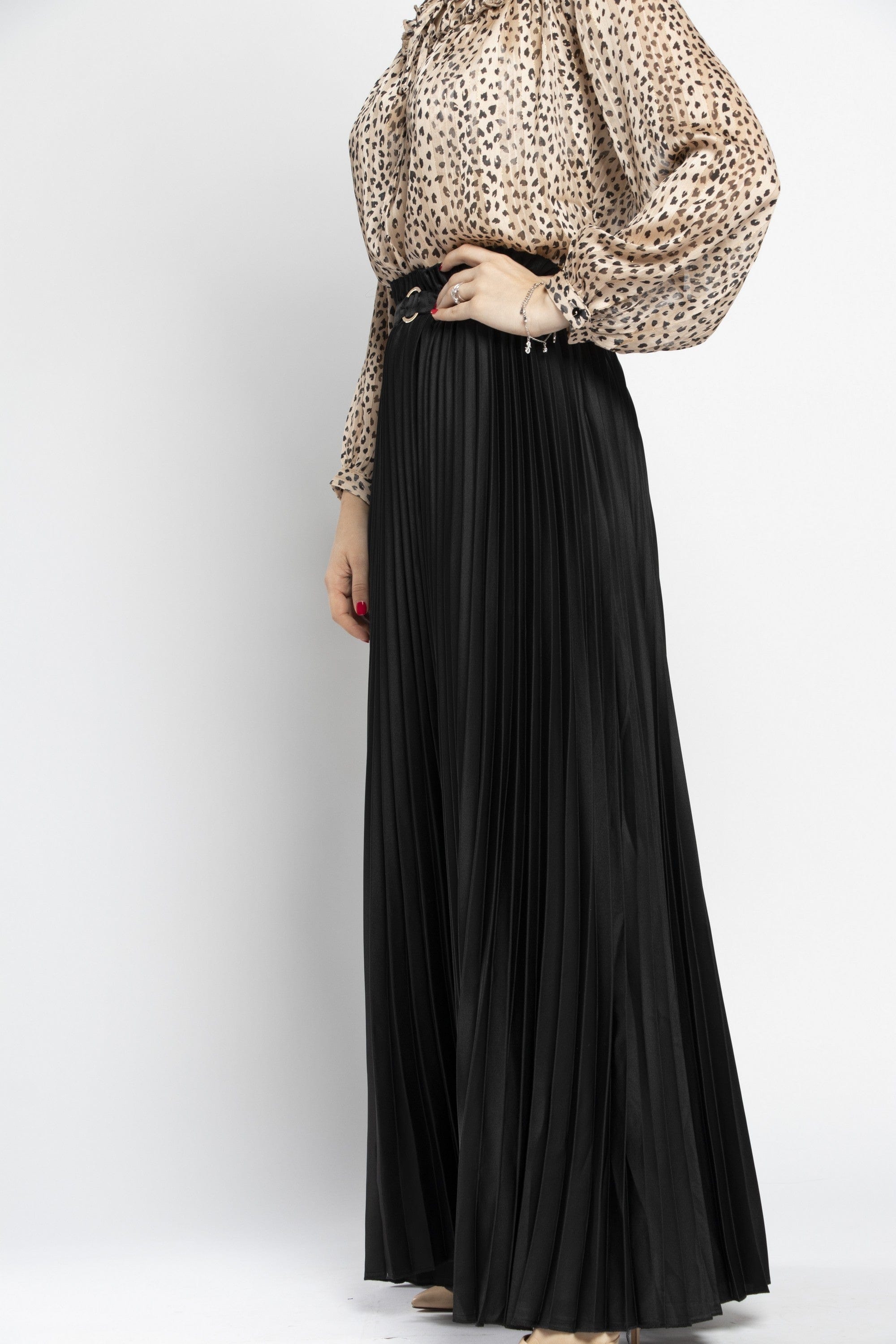Enjoy unparalleled elegance with a long Polis skirt decorated with a women's belt from the Saudi Fashion. This skirt is characterized by its elegant and feminine design, as it comes with a long story that gives a touch of sophistication and beauty to your look. It comes with a women's belt that increases its beauty and enhances your elegance. Made of high -quality material to ensure comfort and durability throughout the day. Available in beige and black colors to choose what suits your taste and your favorite look. Ask now and get a long Polis skirt decorated with a women's belt from Nichii And prepare for a charming and distinctive look. Product number: CH015-21Q203