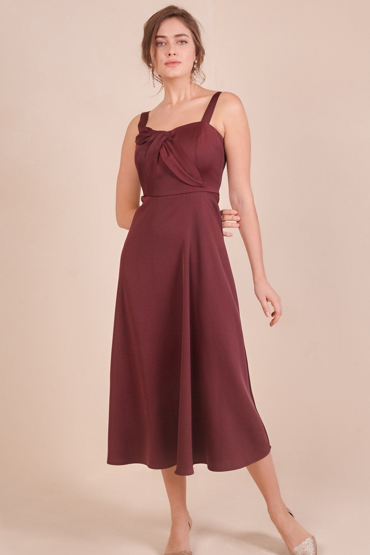 Solid Knee-Length Dress With Straps