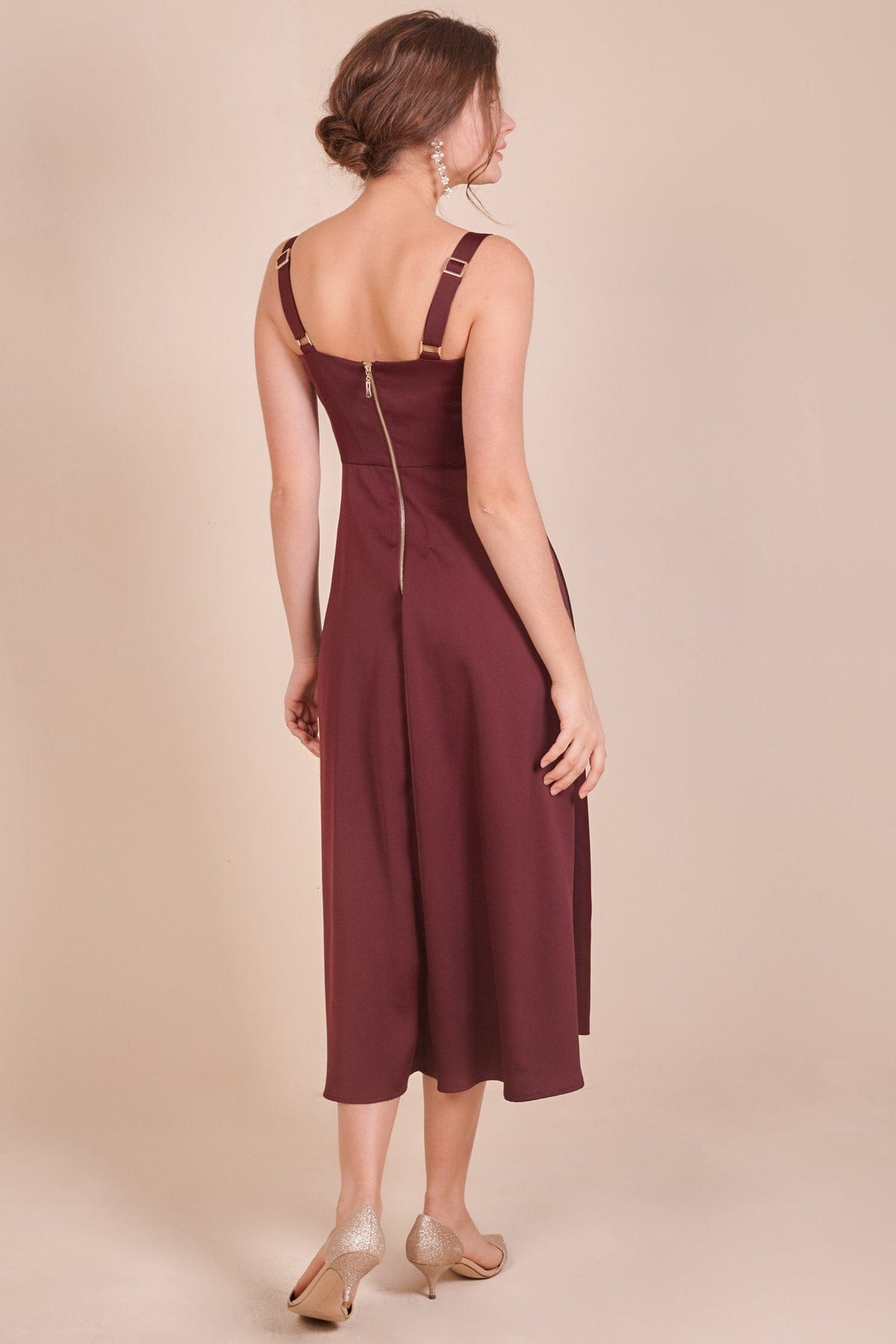 Crafted for the modern woman, the Solid Knee-Length Dress with Straps is a timeless addition to any wardrobe. This elegant dress features a flattering knee-length cut that complements all body types. The adjustable straps provide a comfortable fit, making it perfect for both casual outings and special occasions. Available in a variety of chic colors, this dress can easily be styled with your favorite accessories. Product Number: d750019
