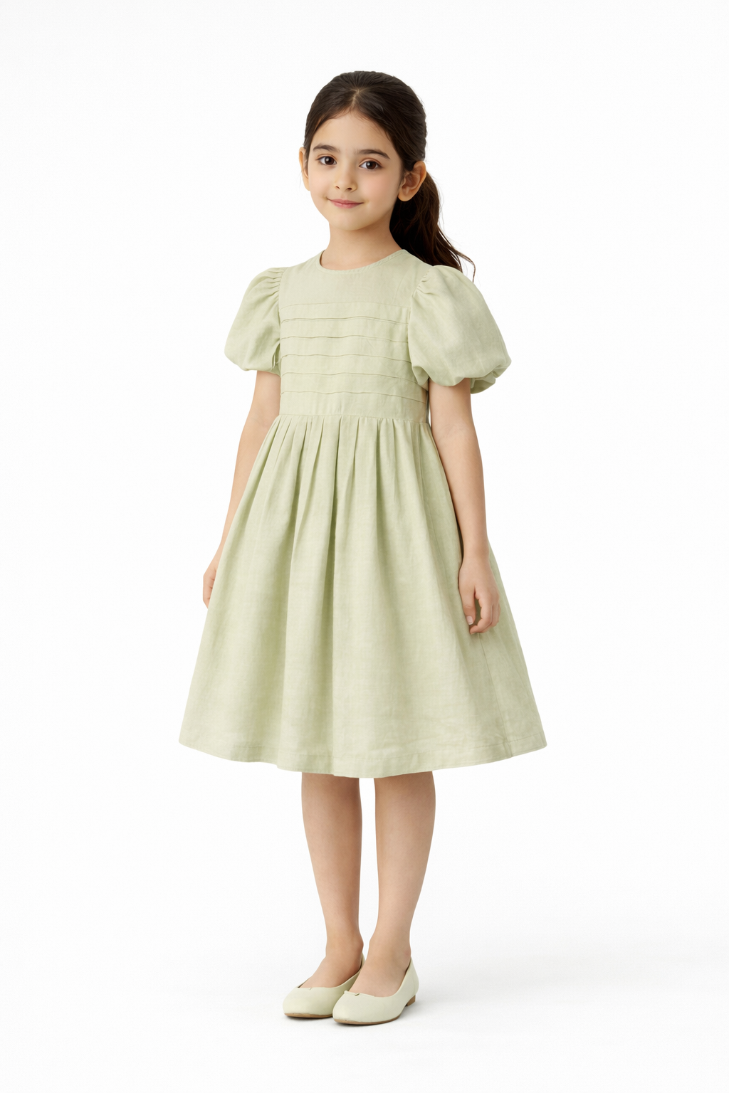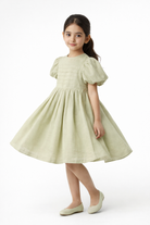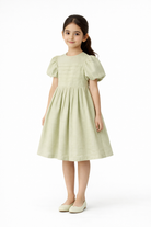 Girls Solid Pleated Dress