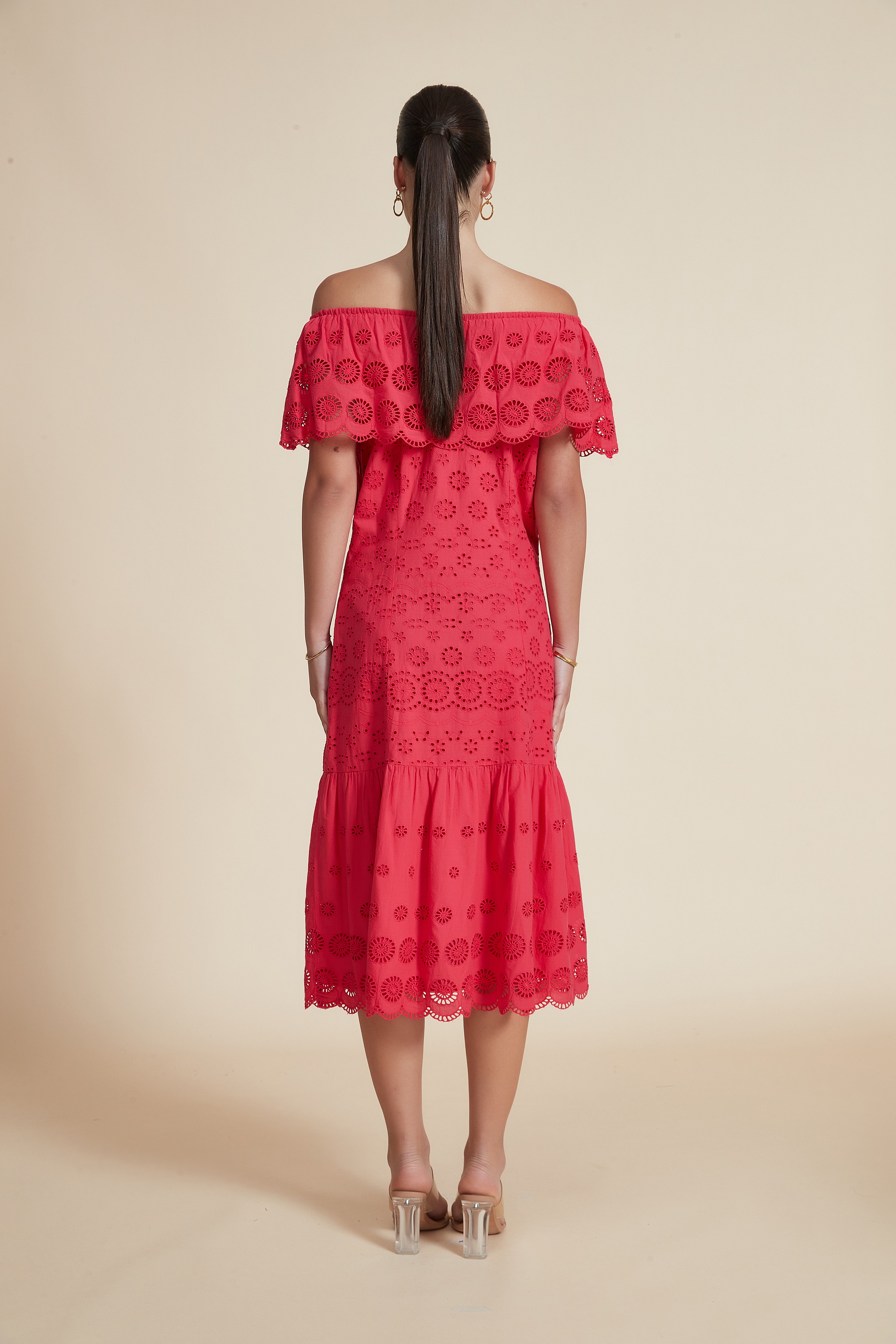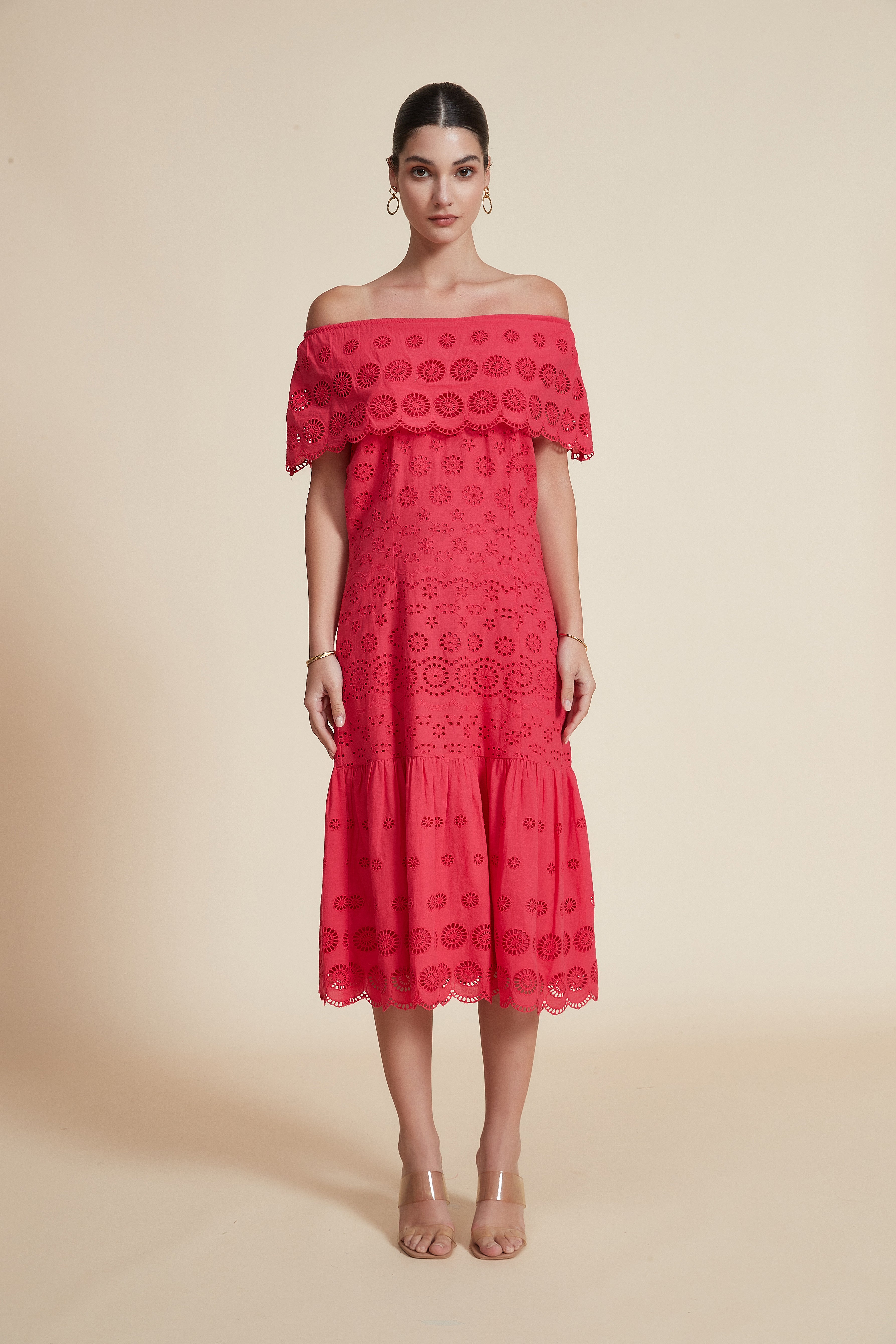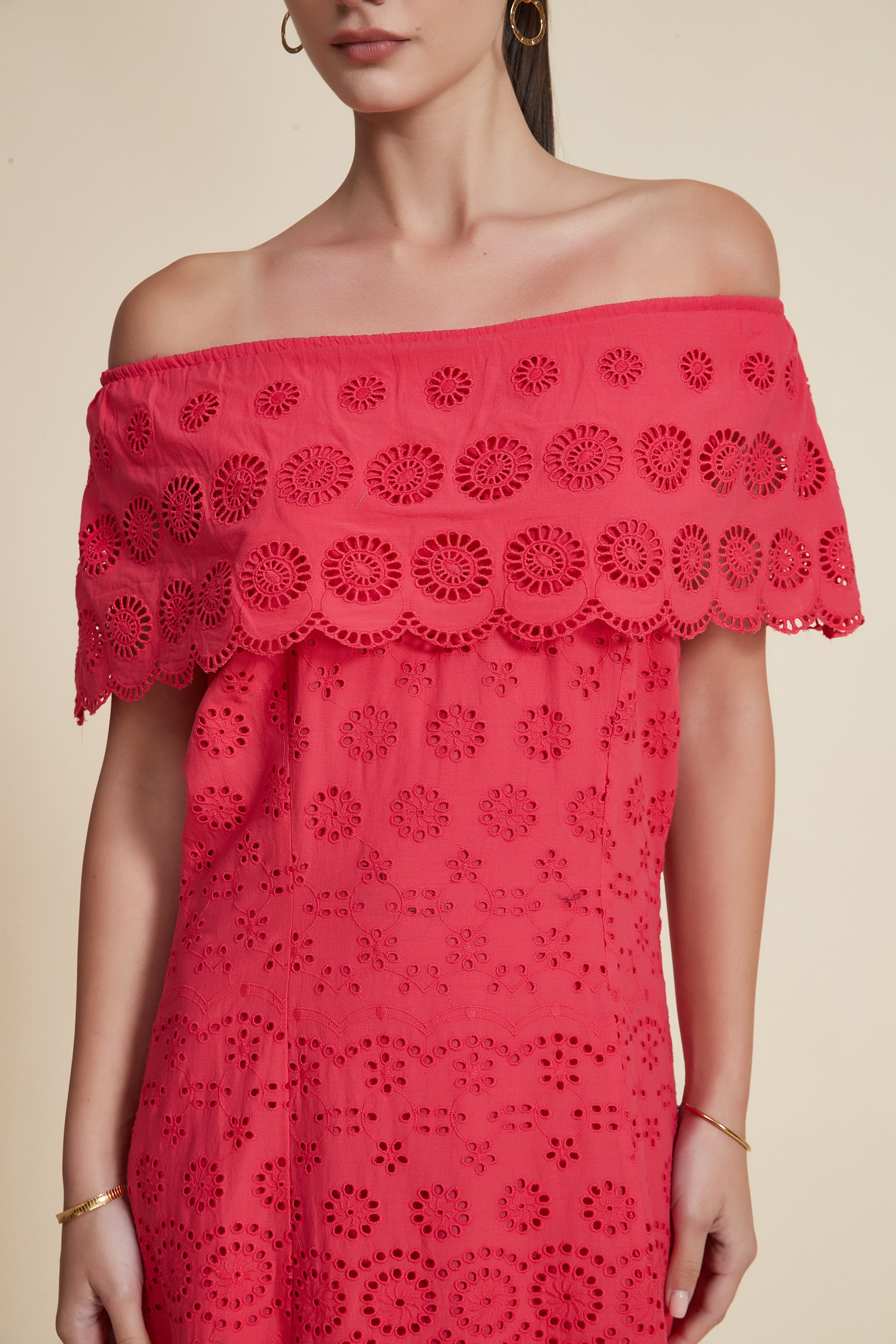 This red patterned midi off-shoulder dress is a summer-ready statement that balances feminine flair with everyday comfort. Cut in a flattering A-line silhouette from breathable 100% cotton, the sleeveless off-shoulder neckline beautifully frames the shoulders while the regular fit skims the waist and falls to a versatile midi length for graceful movement. Unlined and medium-weight, the soft cotton feels cool against skin yet holds structure for day-long wear. Pocketless and beltless for a clean, effortless profile, it’s ideal for casual outings, weekend brunches or relaxed holiday looks. Style it with flats or dress it up for evening and make it a go-to in your seasonal rotation. Discover this Yola design on Fashion SA and add a red patterned classic to your wardrobe—shop now with confidence.