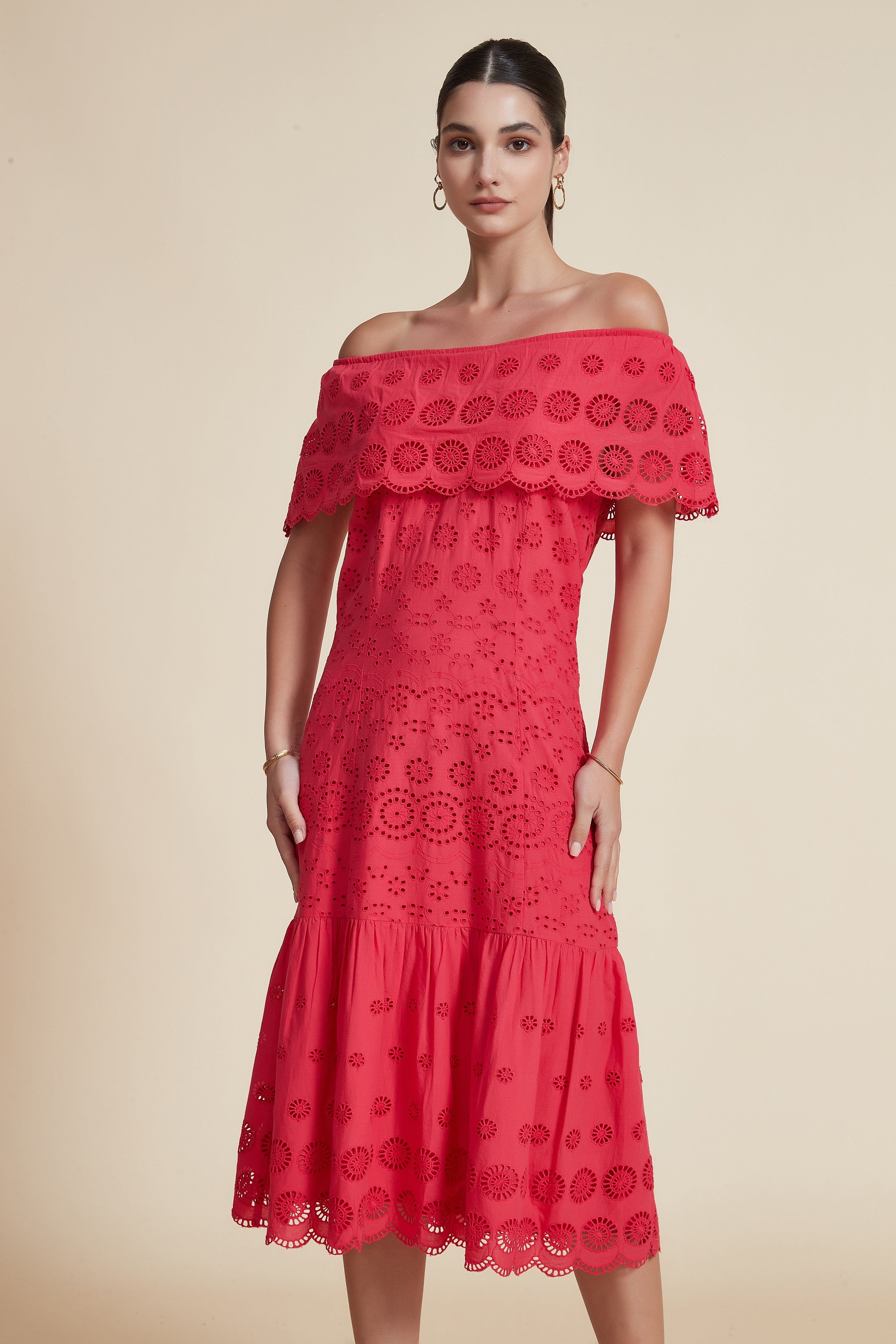 Solid Off-Shoulder Midi Dress
