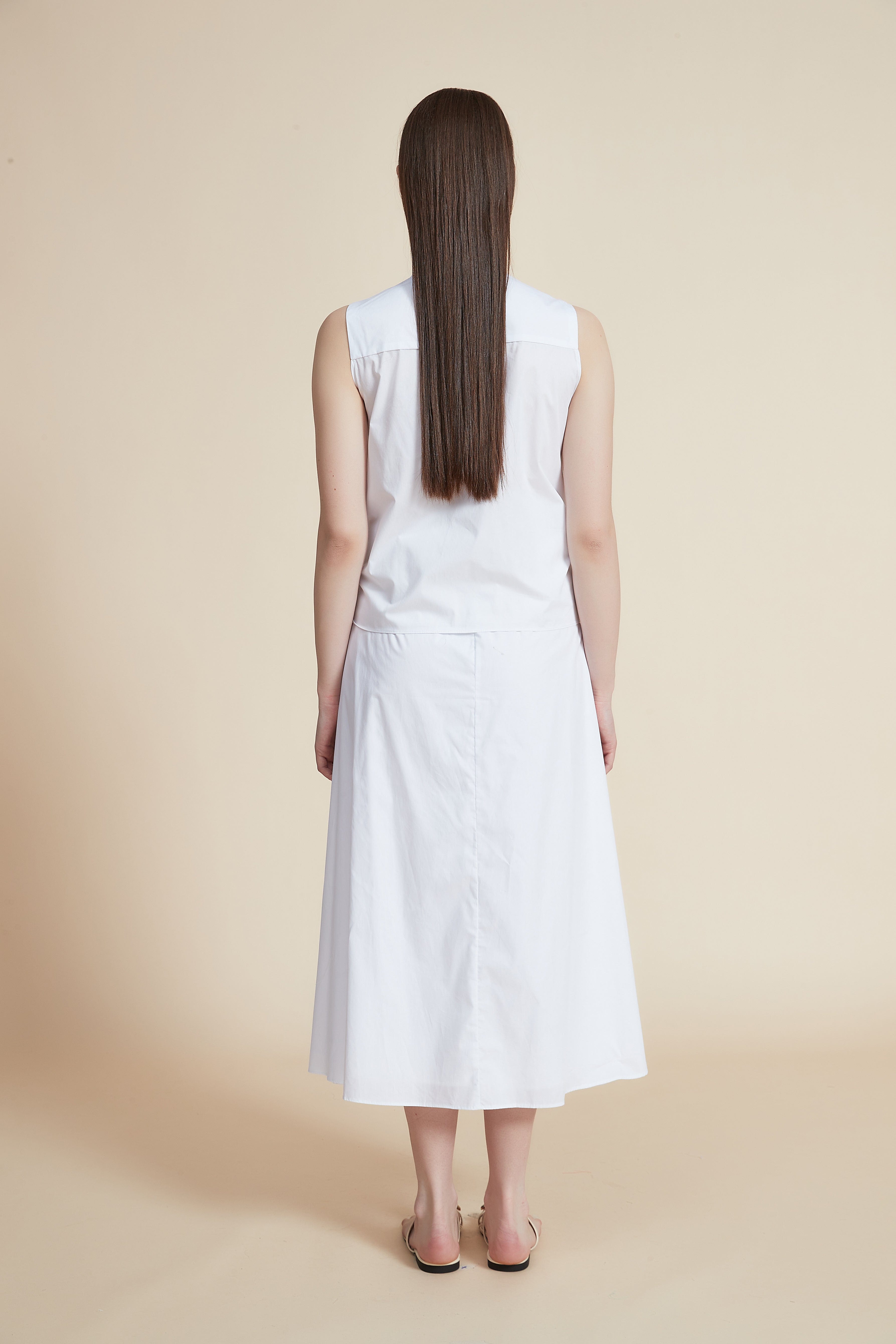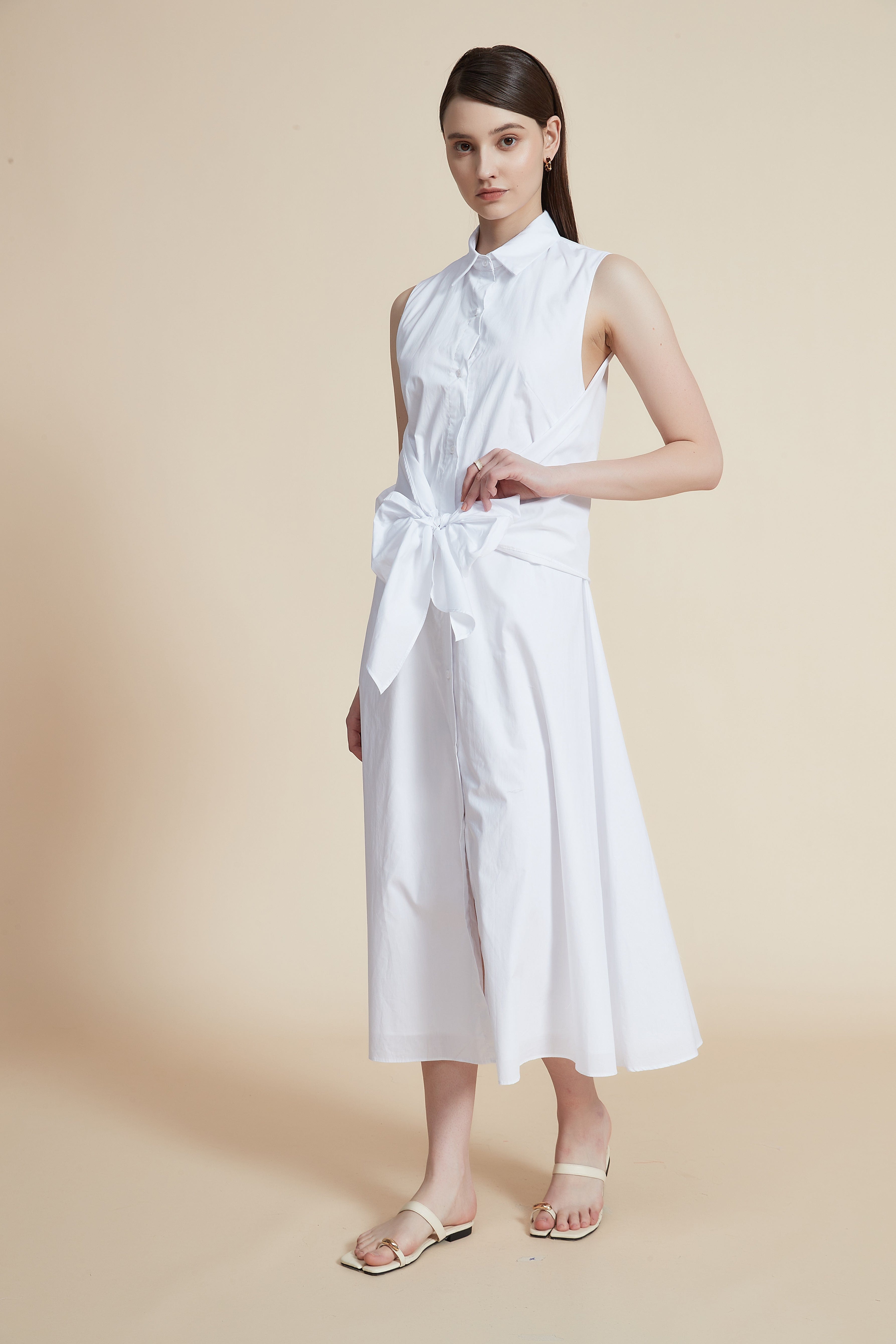 This effortless white midi dress is a wardrobe essential that balances clean tailoring with breezy comfort—perfect for casual, day-to-night dressing. Cut in a flattering A-line silhouette from 100% cotton, the sleeveless, unlined design keeps you cool while the medium-weight fabric offers structure without heaviness. A neat shirt collar and button-front closure give crisp polish, while the included belt defines the waist for a feminine, adjustable fit. The solid white, pocketless profile makes this regular-fit style elegantly versatile: wear it to weekend brunches, casual office days or holiday strolls. The midi length provides graceful coverage and easy layering across seasons. Designed for modern living, this piece embodies understated sophistication — shop the White Solid Midi Belted Dress at Fashion SA and elevate everyday styling with timeless ease.