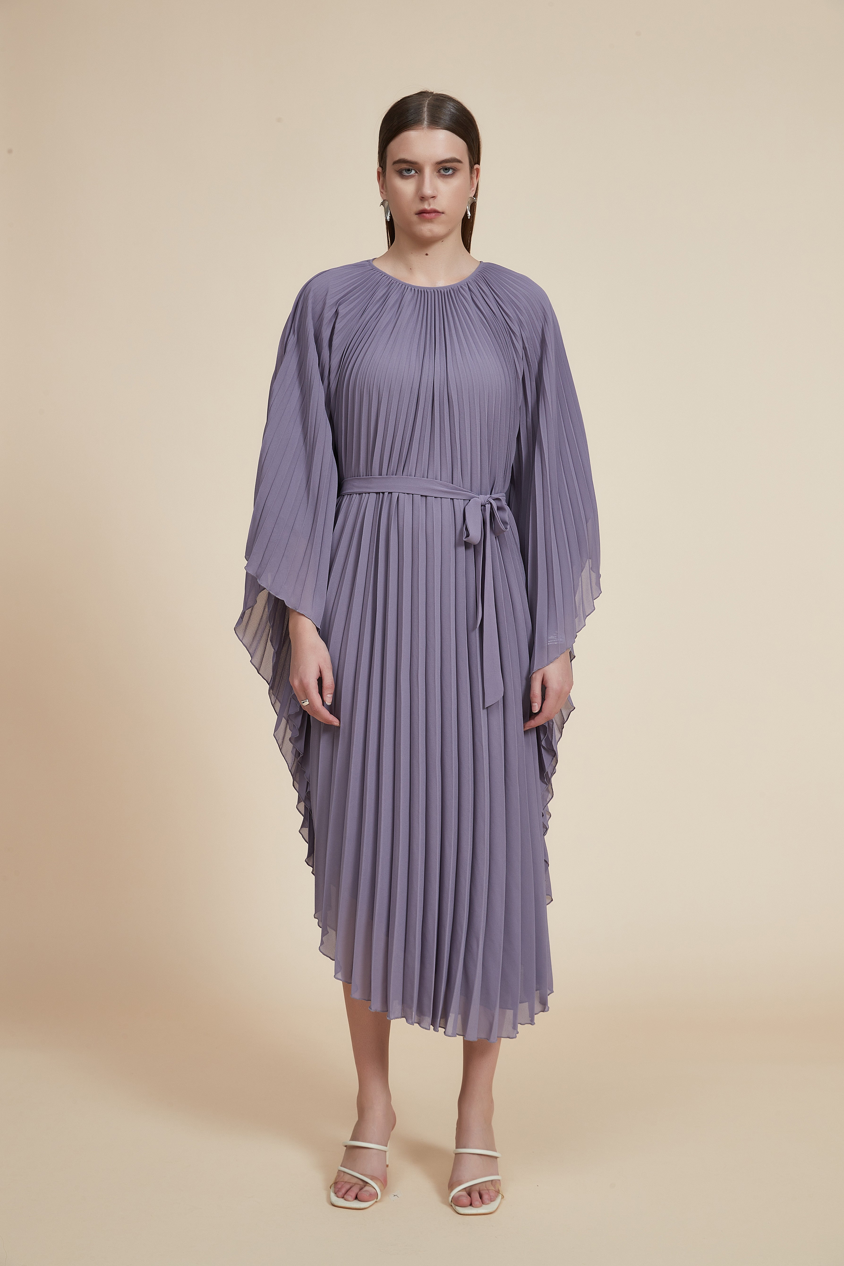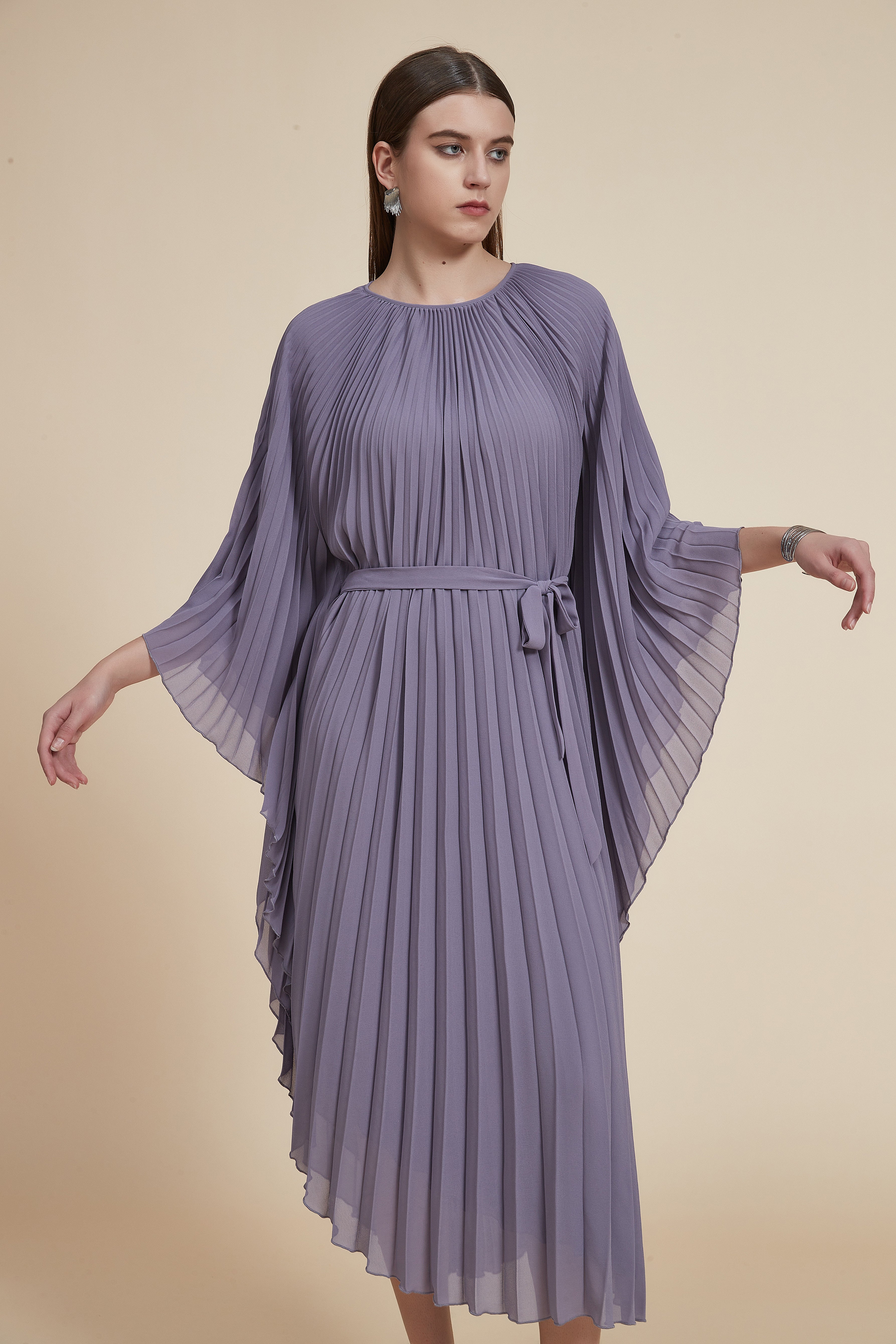 Effortless and refined, this Purple Solid Midi Belted Dress delivers timeless polish with everyday comfort. Crafted in a medium-weight, easy-care fabric, the A-line silhouette skims the body in a flattering regular fit while the belted waist defines the shape for instant waistline definition. The plain purple midi length offers versatile coverage, and kimono kol long sleeves provide graceful movement and added coverage for cooler evenings. Unlined and pocketless for a sleek, streamlined look, the dress drapes neatly without bulk and transitions seamlessly from daytime meetings to evening plans. Whether styled with boots for daytime flair or heels and a clutch for after-hours, this piece is a versatile wardrobe staple. Discover it at Fashion SA and add a polished, go-anywhere dress to your collection—shop now.