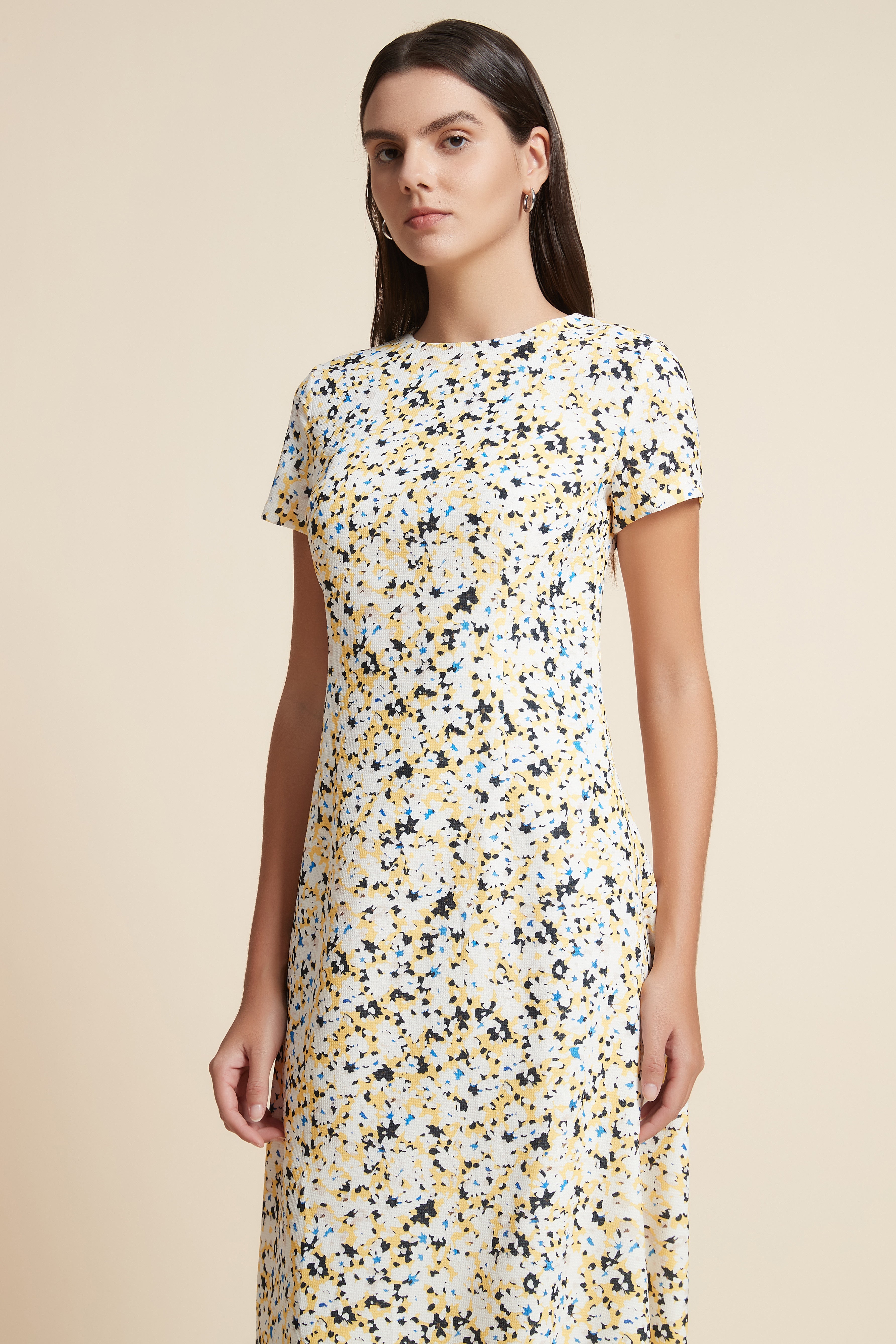Printed Short-Sleeve Midi Dress