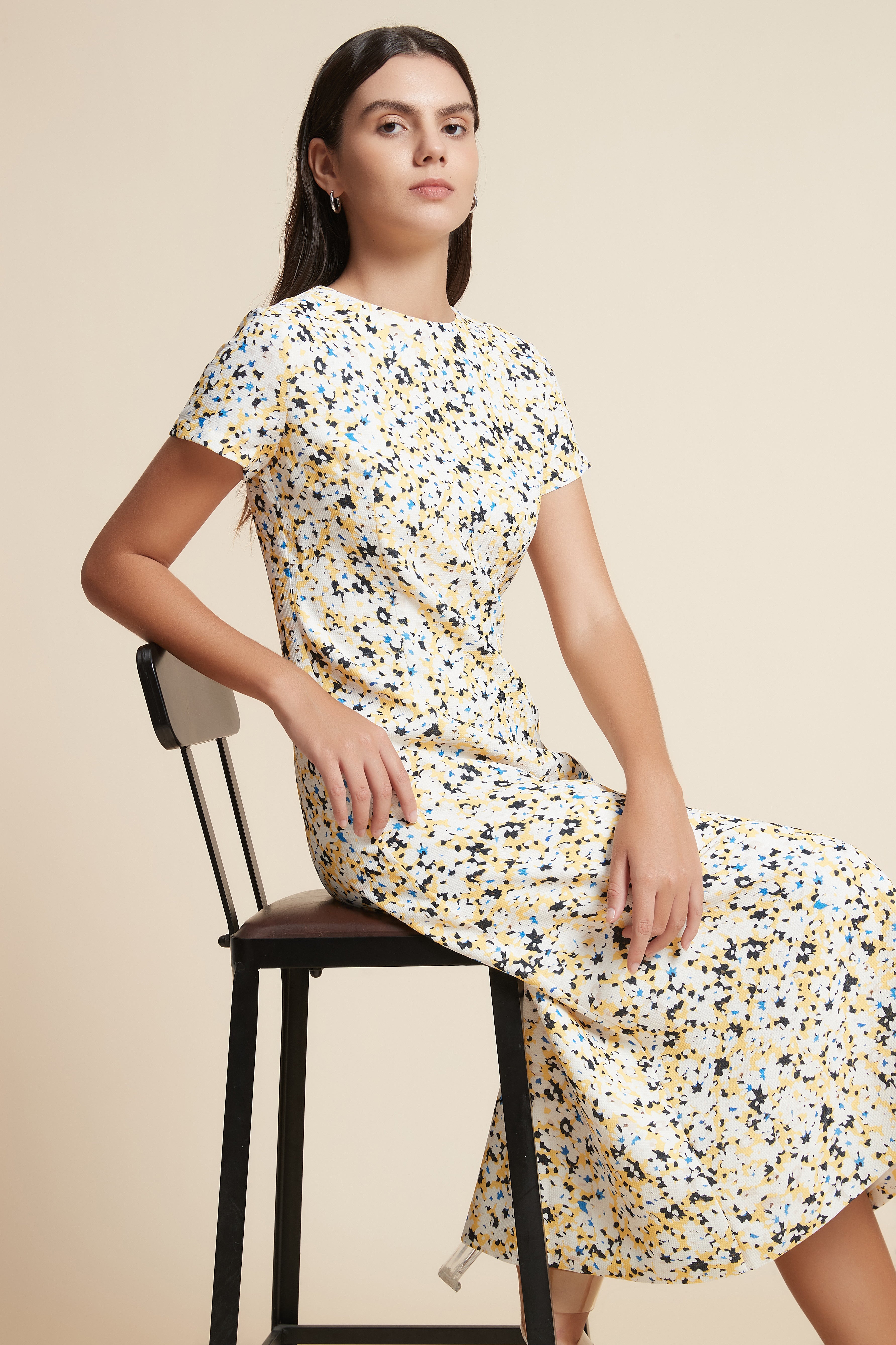 Turn heads in the Multicolor Patterned Midi A-Line Dress — a vibrant wardrobe staple that blends playful print with everyday ease. Crafted in 100% polyester, the wrinkle-resistant fabric keeps the patterned yellow tones bright while offering low-maintenance wear. The flattering A-line silhouette and regular fit skim the body for comfort, while the midi length and short sleeves with a classic round neck create effortless, season-spanning styling. Unlined and pocketless for a lightweight, breathable feel, the medium-thickness knit sits perfectly between structure and movement. Ideal for casual weekends, brunches or city strolls, this dress reflects Fashion SA’s Cool & Comfort persona. Add it to your rotation for instant, versatile polish — shop now at Fashion SA and embrace colorful, easygoing style.