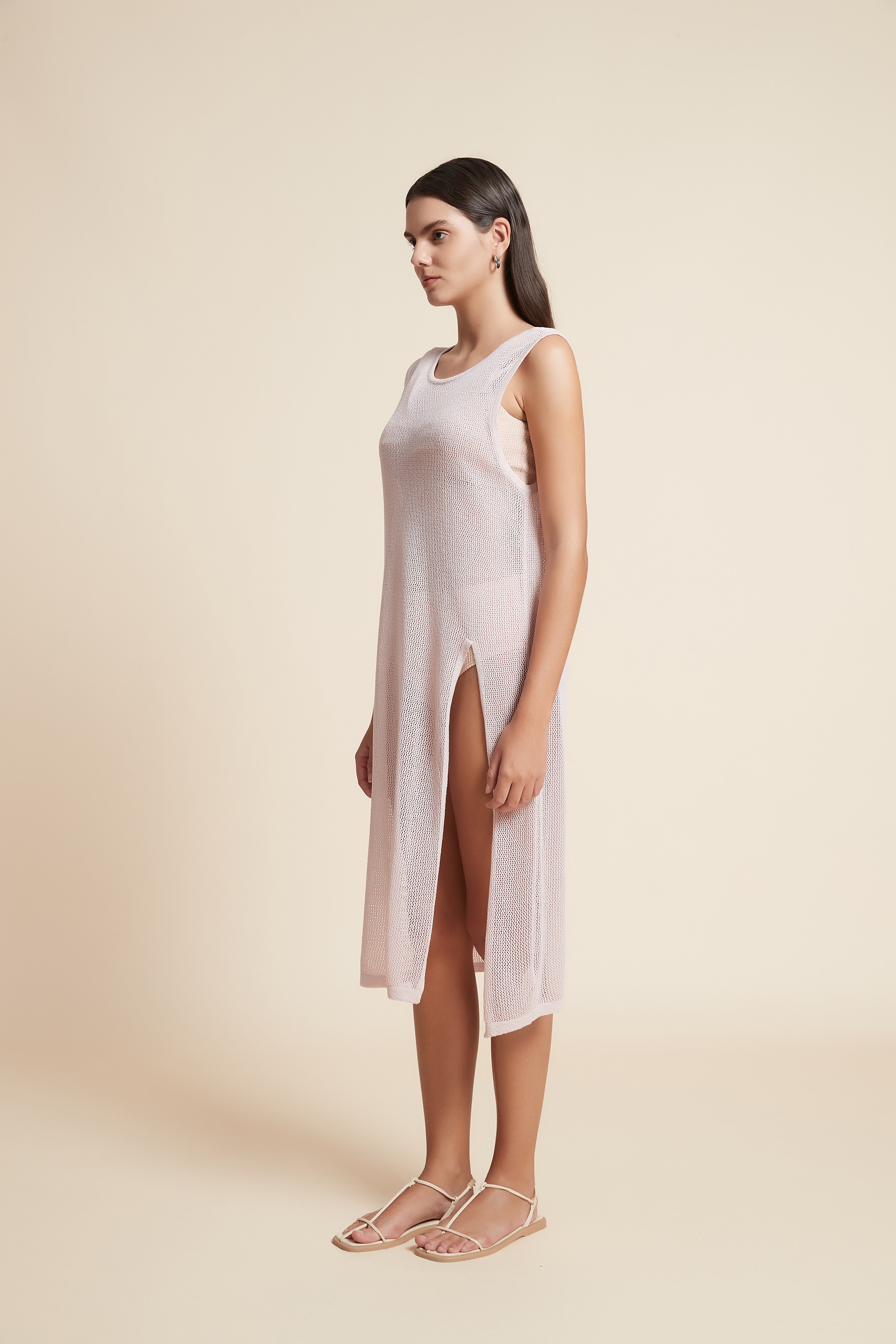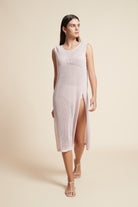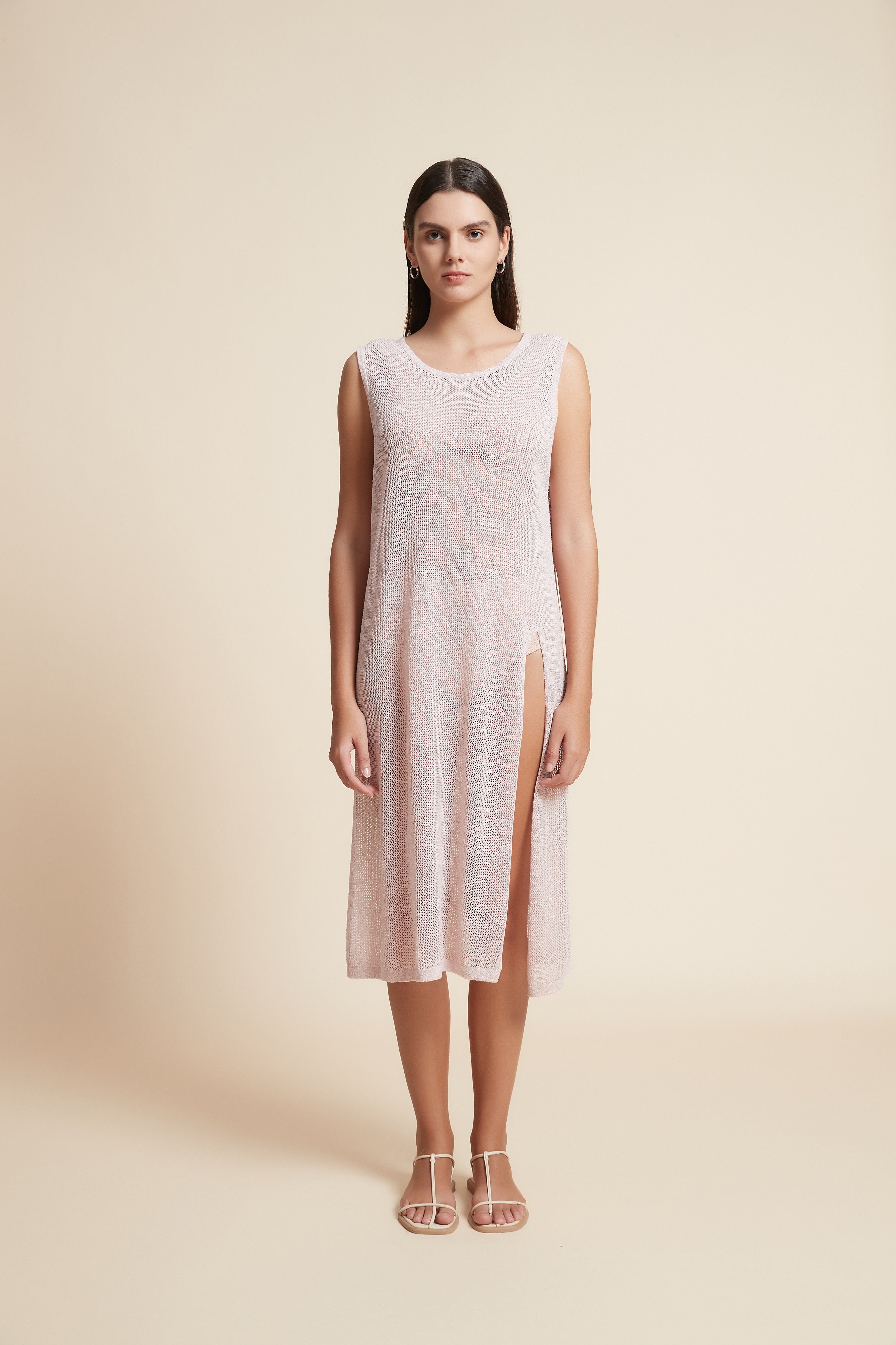 Make sunny days effortlessly chic in this Pink Solid Midi Sleeveless Dress — a breezy, modern staple designed for summer getaways. The straight silhouette and regular fit skim the body with clean lines, while the midi length and side slit add graceful movement and easy mobility. Crafted from a lightweight 65% acrylic, 35% nylon blend, the thin fabric drapes softly, holds its shape and delivers durable, quick-dry performance ideal for beachwear. Unlined and pocketless with a classic round neck, this sleeveless design keeps you cool in warm weather; wear it solo or layer over a slip for extra coverage. Versatile enough for seaside strolls, poolside lunches or relaxed evenings, this solid pink piece transitions from day to night with ease. Discover this wardrobe essential at Fashion SA — add it to your cart and elevate your summer edit.