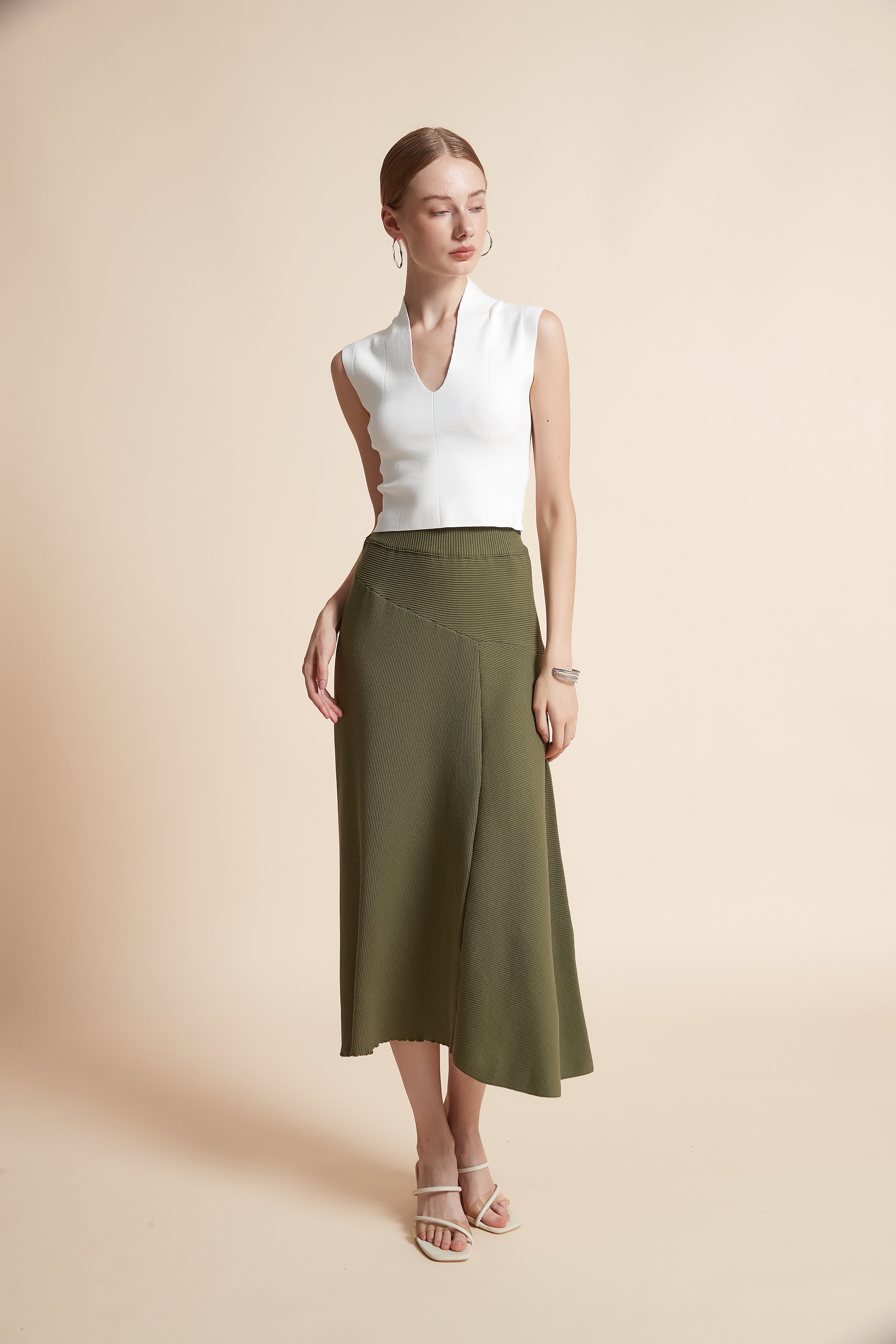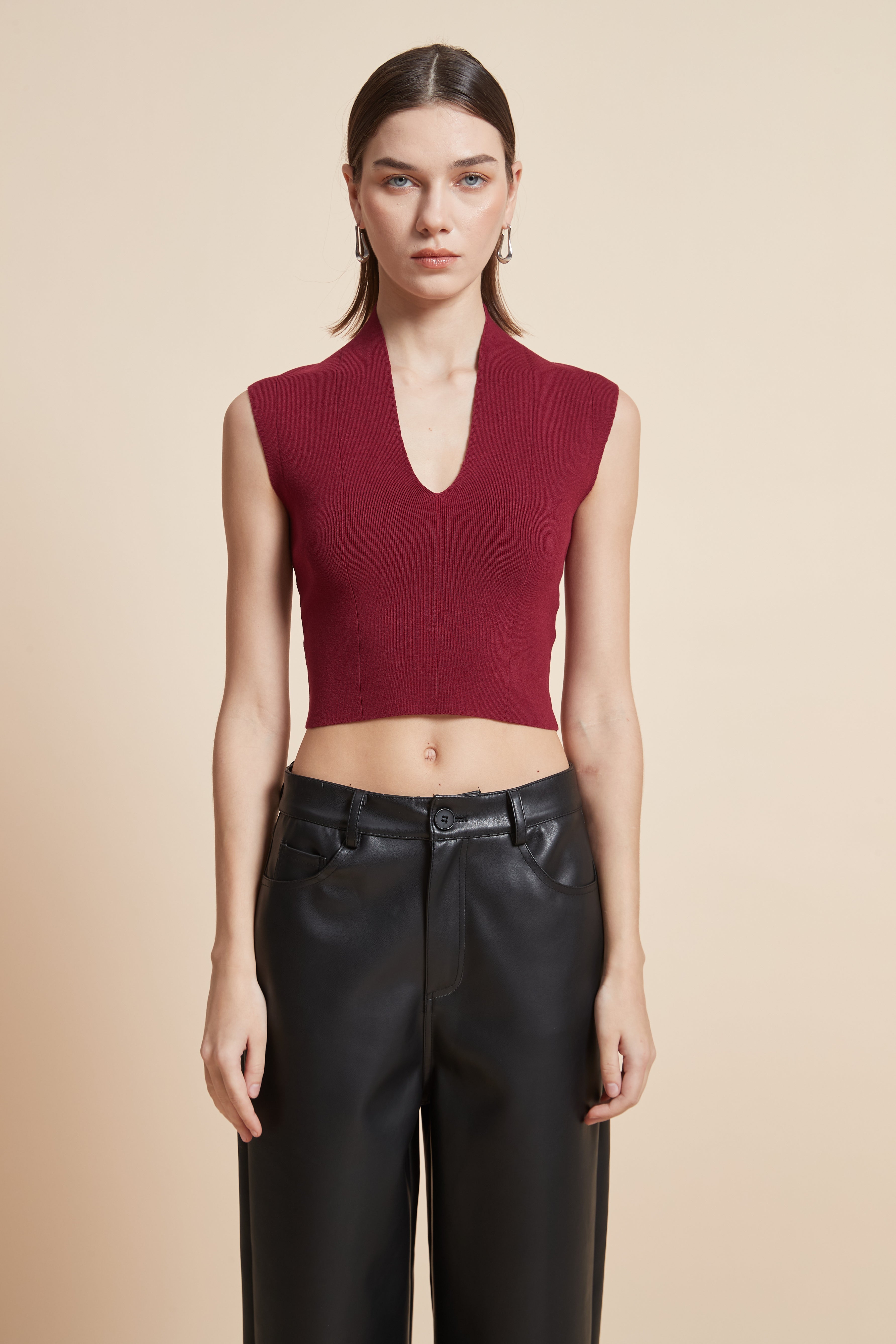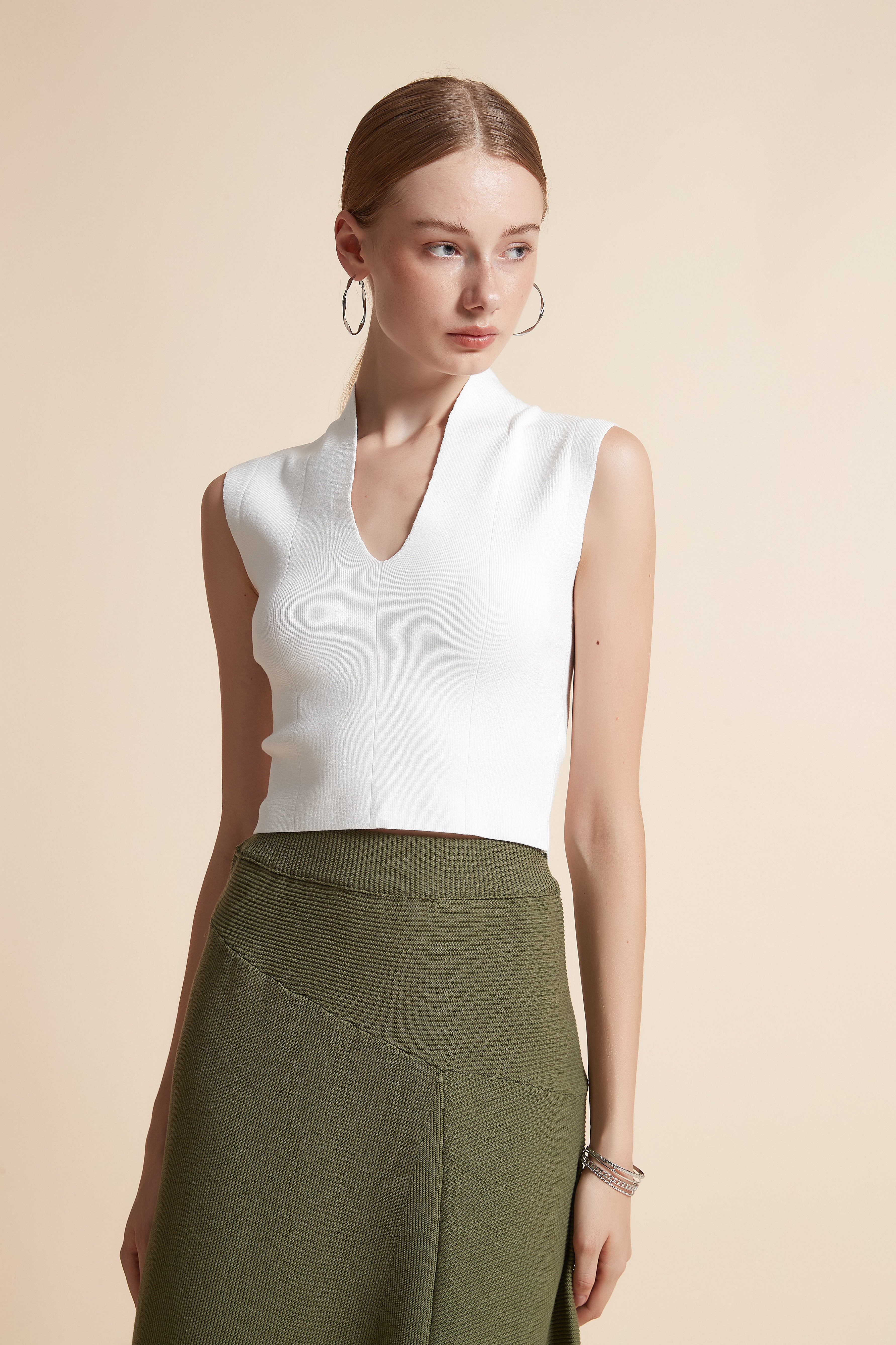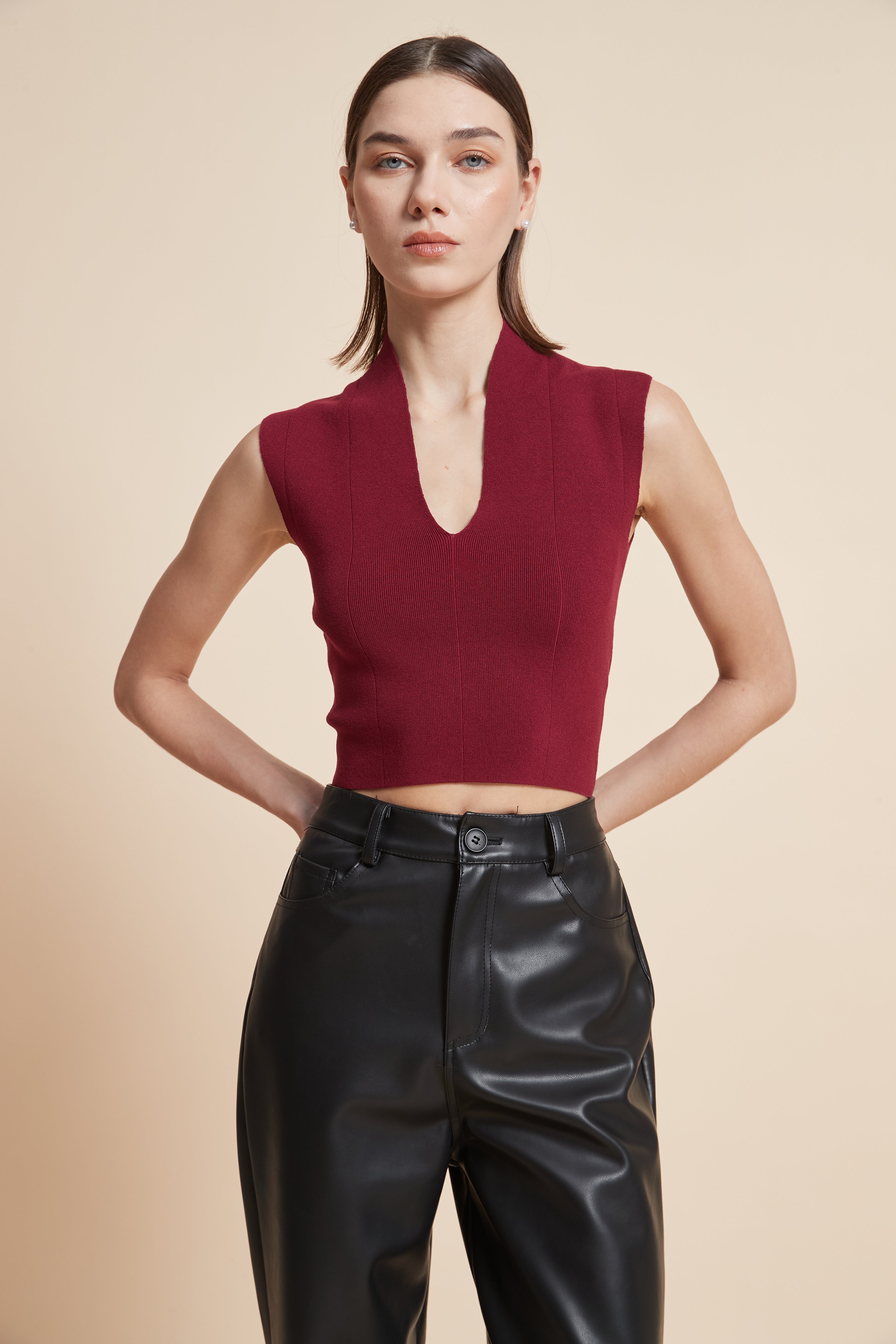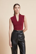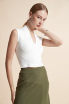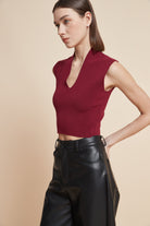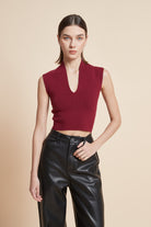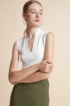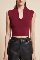 Sleeveless Ribbed Top with V-Neck