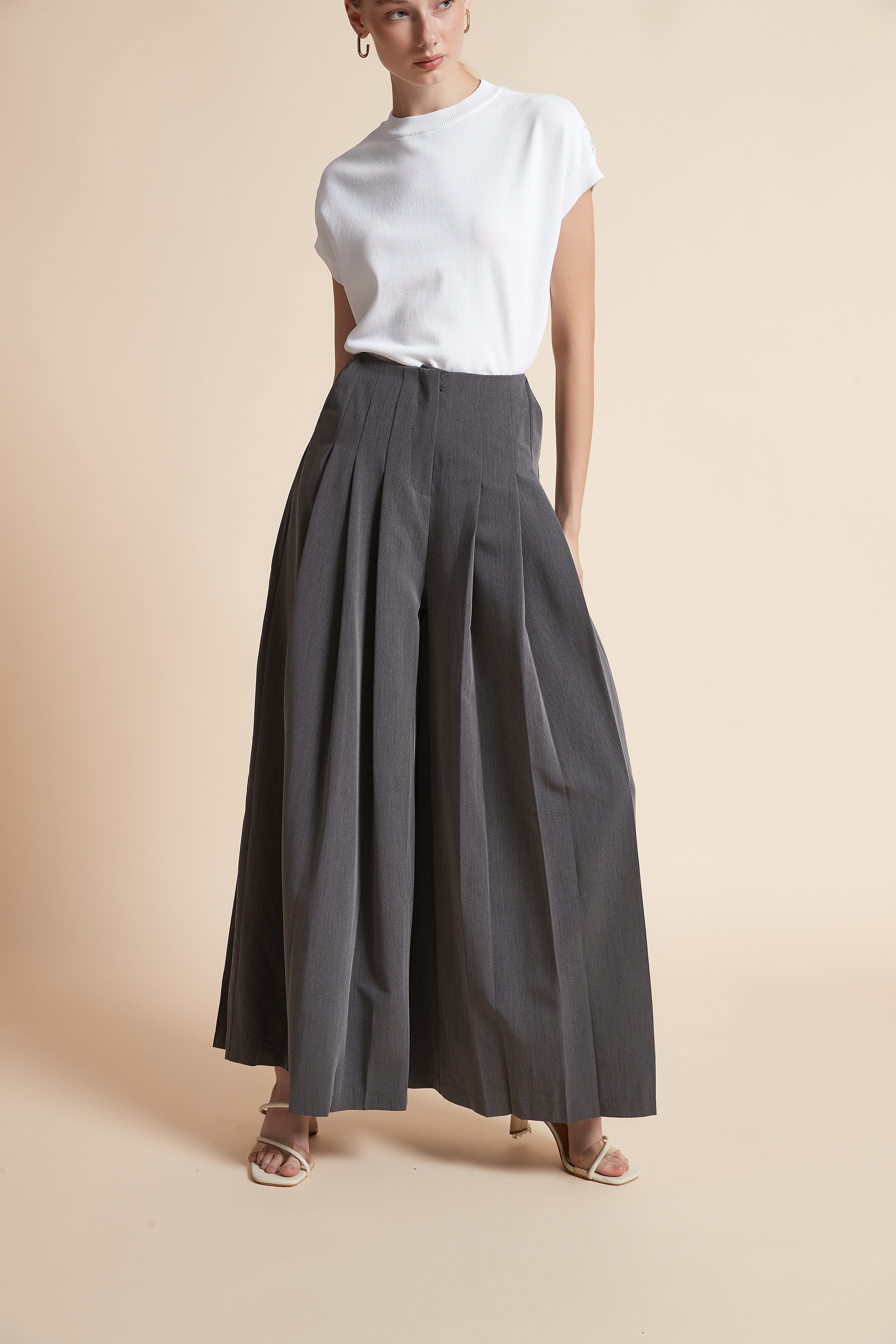 Looking for a distinctive piece that will add a touch of elegance to your everyday look? These long, wide-leg pleated pants are the perfect choice for you. Featuring a unique design that combines comfort and elegance, these pants are suitable for a variety of occasions. Made from high-quality fabric, they ensure comfortable movement and reflect your modern style. You can easily pair them with an elegant blouse or a simple T-shirt to look your best. Don't miss out on these amazing pants; order them online now and enjoy a unique look! Product number: iye066w254vt