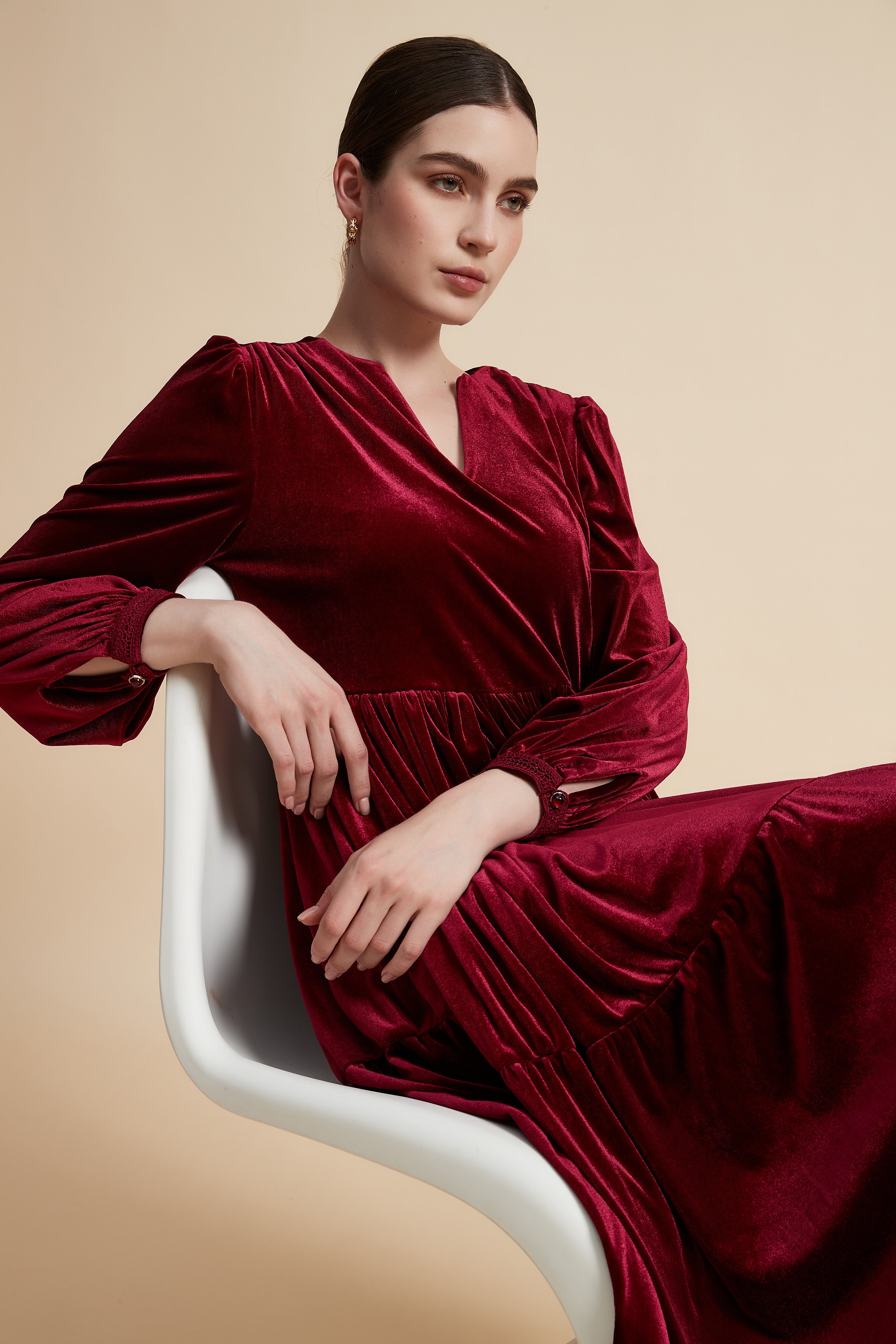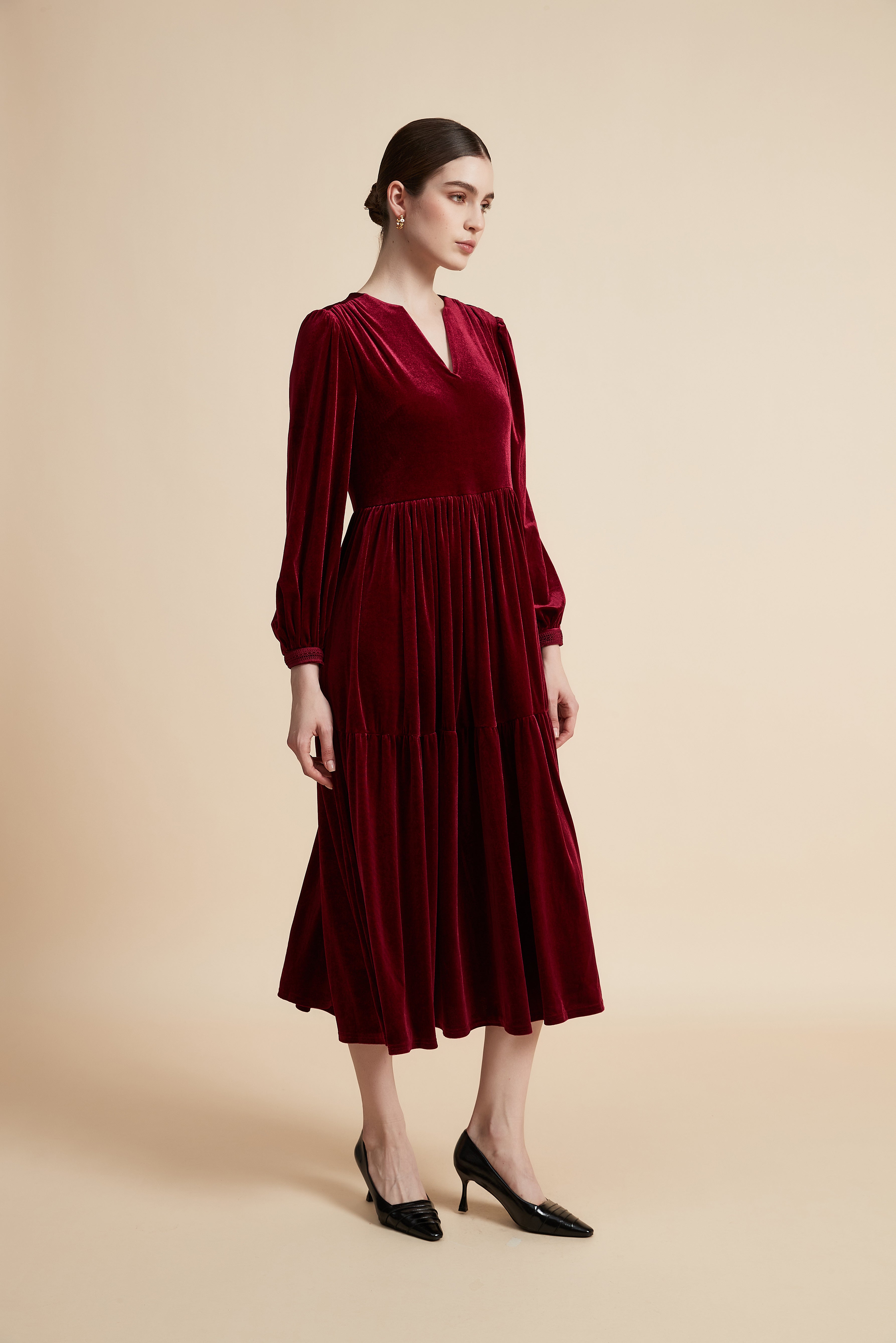 Turn heads in the Bordeaux Solid Midi Long-Sleeve Dress — a refined staple that marries polished tailoring with effortless comfort. The A-line silhouette and V-neck create a universally flattering profile, while the midi length offers elegant coverage for evening events and refined daytime appointments. Crafted from 95% polyester and 5% spandex, the solid Bordeaux fabric is wrinkle-resistant with gentle stretch for ease of movement and a smooth drape. Long sleeves provide practical coverage; the regular fit and unlined construction keep the feel lightweight and breathable. Pocketless and beltless for a clean, streamlined look, this dress transitions seamlessly from cocktail nights to polished office styling. Discover this versatile wardrobe essential at Fashion SA and add it to your edit today. Shop now.