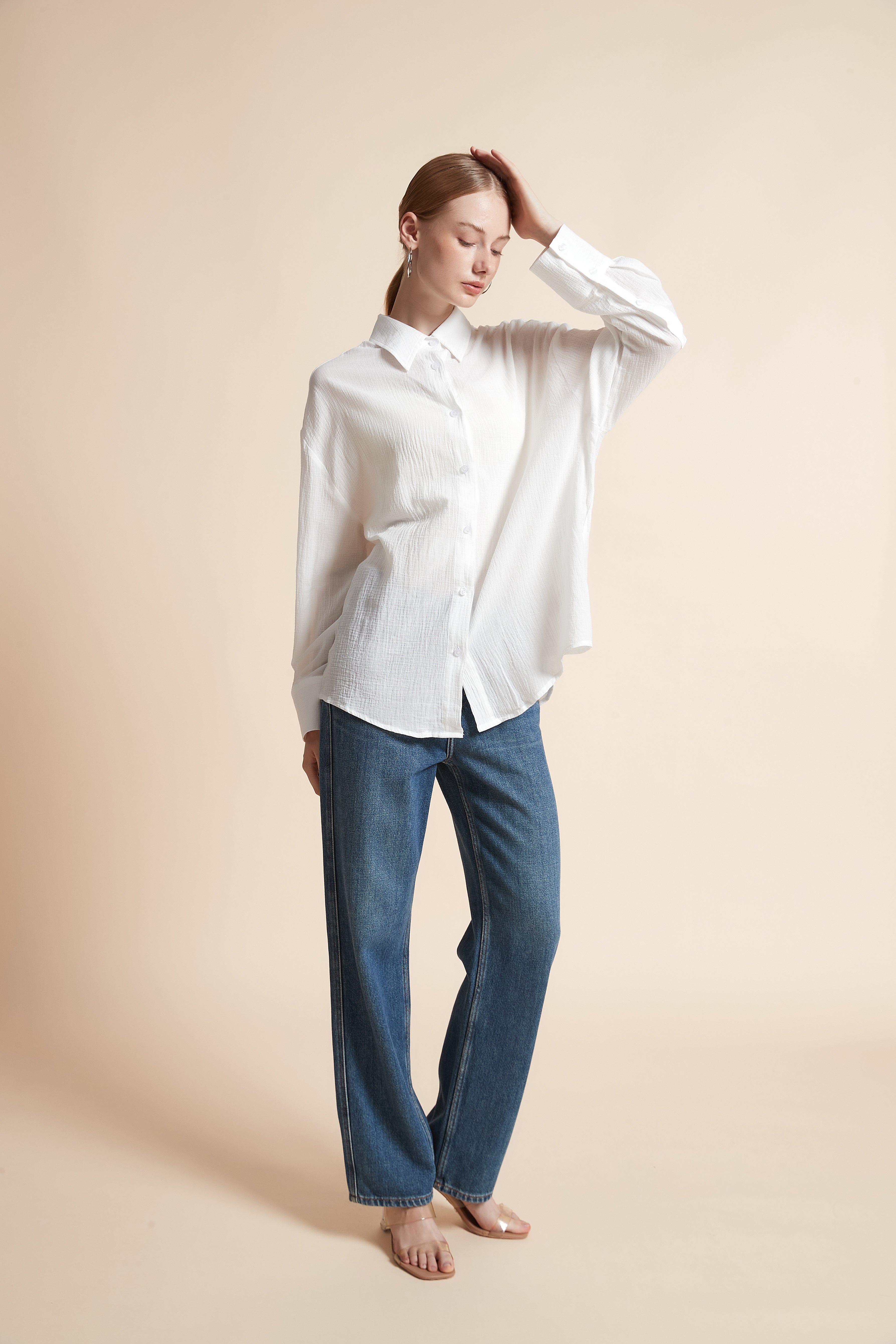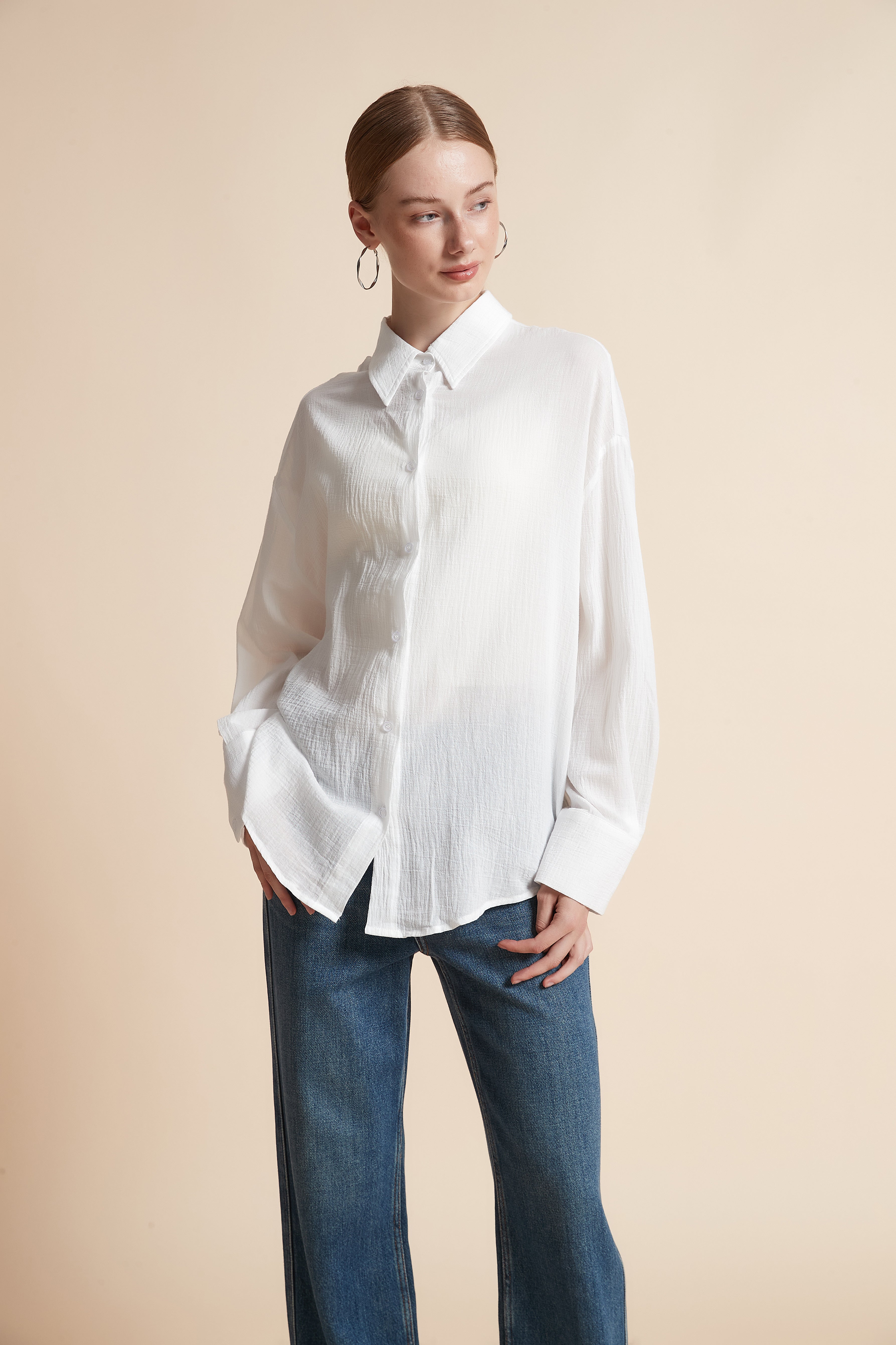 Looking for a piece that combines simplicity and elegance? This plain, long-sleeved, collared shirt with front buttons is the perfect choice for you. Its elegant design makes it easy to coordinate with various outfits, whether you're at work or attending a special occasion. Made from high-quality materials, it offers comfort and a striking appearance. The front buttons add a modern touch, while the collar maintains a classic feel. Don't miss out on this unique piece; order your shirt online now and always look your best. Product number: iye172w254to