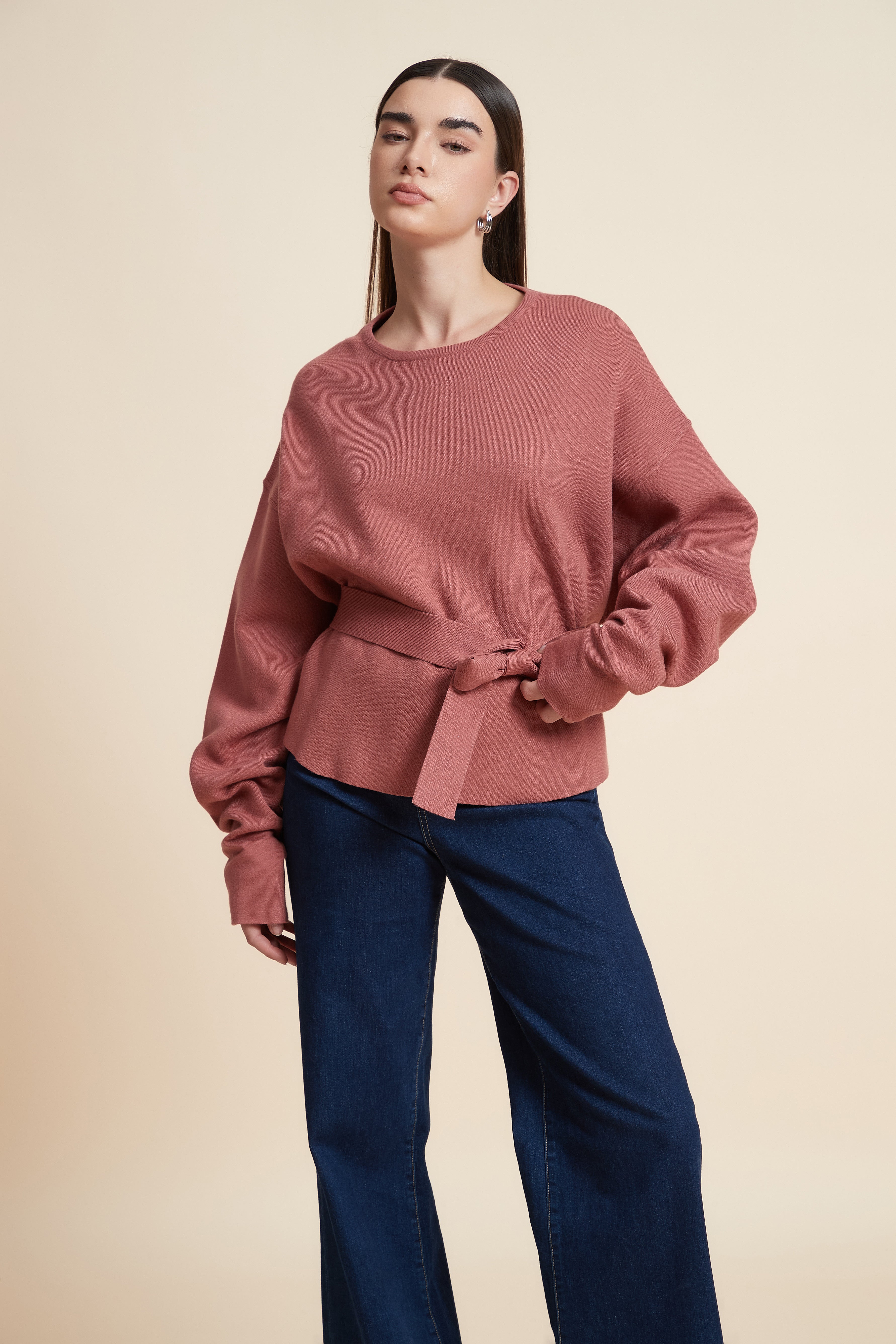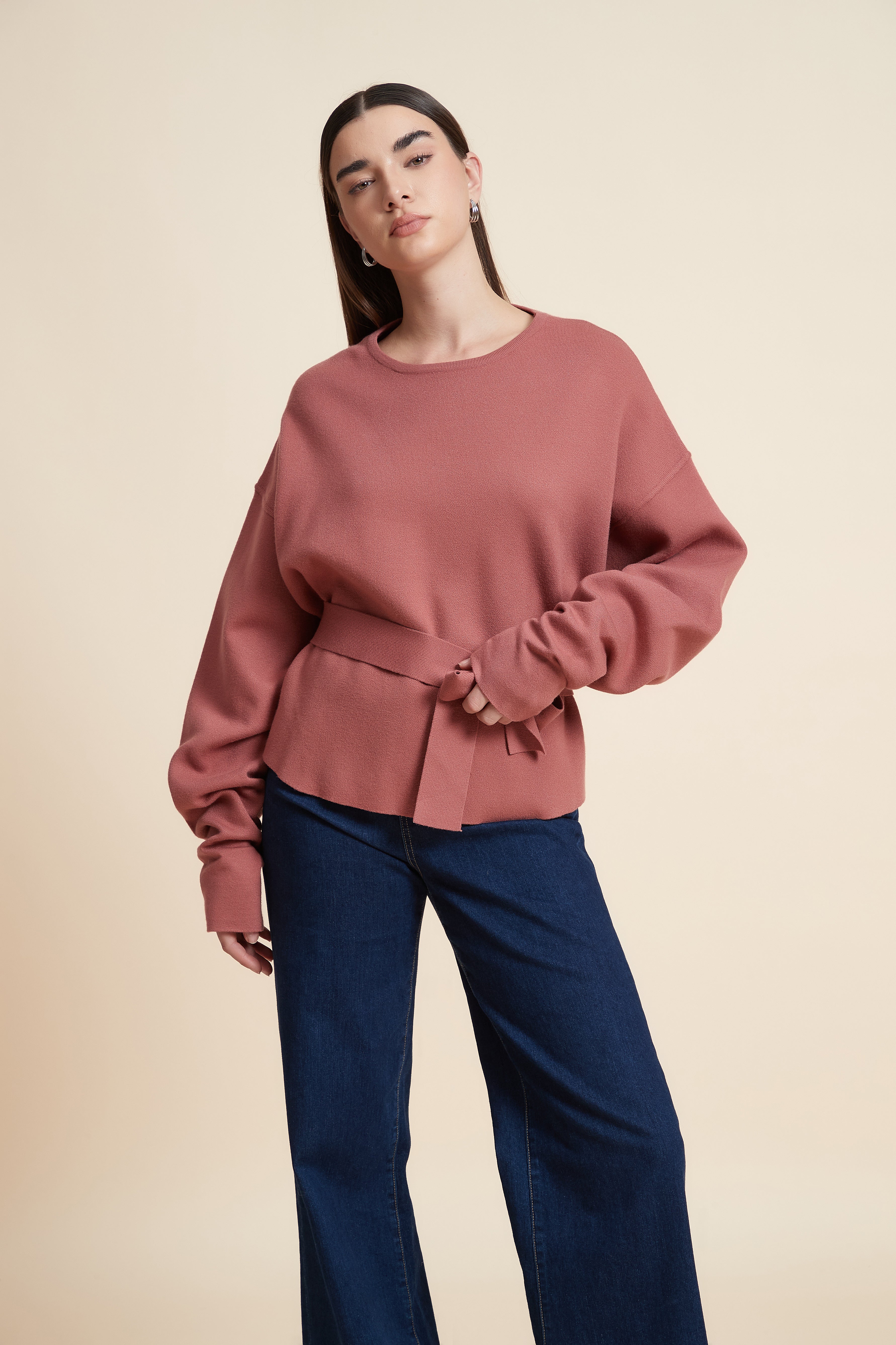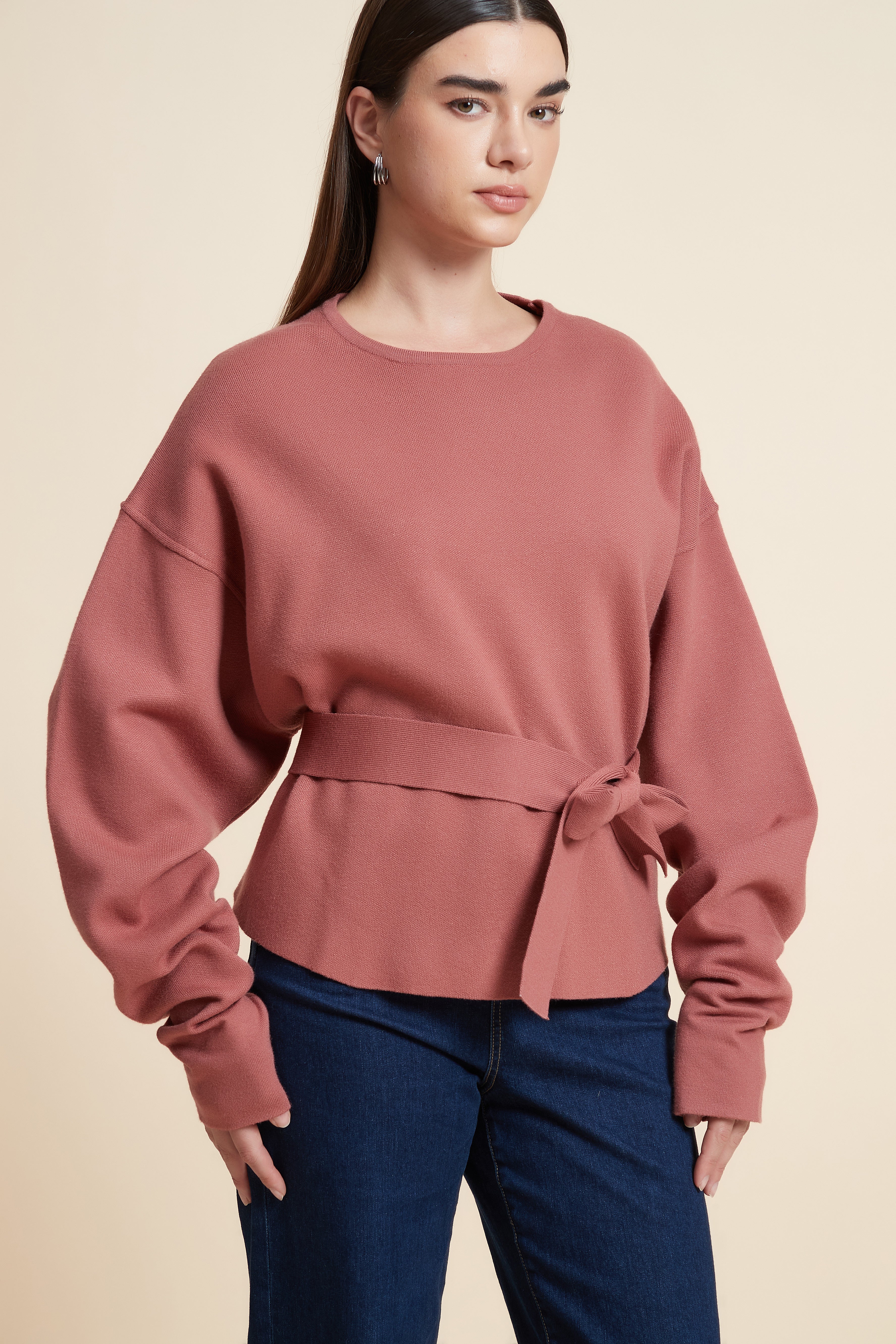 Loose-Fit Long Sleeve Solid Sweatshirt