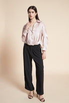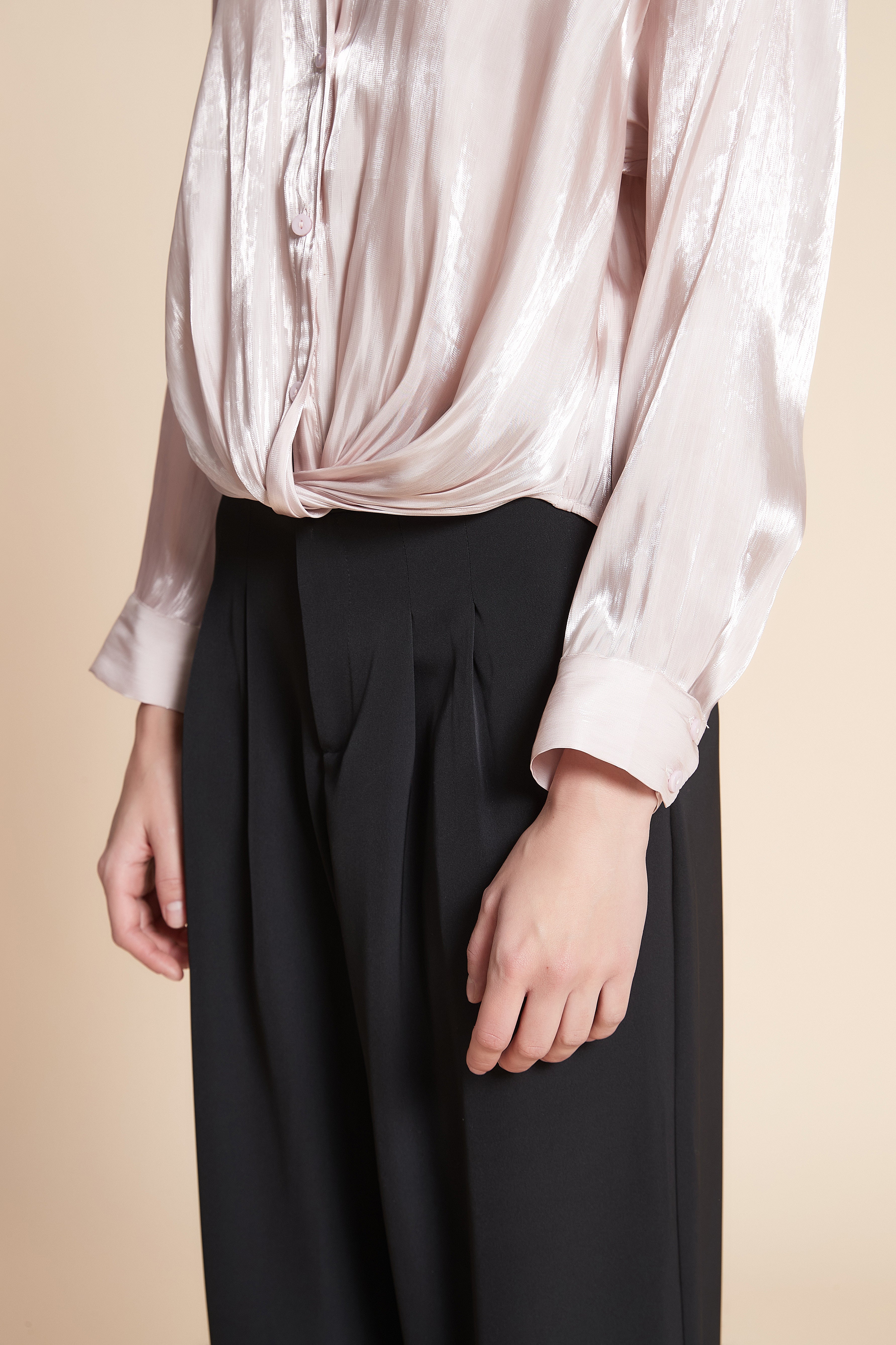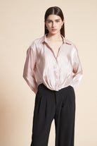 Solid Satin Long Sleeve Blouse