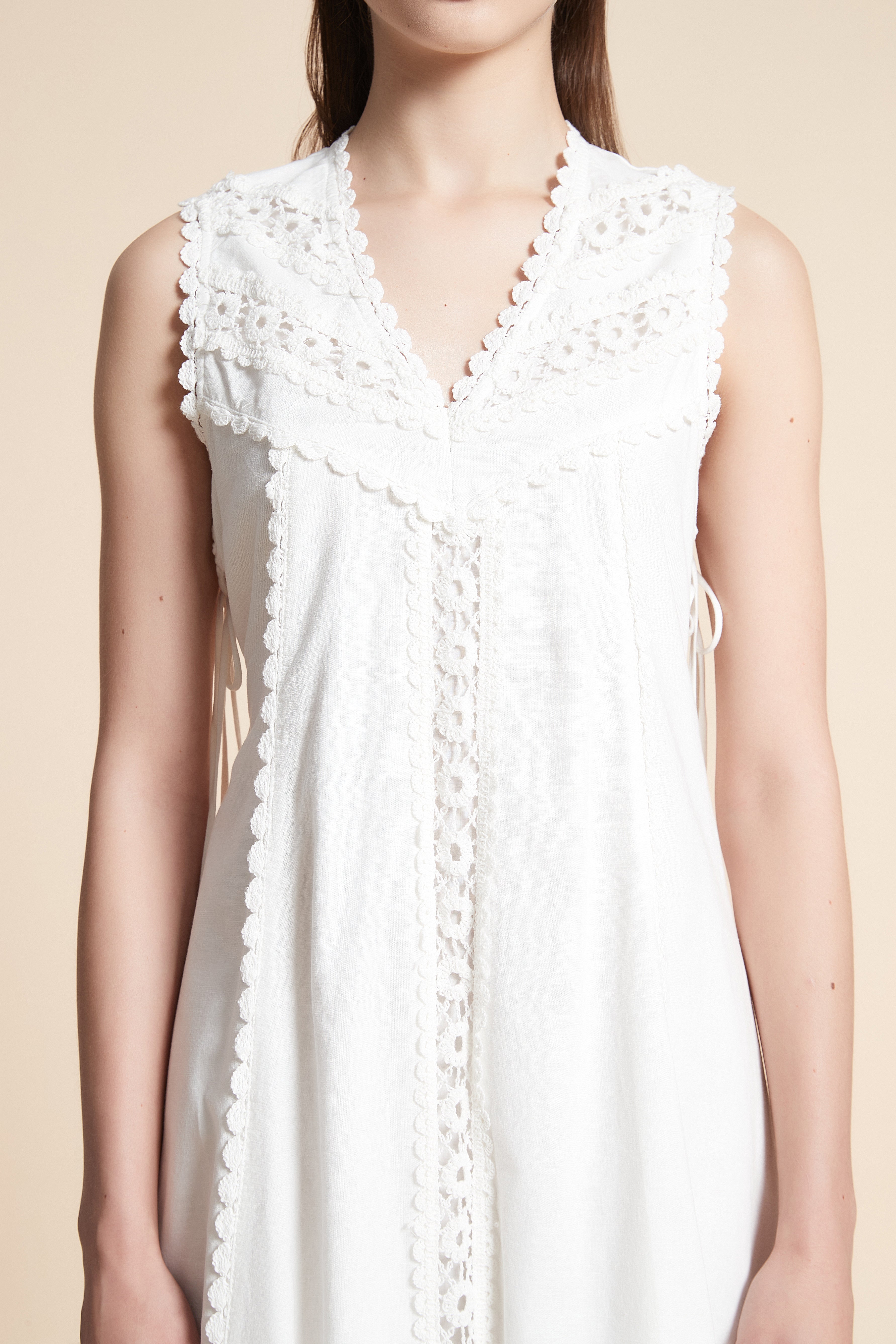 Unveil your inner charm with the Lace Detail Sleeveless Midi Dress, a pivotal addition to any woman's wardrobe. This exquisite piece encompasses a vibrant tapestry of intricate lace detailing that beautifully accents your silhouette. The midi length strikes a perfect balance between elegance and comfort, making it suitable for various occasions. Moreover, the sleeveless design ensures you stay cool and stylish, whether you're at a garden party or an evening out. Product Number: iye453s261to
