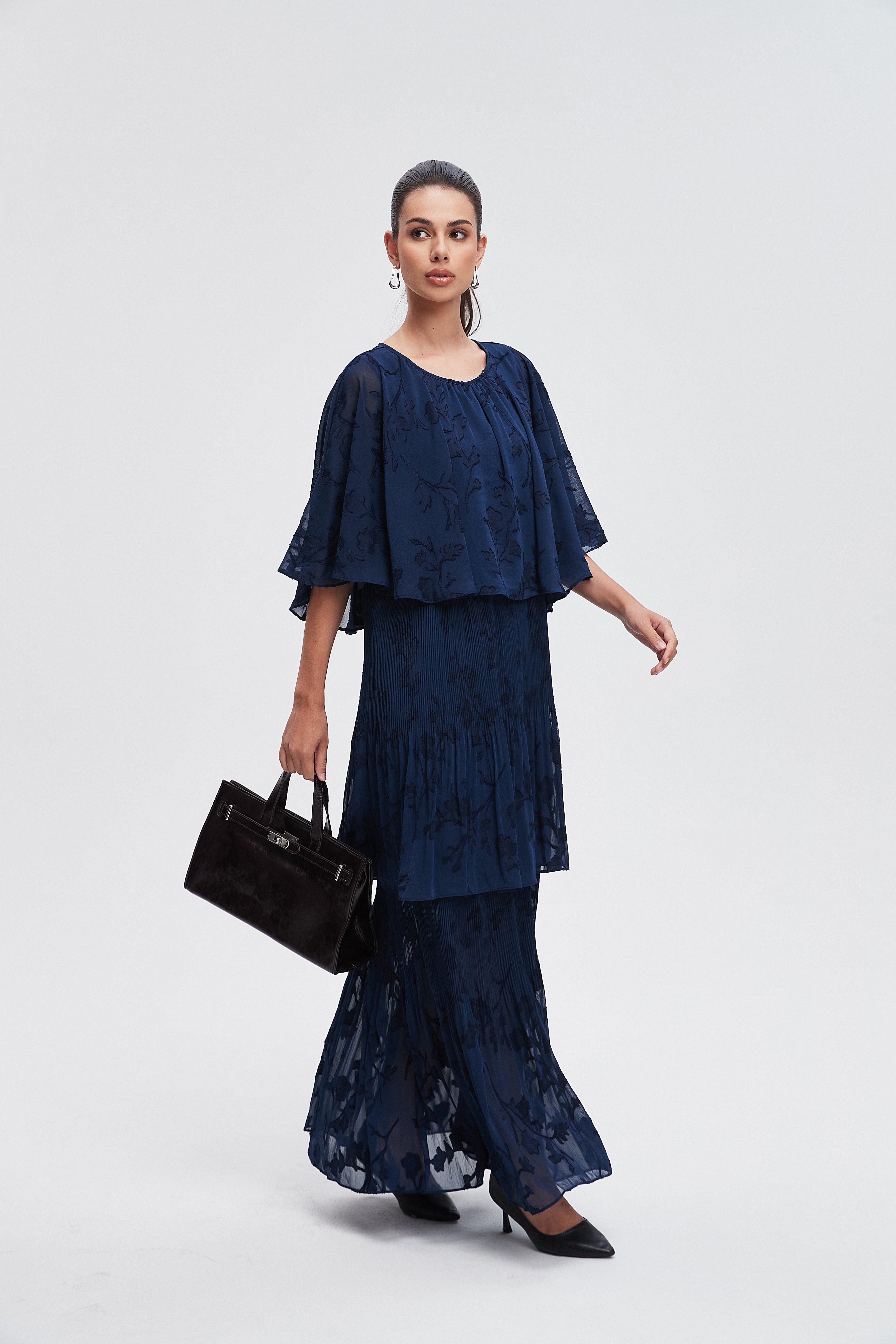 Discover a dress that effortlessly combines elegance and comfort. This long-sleeved floral knee-length dress is perfect for any occasion, whether you're attending a garden party or enjoying a casual day out. Its soft fabric and flattering cut create a lovely silhouette, while the charming floral pattern adds a touch of romance. With its versatile design, you can pair it with heels for a sophisticated look or with sandals for a more relaxed vibe. Product Number: l299723q204