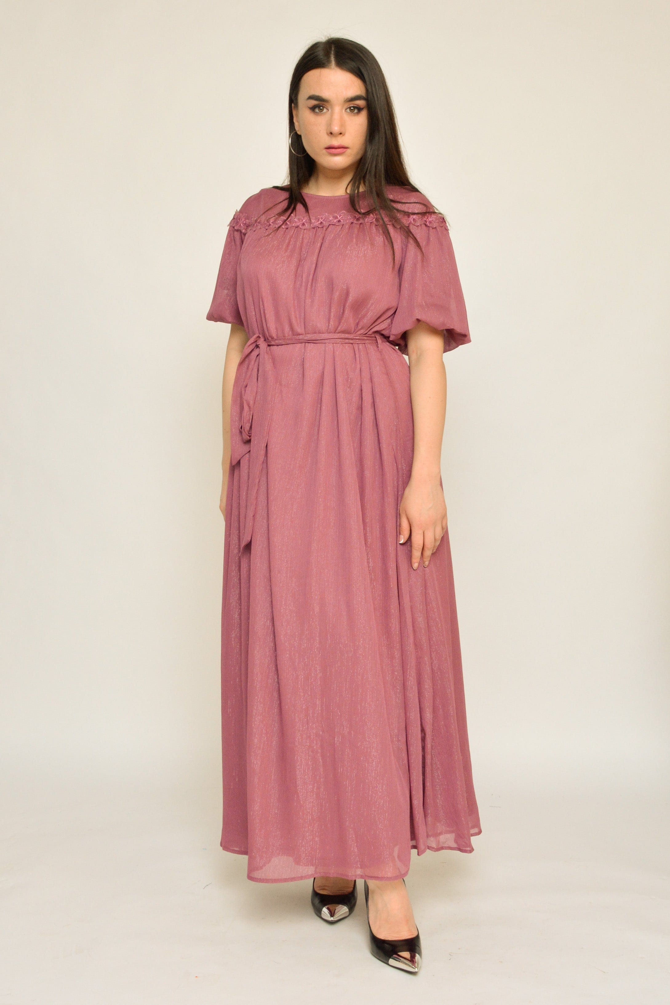 This Plain A-Line Maxi Belted Dress balances timeless elegance with everyday ease, offering a flattering silhouette and subtle shine for day-to-night wear. Crafted from smooth 90% polyester blended with 10% metallic yarn, the fabric is wrinkle-resistant with a soft drape that skims the body while the A-line cut and belted waist define the silhouette without clinging. The plain, unprinted maxi length and short sleeves create a versatile canvas—unlined for a lighter feel and breathable comfort across seasons. With a round neck and regular fit, it’s effortlessly feminine for casual lunches, weekend errands or relaxed evening gatherings. The streamlined, pocketless design reads modern and polished. Discover this all-seasons essential at Fashion SA and elevate your wardrobe—shop now to add understated glamour to everyday dressing.