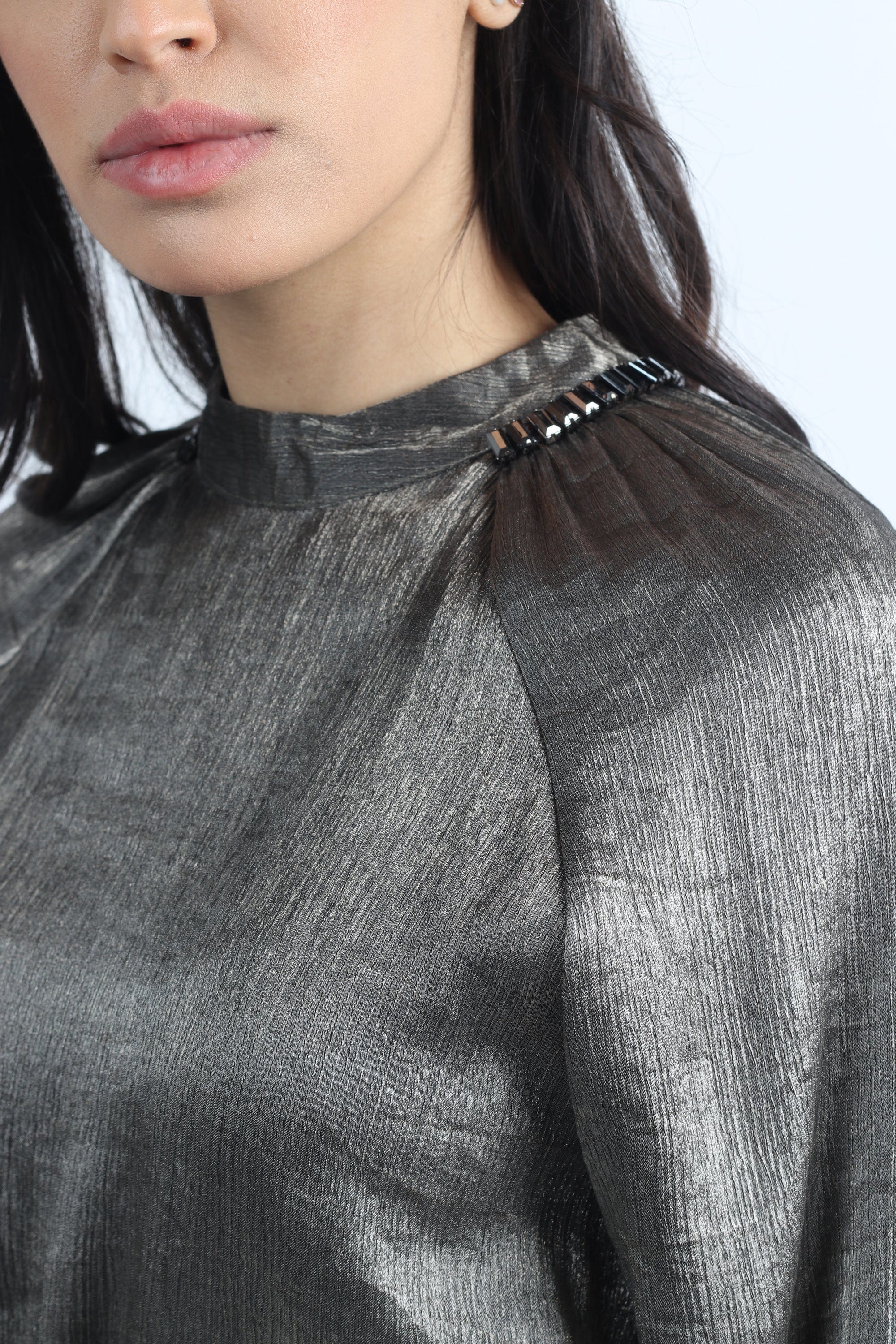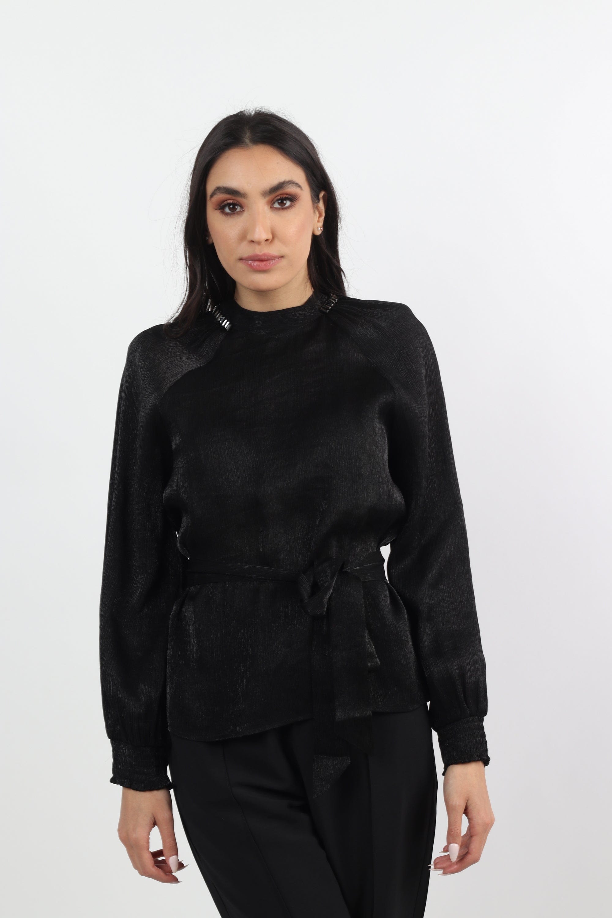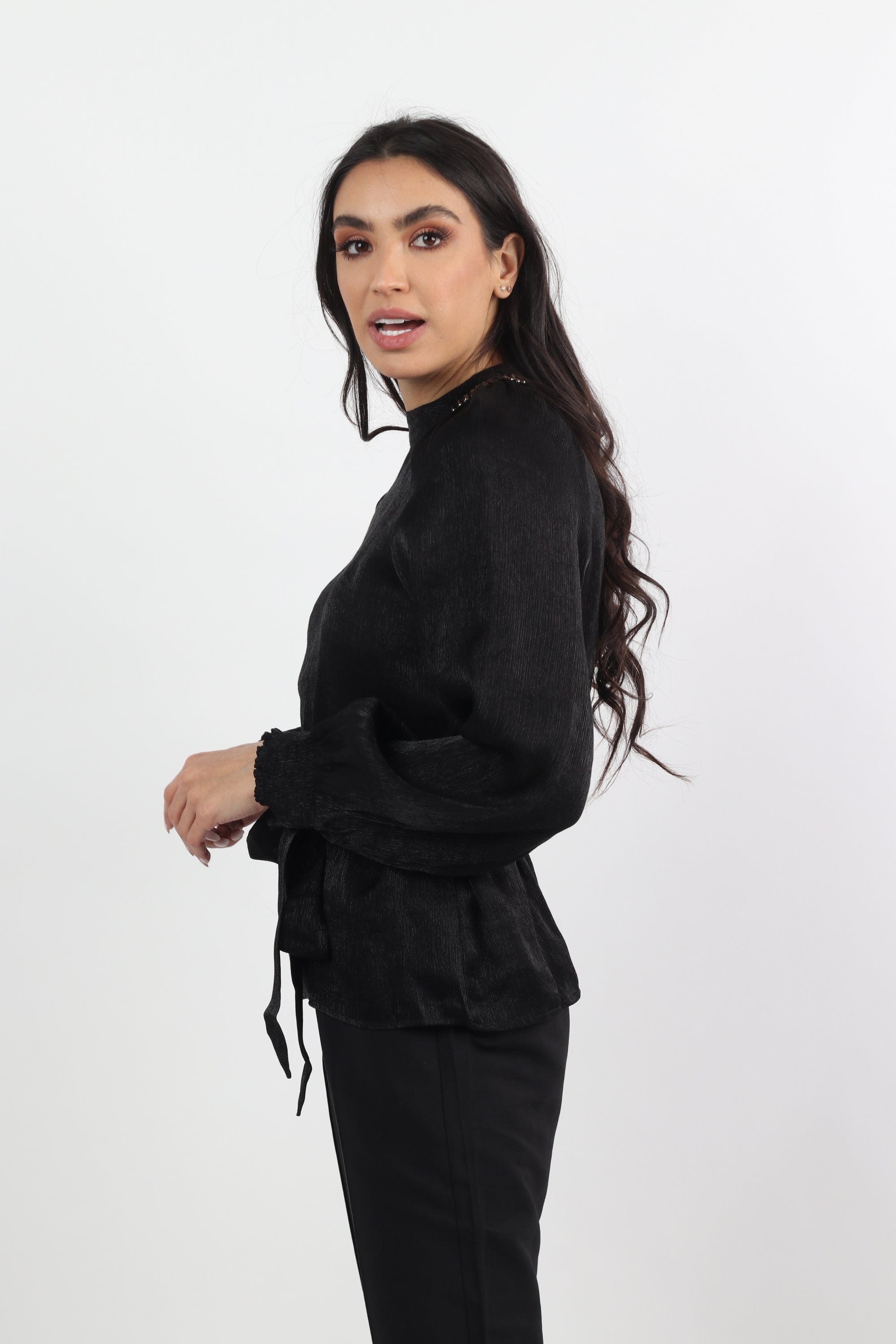 Get ready for the wonderful and elegant look with a bond evening blouse on the waist Nichii. This blouse is available in three great colors: gold, black and bright black. Its distinctive and elegant design makes it ideal for special occasions and evening parties. The beautiful row in the waist gives a beautiful feminine touch, while the long blown amount gives a touch of elegance and attractiveness. Wear it with a skirt or pants and prepare for great brilliance. Now get a bond evening blouse on the waist Nichii And prepare to dazzle your elegance. Ask now and enjoy the most beautiful fashion from Fashion Saudi Arabia. Product number: lc209521q203