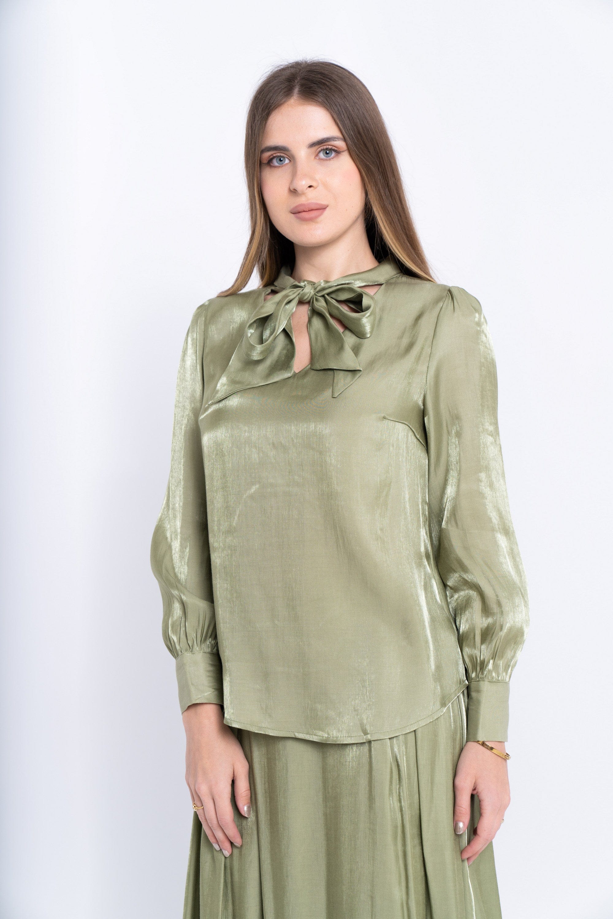 Will your product: Get ready for elegance and femininity with a plain -sleeved bracelet blouse and a tie of Saudi Fashion. This blouse is characterized by its simple and elegant design, and is available in three wonderful colors: the green, black and off white. This blouse will add an elegant and elegant touch to your look, whether you wear it on special occasions or in daily life. This blouse is made in high quality and accurate details, making it an indispensable piece in your wardrobe. Now ask this ideal blouse and add a touch of beauty to your look with the Saudi Fashion. Get now on a plain bracelet blouse, how long a gynecologist with a tie of Fashion! Product number: LC2406-23Q202