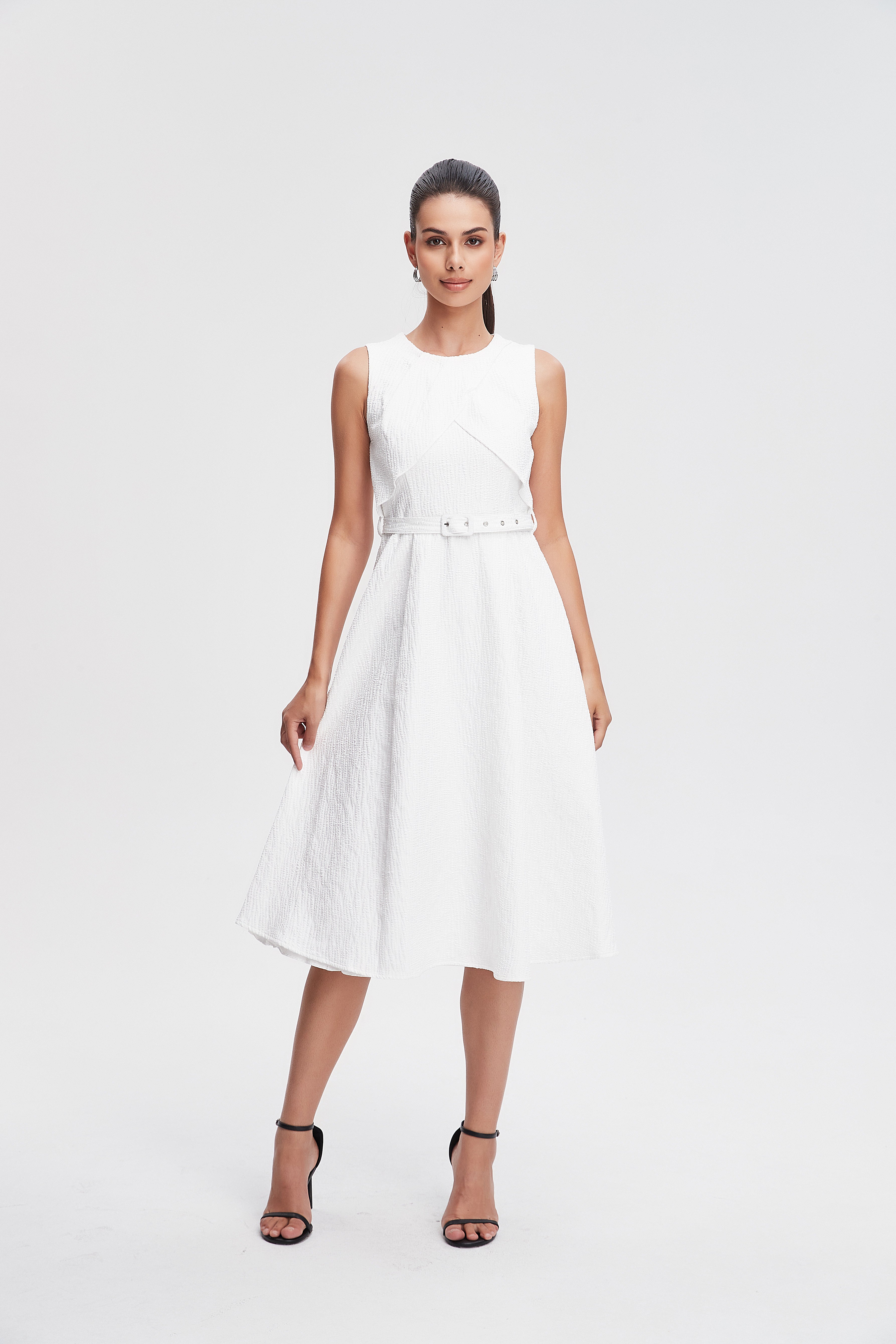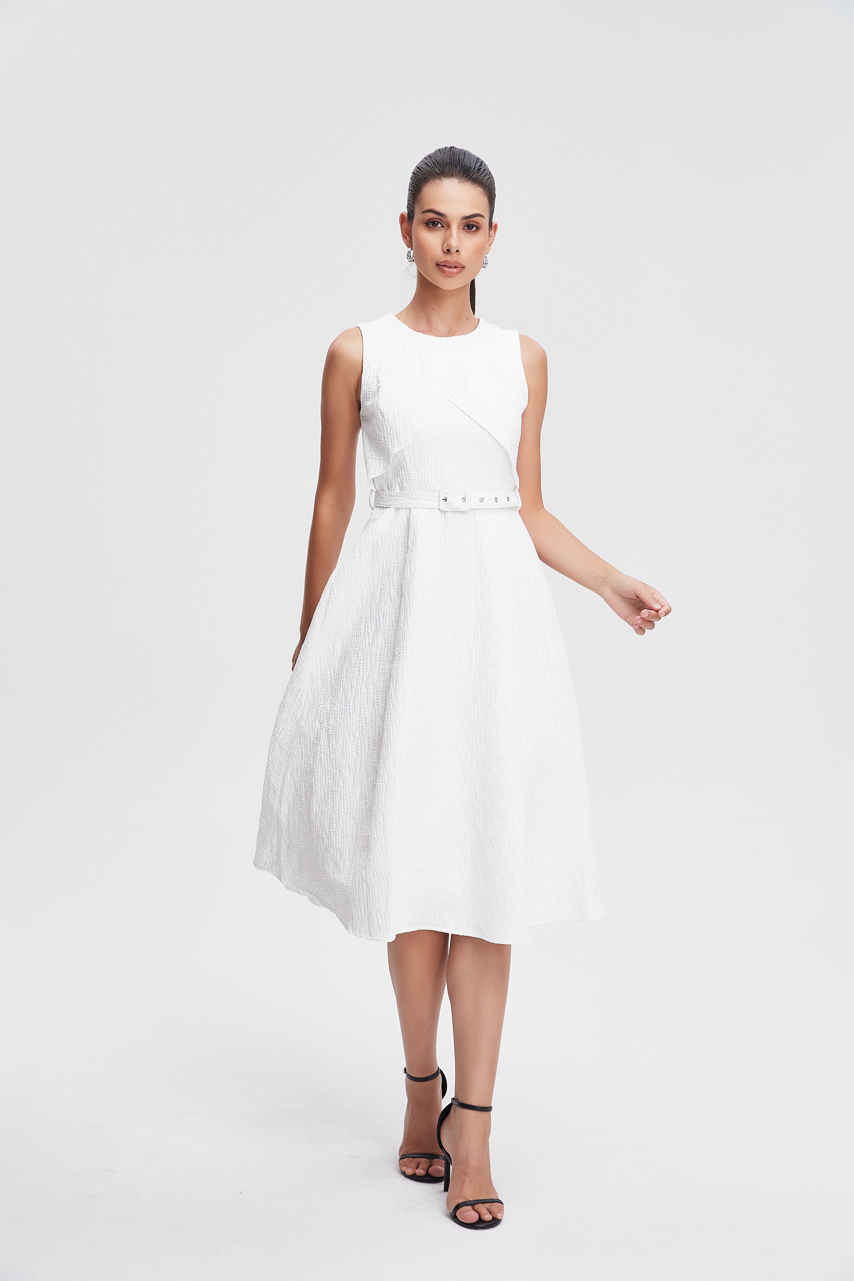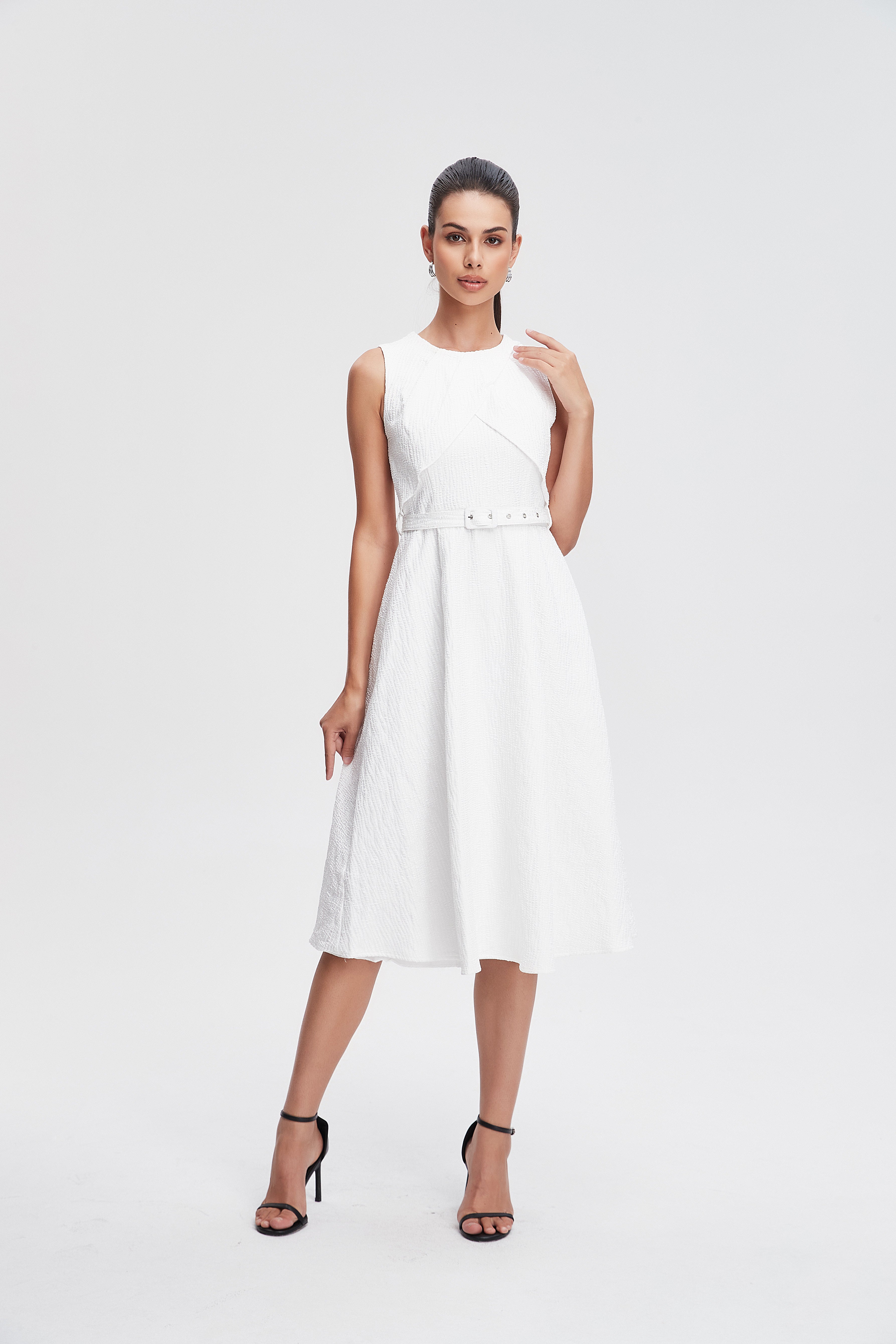 Unleash your inner confidence with our sleeveless fitted midi dress, designed for the modern woman who appreciates both style and comfort. This dress hugs your curves in all the left places, accentuating your silhouette while allowing you to move freely. Crafted from high-quality fabric, it offers a sleek look that transitions easily from day to night. Available in a variety of stunning colors, this midi dress is perfect for any occasion, whether it's a casual outing or a special event. Product Number: lc243023q205