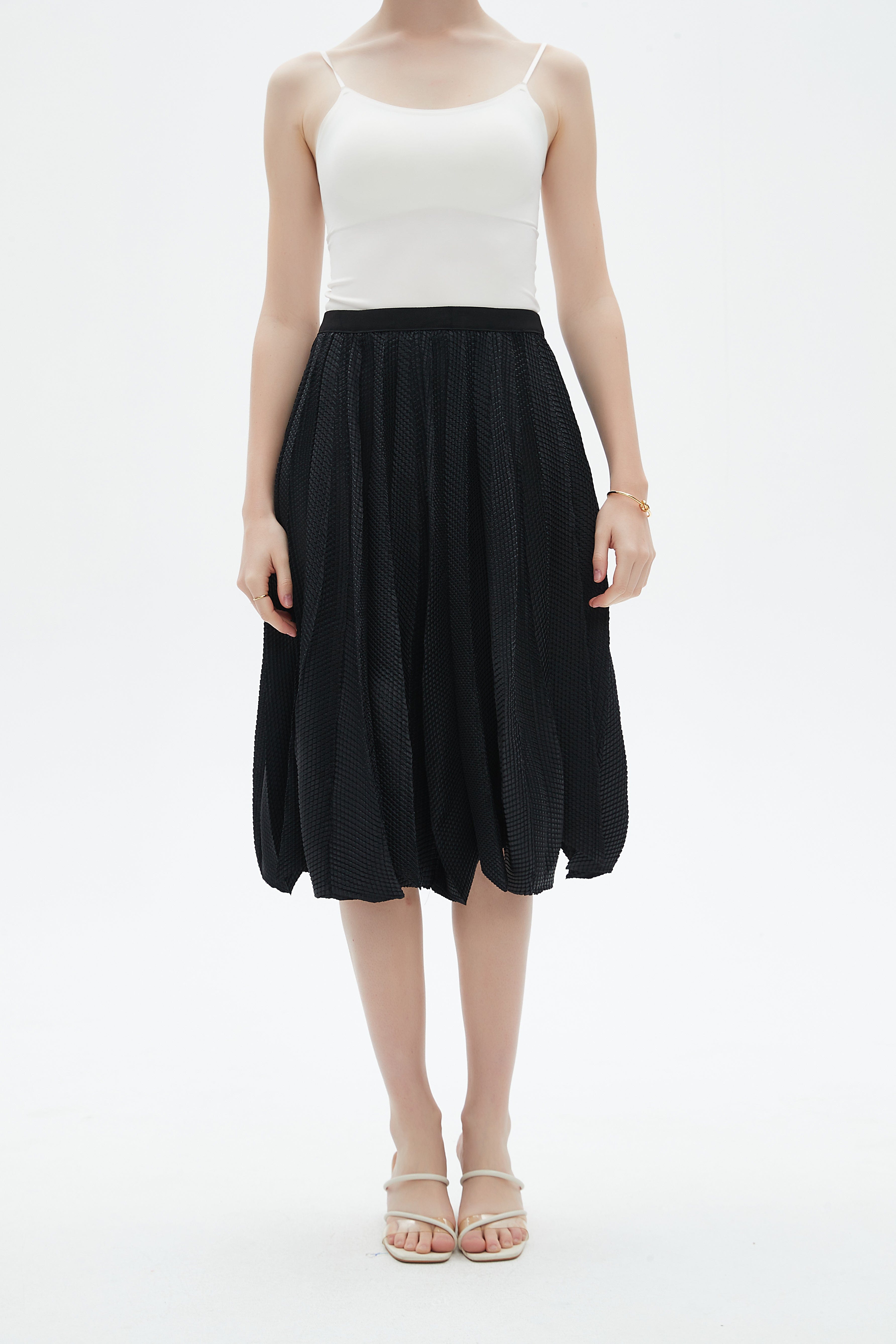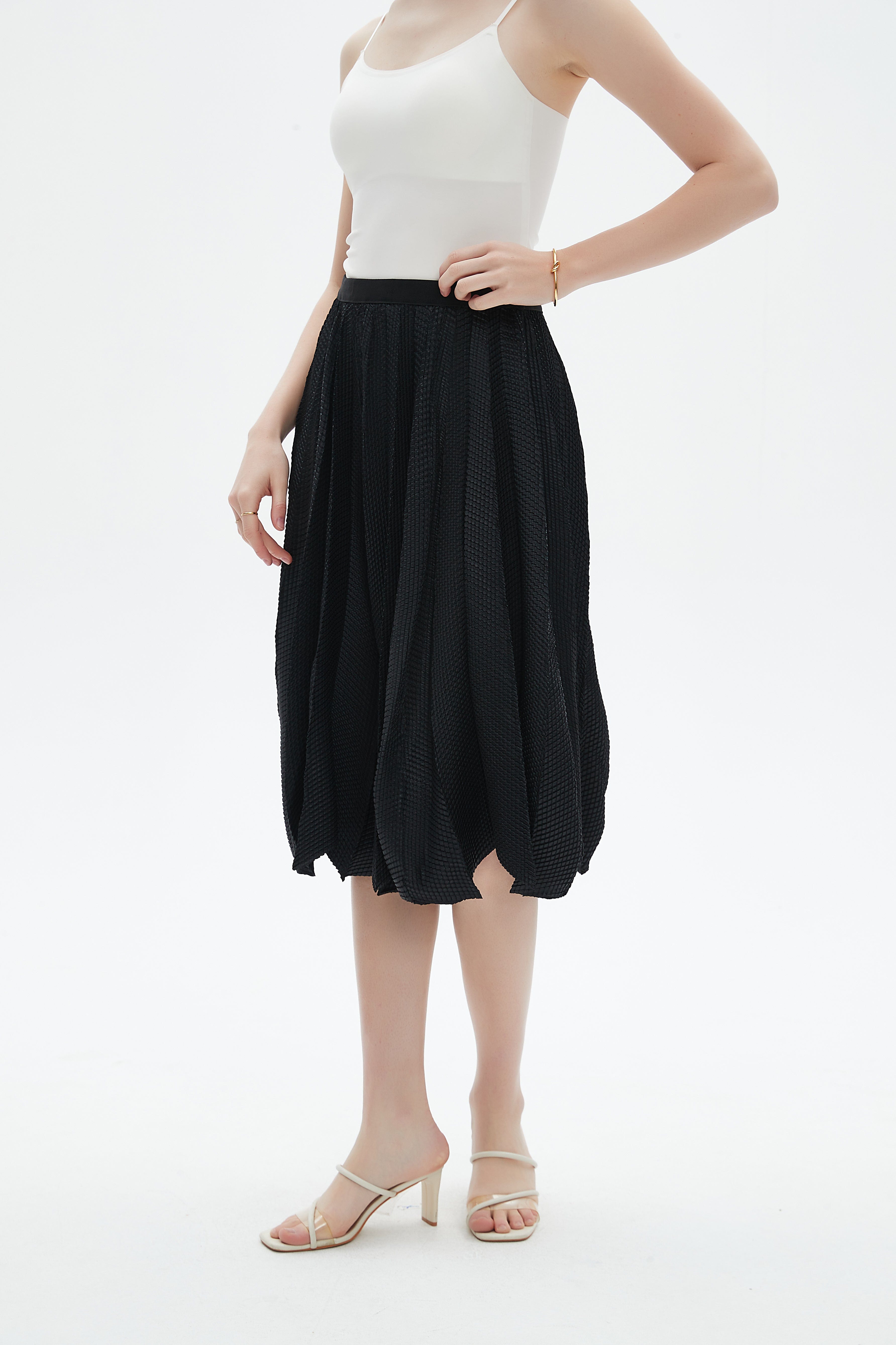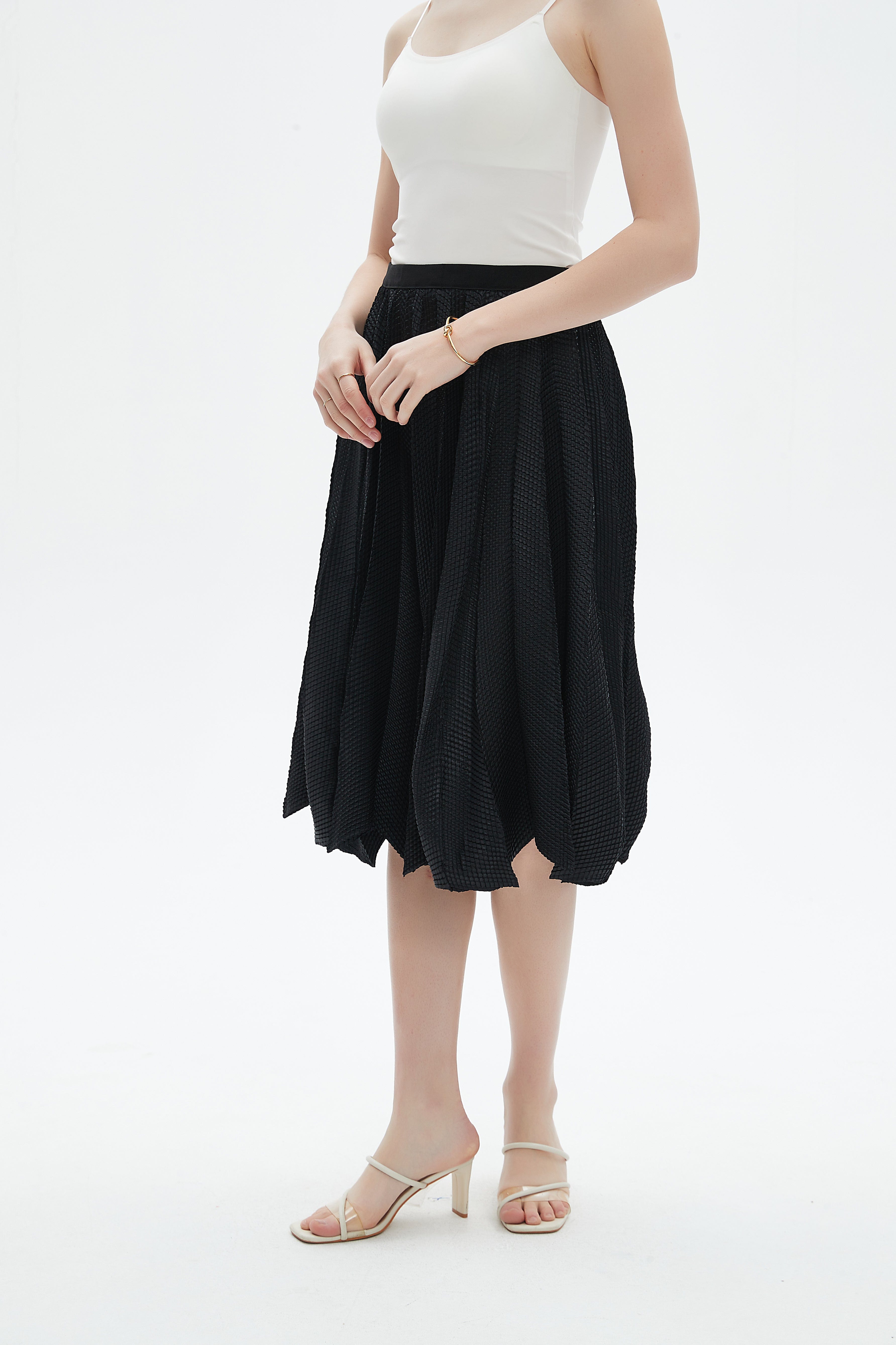 Discover a new favorite with the Ruffled Midi Skirt with a Slit Bottom from Nichii. This chic piece combines playful ruffles with a daring slit, offering a delightful blend of elegance and flair. The soft fabric drapes beautifully, making it perfect for a casual day out or a special evening. Pair it with a simple top and your favorite heels for an effortlessly stylish look. Available in versatile colors, this skirt is a must-have addition to any wardrobe. Don't miss out on this fashionable essential—order yours today through Fashion Saudi! Product Number: lf52225q105