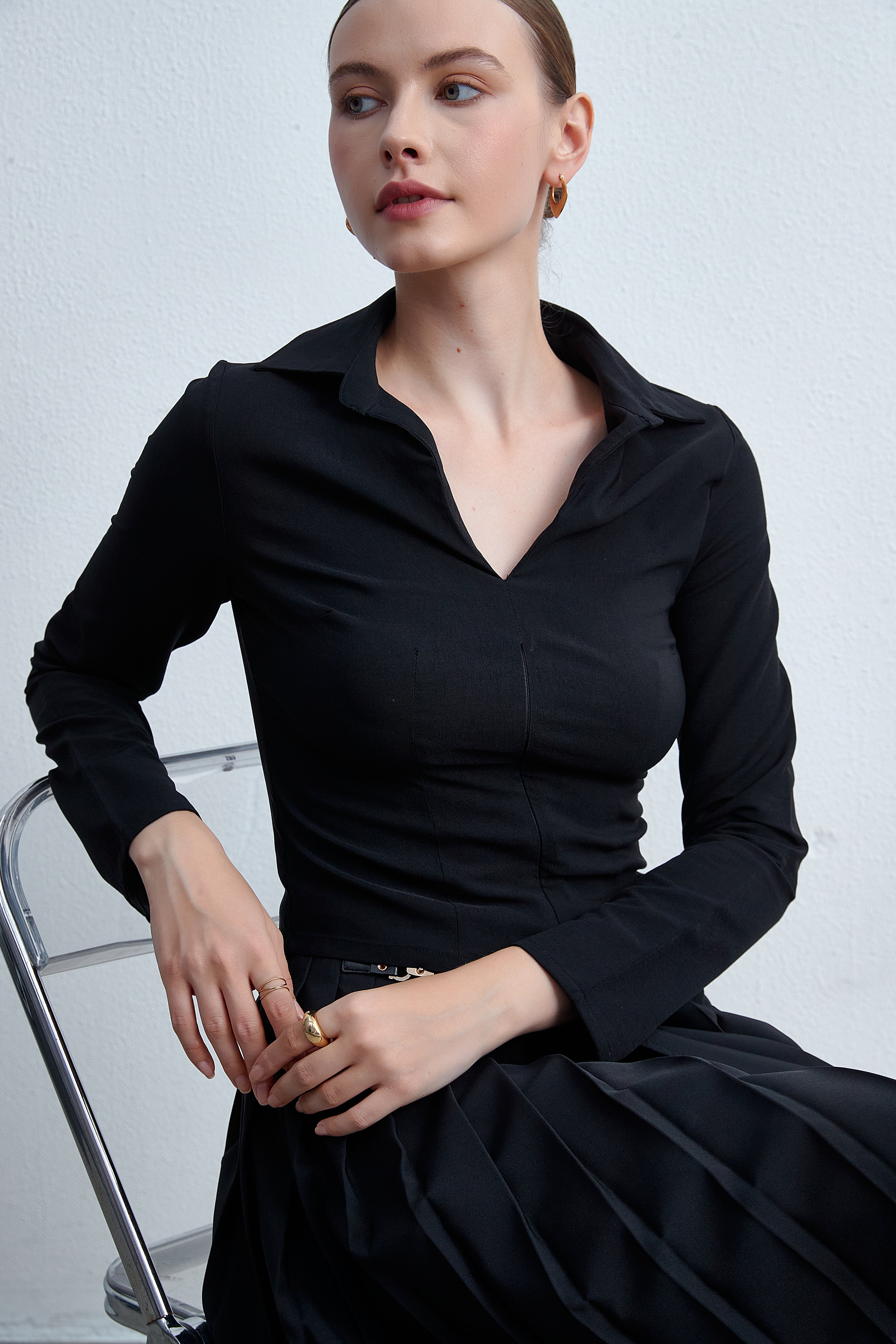 This plain, long-sleeved, V-neck blouse features a simple, elegant design, making it an ideal choice for those seeking both comfort and style. Made from soft fabric, it's comfortable all day long. It easily complements a variety of looks, whether you're wearing it to work or social events. Pair it with jeans or a skirt for a striking look. Don't miss out on this stunning blouse; order it online now to always look your best. Product number: lv0031s252jn