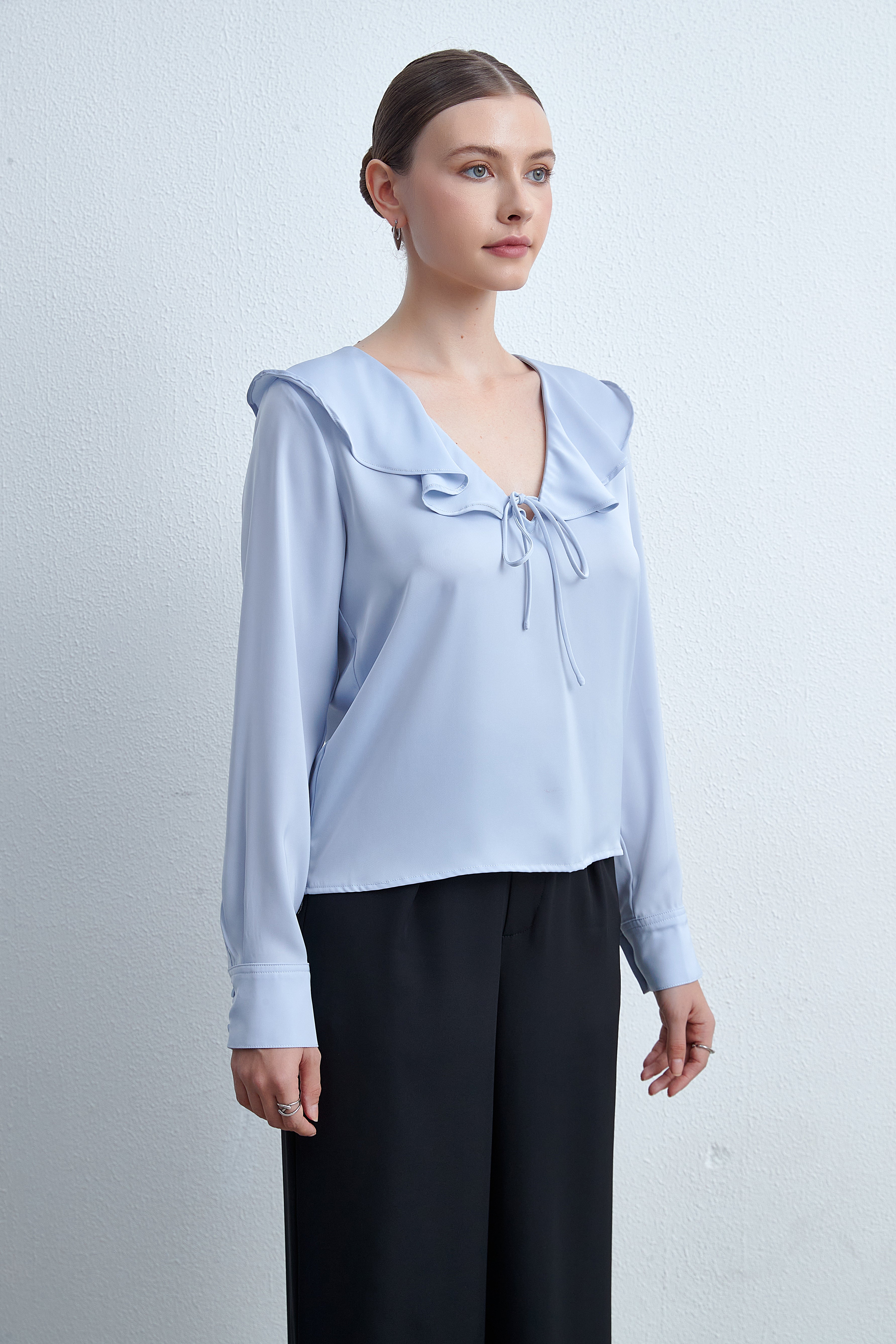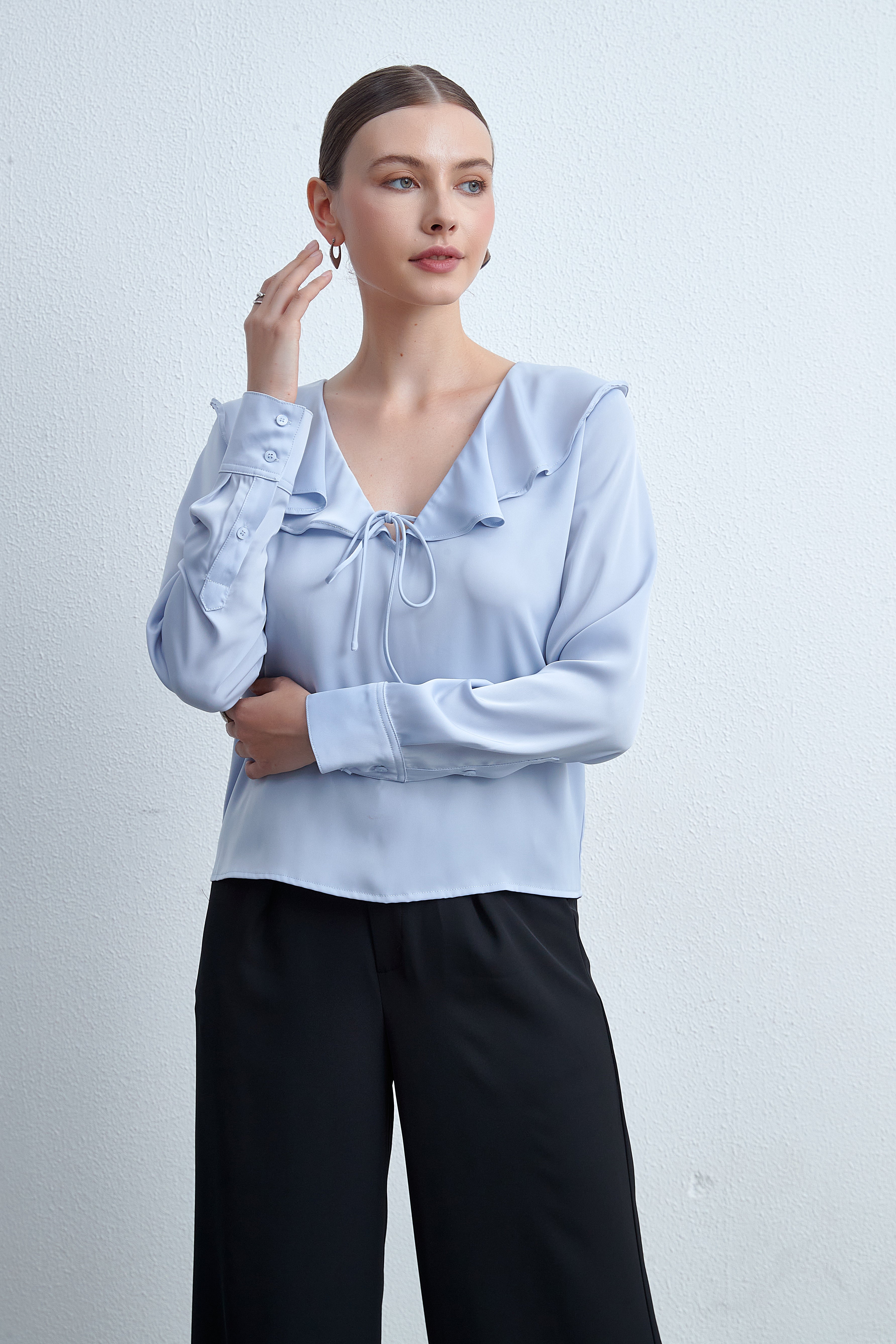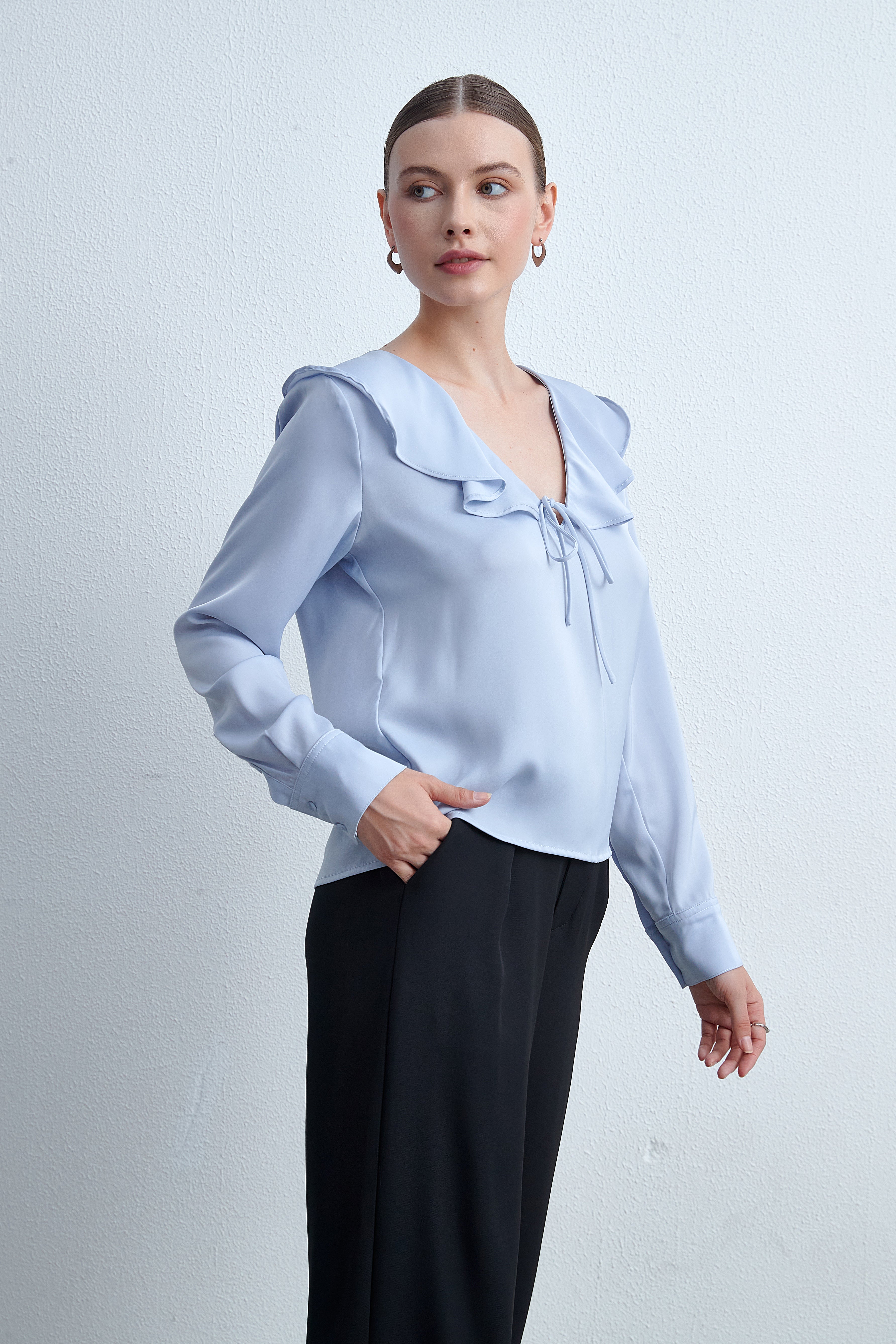 A long -sleeved blouse of "Levia" is an ideal choice for every woman who seeks simple elegance and comfort. This blouse is characterized by its elegant design that suits various occasions, whether daily or official. The soft fabric guarantees a feeling of comfort throughout the day, while the long sleeves add a touch of elegance. It can be easily coordinated with jeans or skirt for a distinctive look. Do not miss the opportunity to add this wonderful blouse to your closet, and now ask it from "Fashion Saudi Arabia"! Product number: lv0050S252to