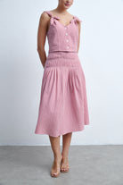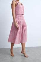 A knee length skirt with a wide story of LIVIA gives a touch of modern elegance to each look. This skirt is characterized by its vast design that gives you freedom of movement and unparalleled comfort, which makes it ideal for daily use or special occasions. The skirt comes in multiple colors that suit all tastes, making it easy to coordinate with different clothes. Wear it with an elegant blouse or a simple T -shirt, and you will get an integrated appearance that attracts attention. Do not miss the opportunity to acquire this distinctive piece, request it now from Fashion! Product number: lv0068s252vt