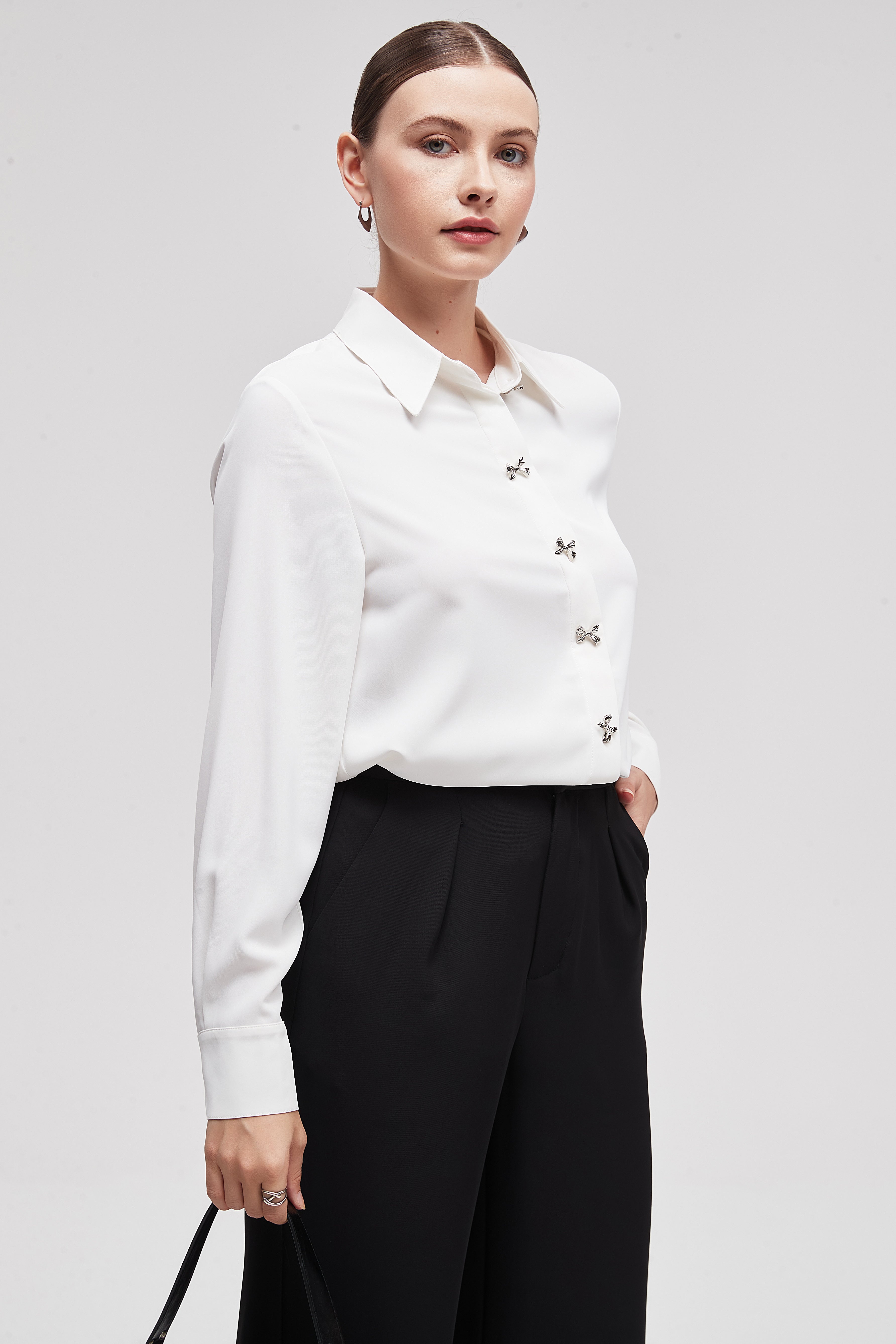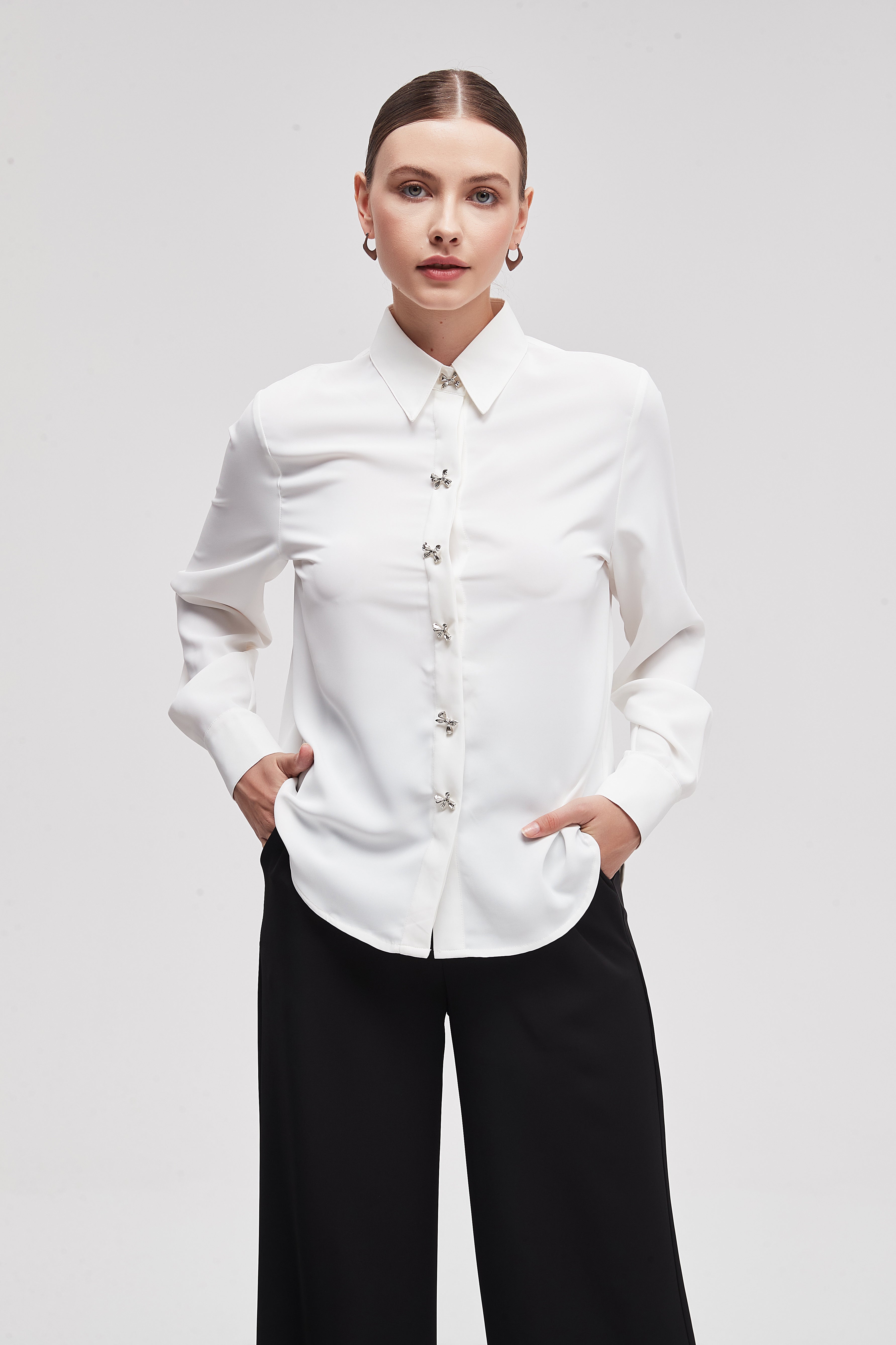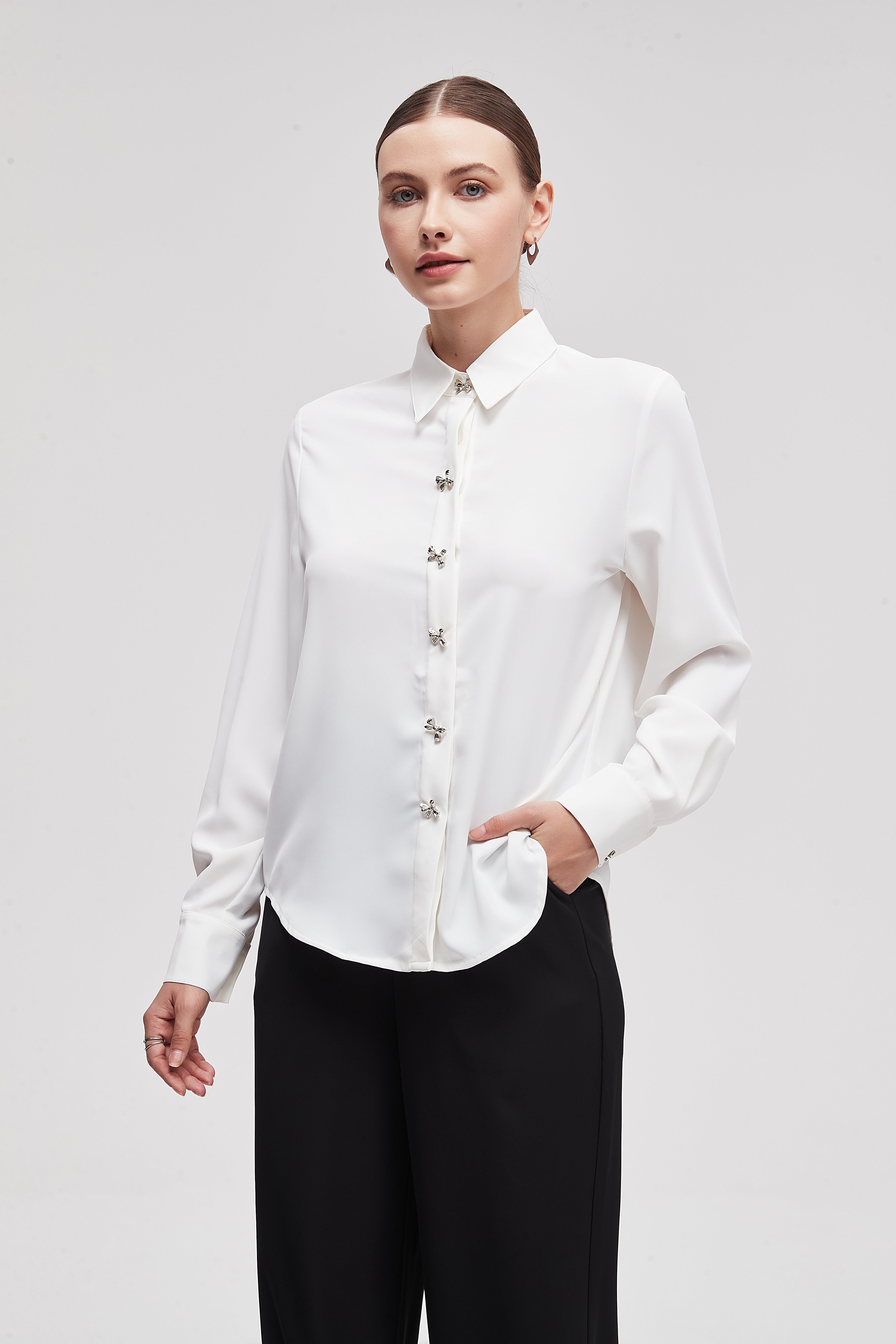 Shirt Collar Long-Sleeve Top