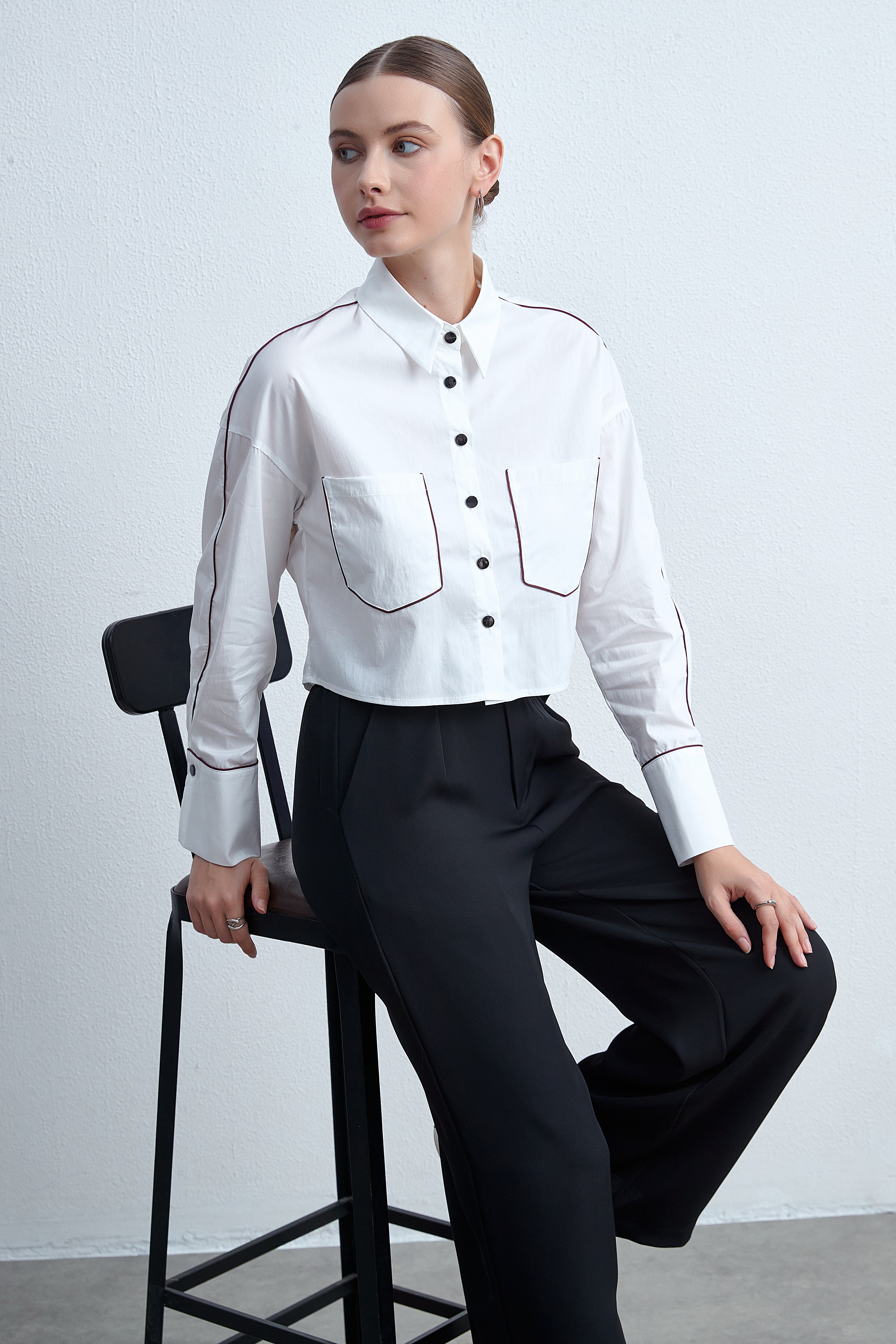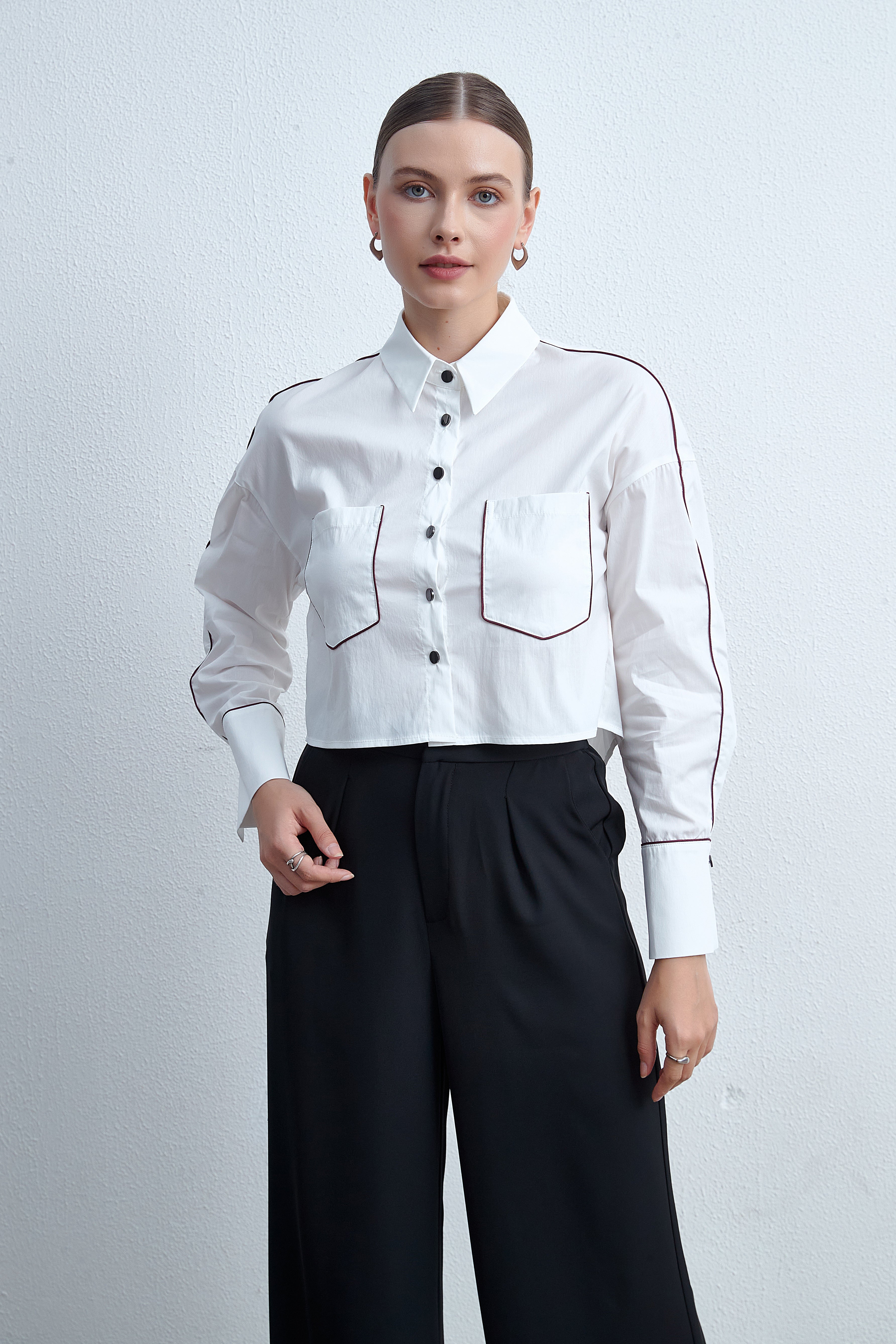 The LIVIA blouse features front buttons and practical chest pockets, making it an ideal choice for a stylish and comfortable look at all times. This blouse comes with long sleeves to keep you warm on cold days, while its simple design adds a touch of modern elegance. It can be easily paired with trousers or skirts, making it a versatile piece suitable for all occasions. Join the world of elegance with the stunning LIVIA blouse, and order it now from Fashion to always be at the top of your game. Product number: lv0080s252wn