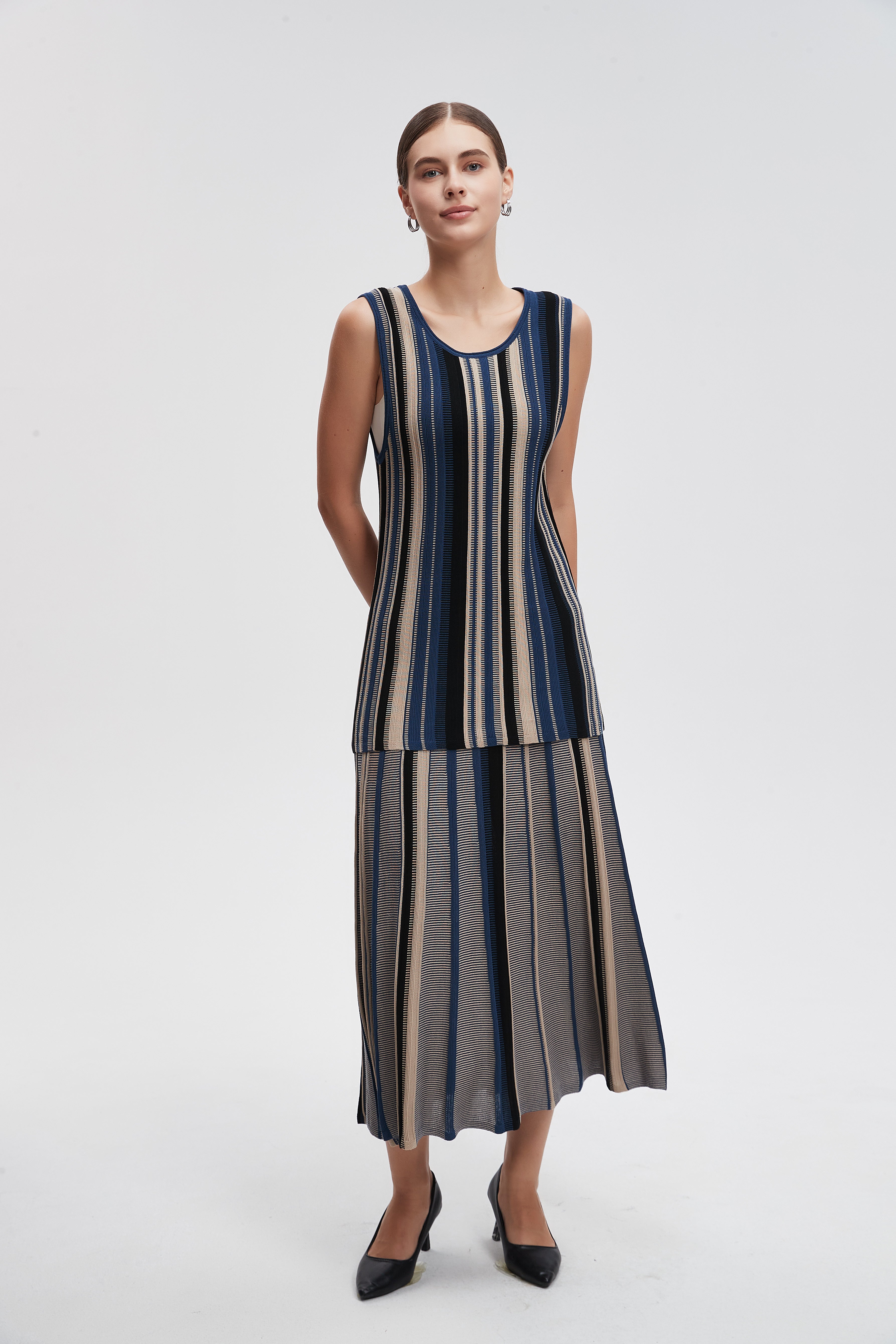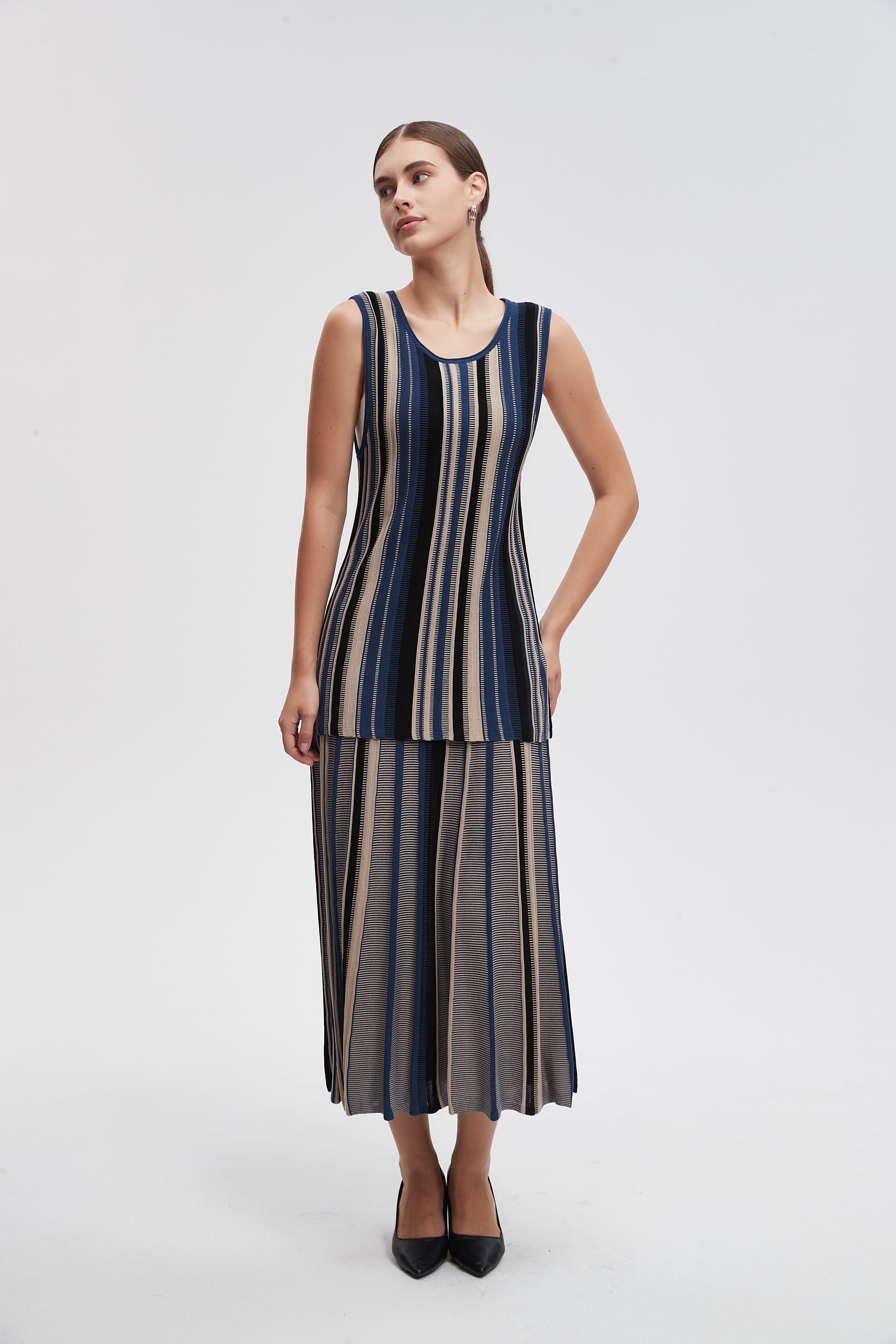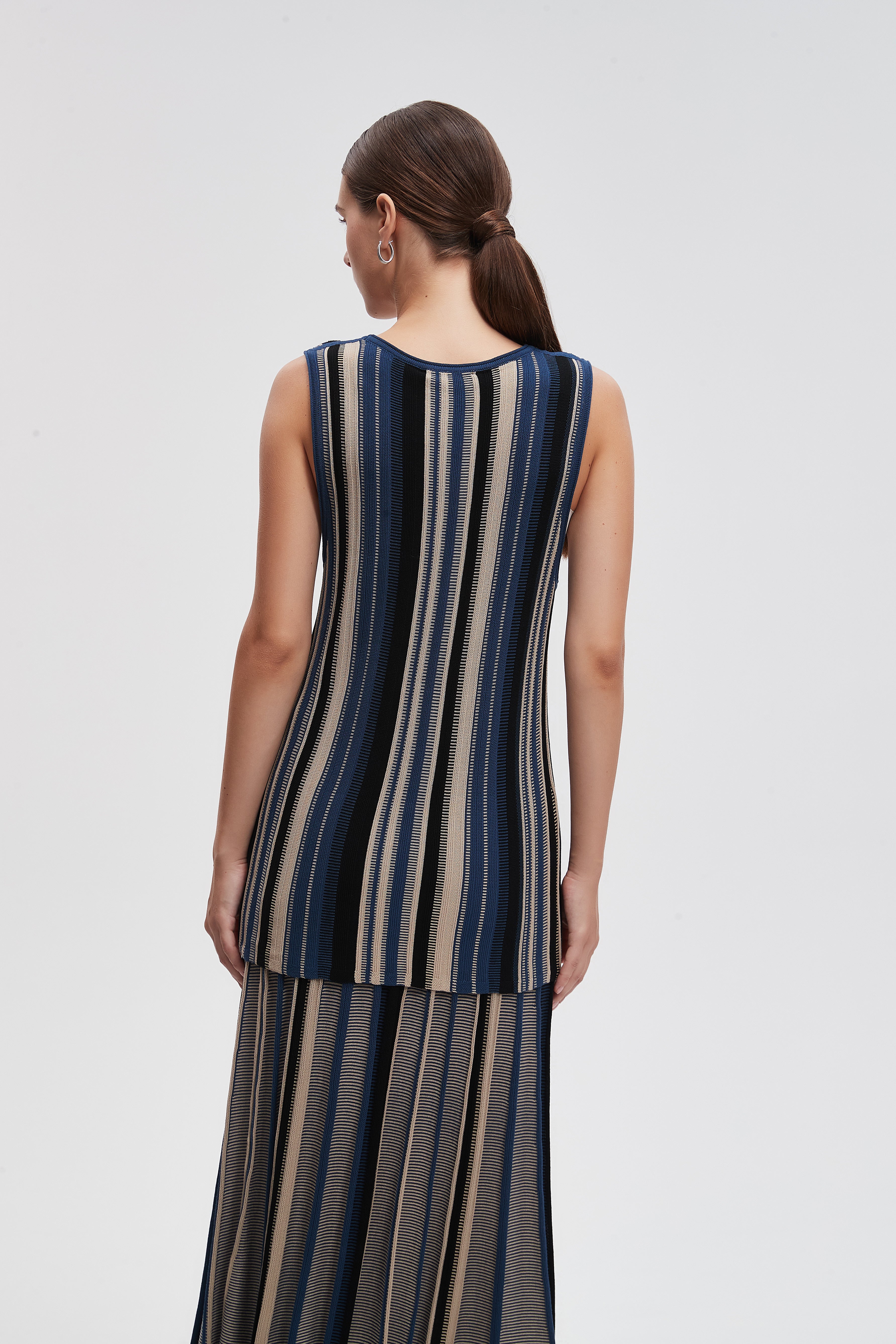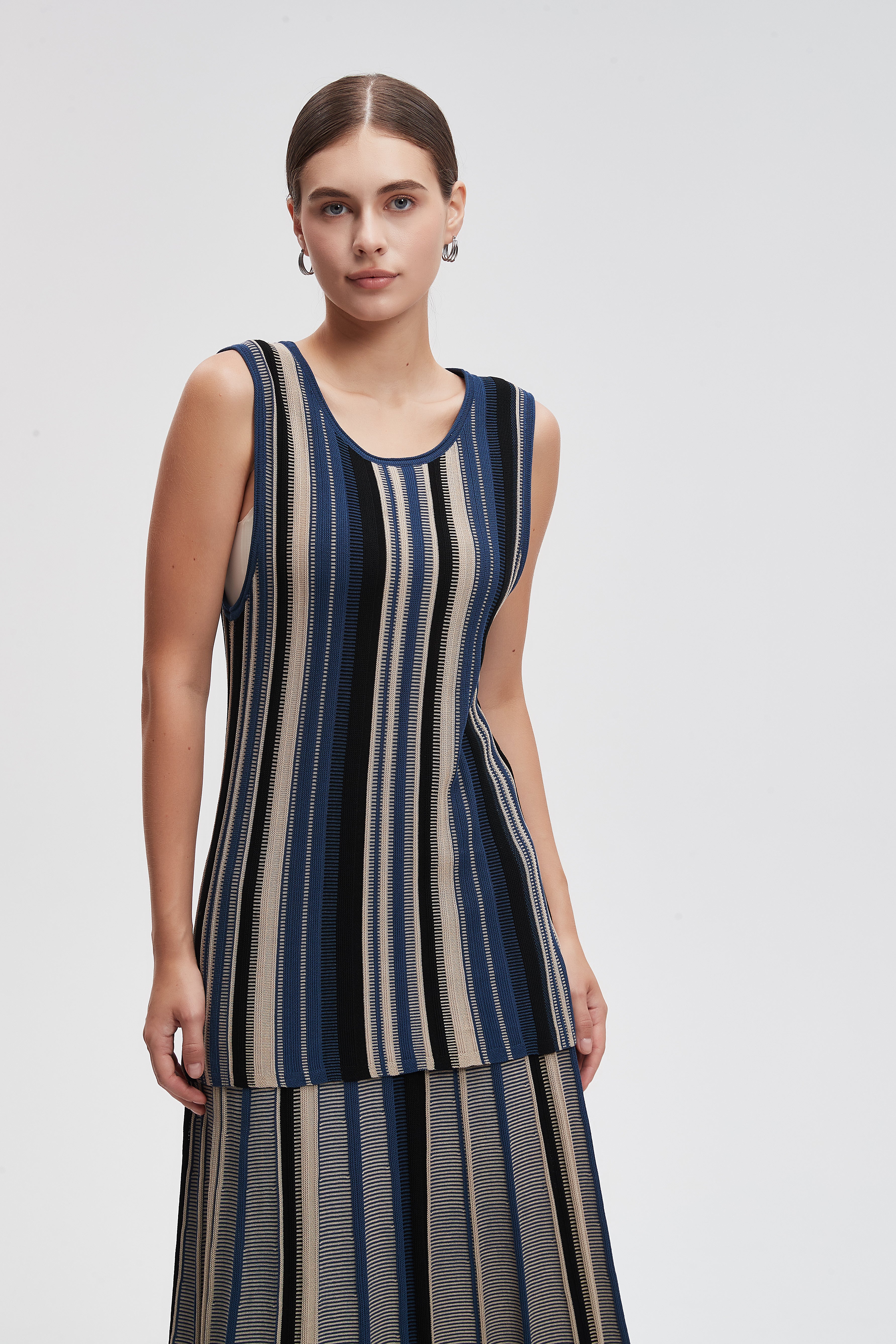 This sleeveless, vertically striped blouse features a modern design that combines elegance and comfort. Available in attractive colors to suit all tastes, this blouse is an ideal choice for a variety of occasions. The lightweight fabric keeps you cool on hot days, while the vertical stripes add a touch of elegance to your look. Pair it with jeans or a skirt to complete your everyday look. Don't miss out on this stunning blouse. Order it online now and enjoy a distinctive look! Product number: lv0179w254uq
