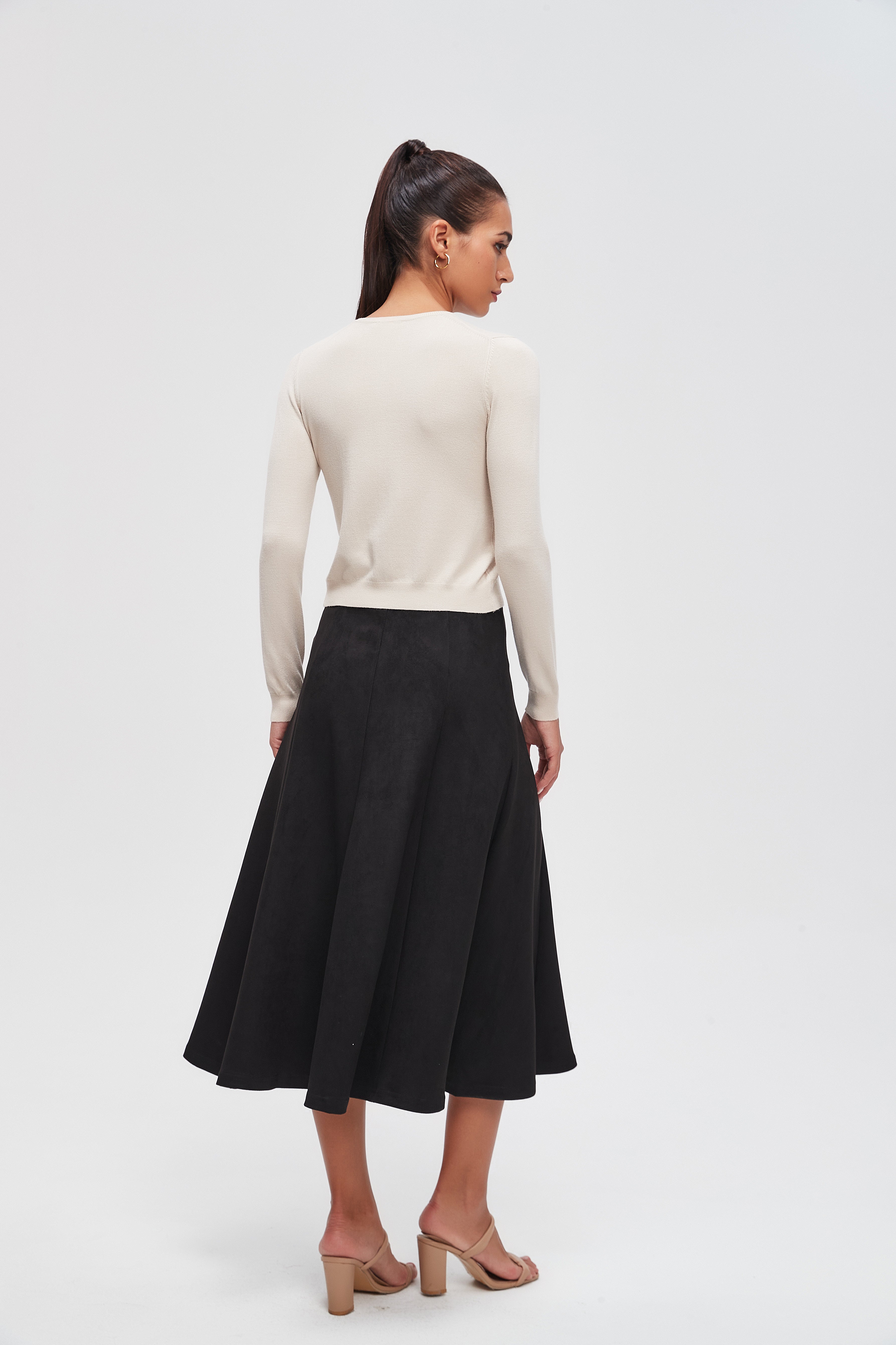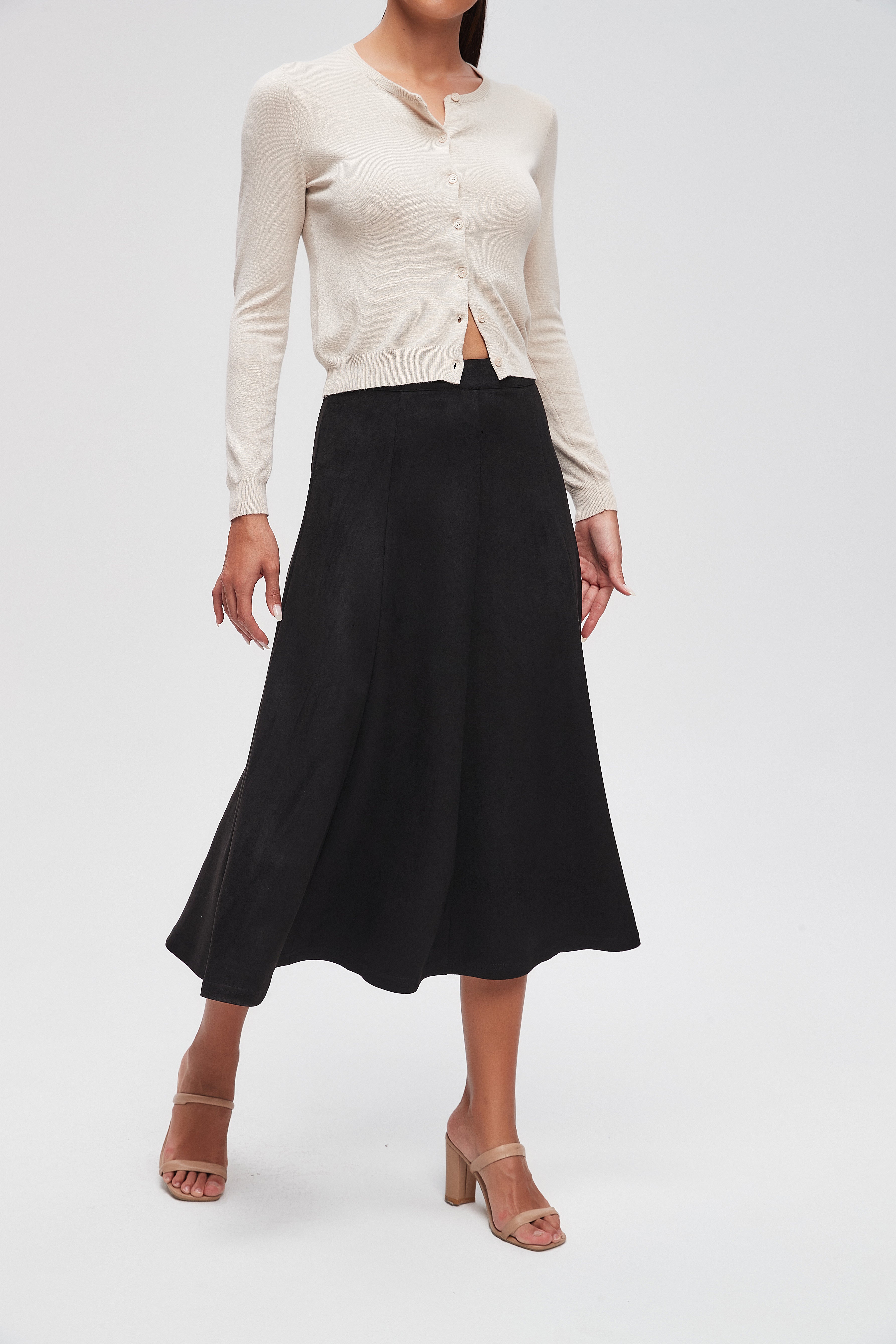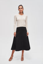 Transform your everyday style with the Solid Midi Skirt with a Flared Cut. This timeless piece offers a perfect blend of elegance and comfort, making it a must-have for any wardrobe. Crafted from high-quality fabric, it drapes beautifully and moves gracefully with you. The flared cut adds a touch of flair, making it versatile for both casual outings and more formal occasions. Available in classic colors, this skirt pairs effortlessly with your favorite tops and accessories. Product Number: lv0260w254jn